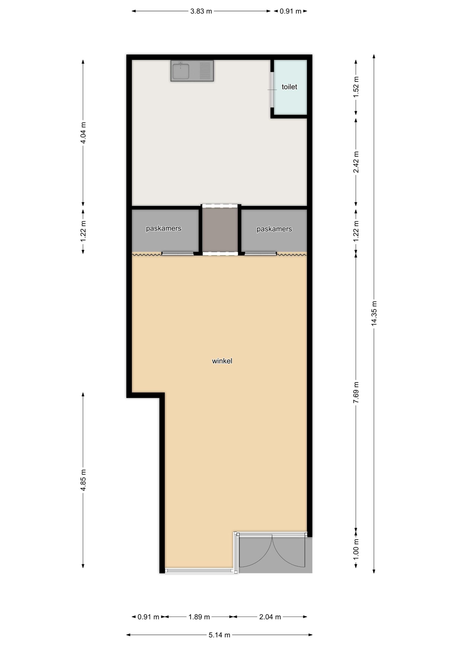 De winkelruimte heeft een frontbreedte van ca. 5 meter en een diepte van ca. 20 m en de winkeloppervlakte bedraagt
