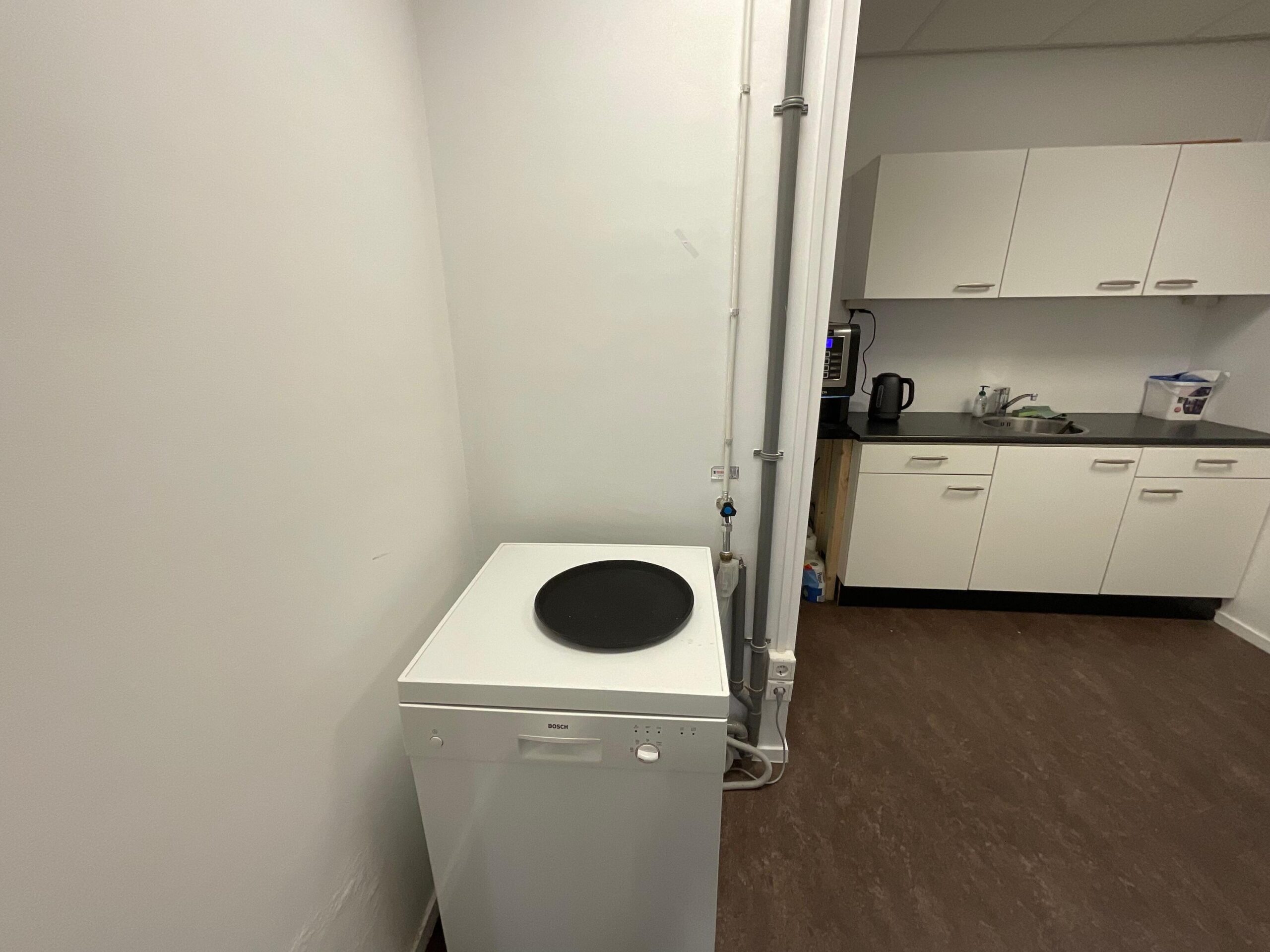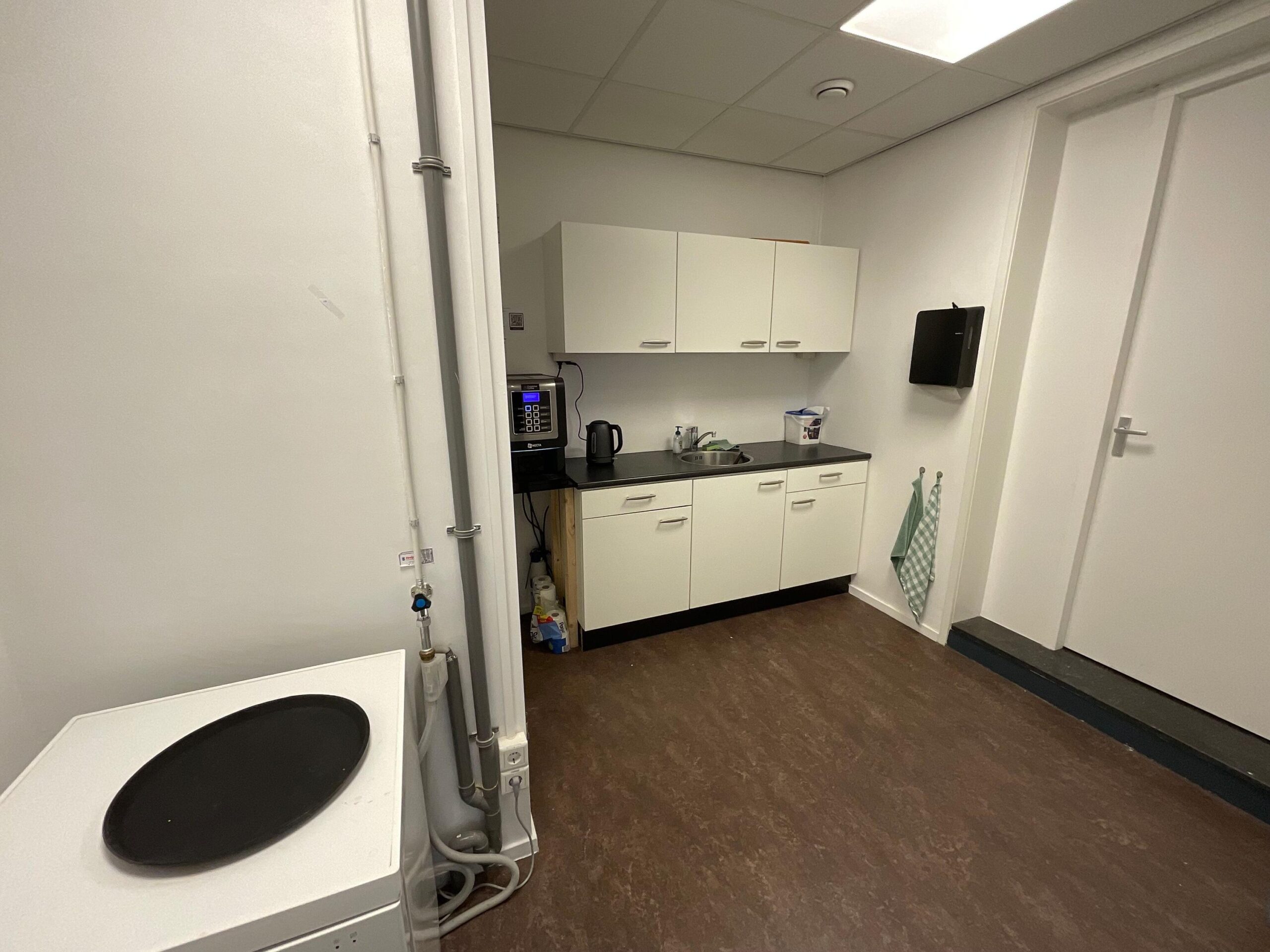 Begane grond van het pand is thans twee kantoorruimten gesitueerd. Vanuit hier is er toegang naar toiletruimte, kitchenette en magazijn. Het gehuurde is voorzien van een volledige inrichting dus laptop aankoppelen en werken.