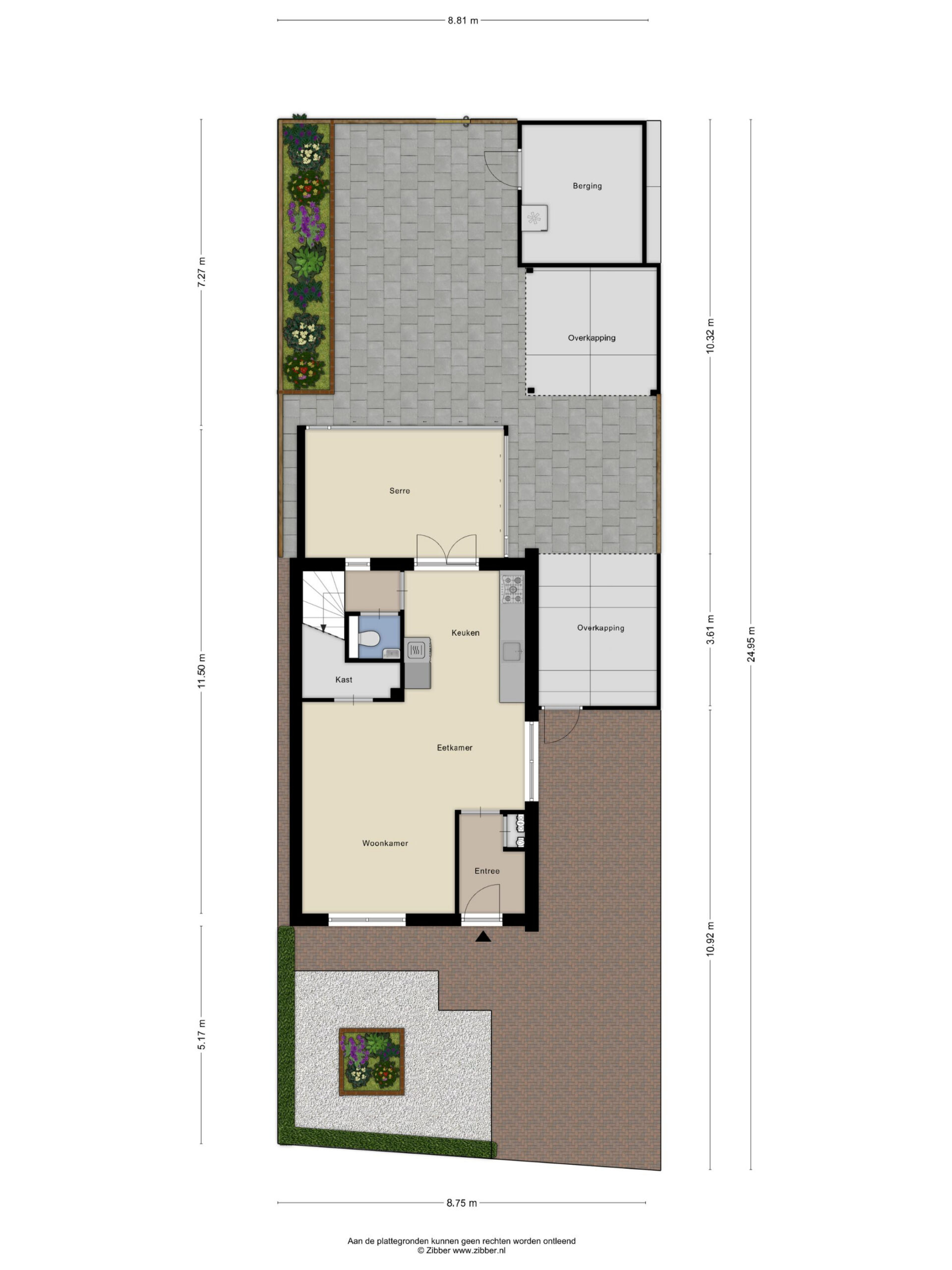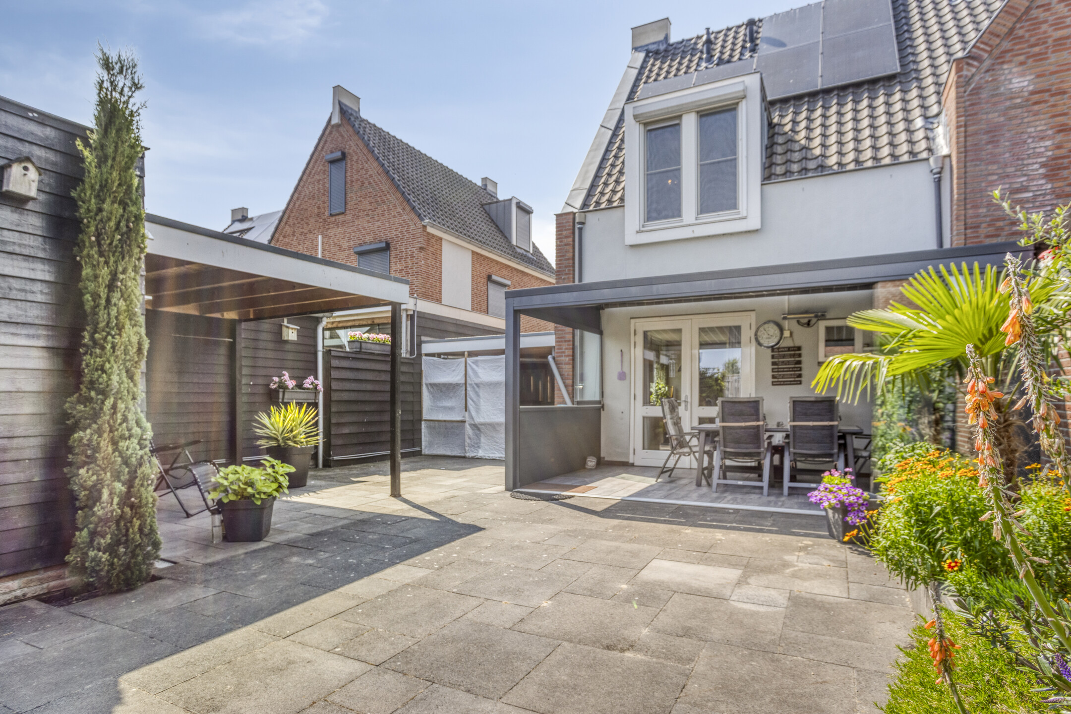De verzorgde voor- en achtertuin zijn onderhoudsvriendelijk aangelegd en maken het geheel zeer compleet. Zo beschikt de privacy biedende achtertuin over moderne terrastegels, diverse plantenborders en een houten berging met overkapping. De tuin met is middels afsluitbare poort voorzien van een achterom heeft een zonnige ligging op het zuidoosten.
