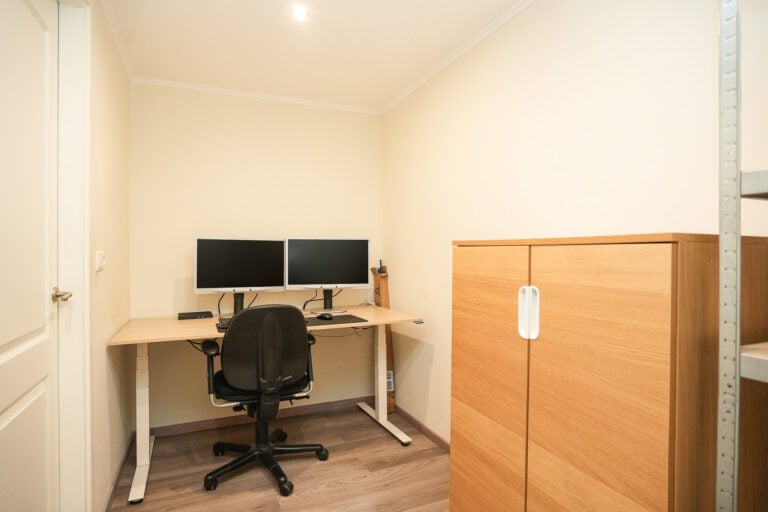 Via een hal bereik je de slaapkamer op de begane grond, de badkamer, een losse toiletruimte en een extra multifunctionele ruimte. Deze ruimte is ideaal als werkplek of hobbyruimte. De aanwezigheid van slaapkamer en badkamer op de begane grond maakt deze woning uitermate geschikt voor levensloopbestendig wonen.