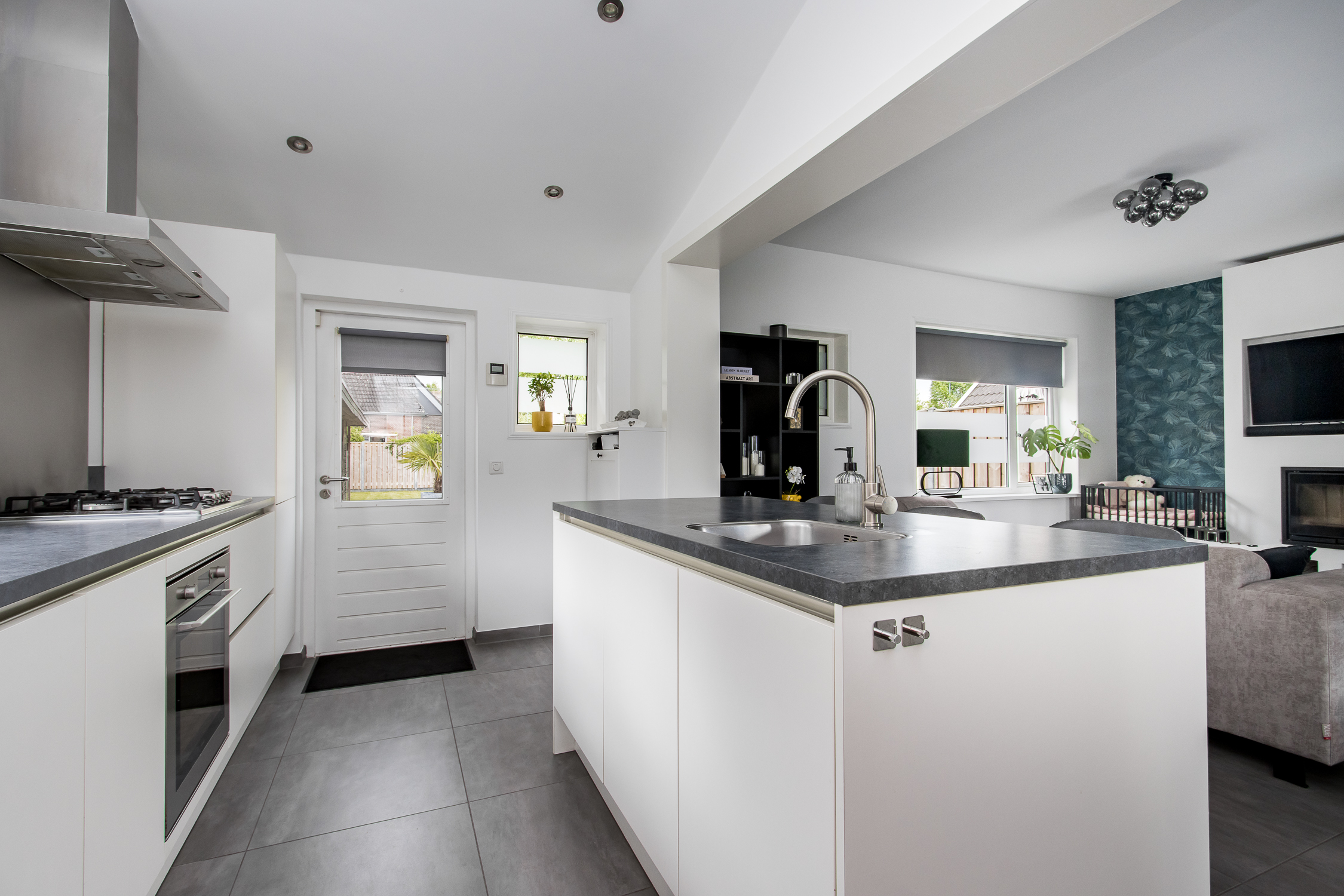Indeling woning: de entree bevindt zich aan de voorzijde en geeft toegang tot de hal met garderobe, trapopgang naar de verdieping en handige trapkast. Vanuit de hal stap je de sfeervolle woonkamer binnen met een open verbinding naar de moderne keuken voorzien van een 4-pitsgasfornuis met wokbrander, afzuigkap, magnetron, oven, koelkast met vriezer en vaatwasser. Via de keuken is de nette badkamer met inloopdouche, toilet en wastafelmeubel bereikbaar.