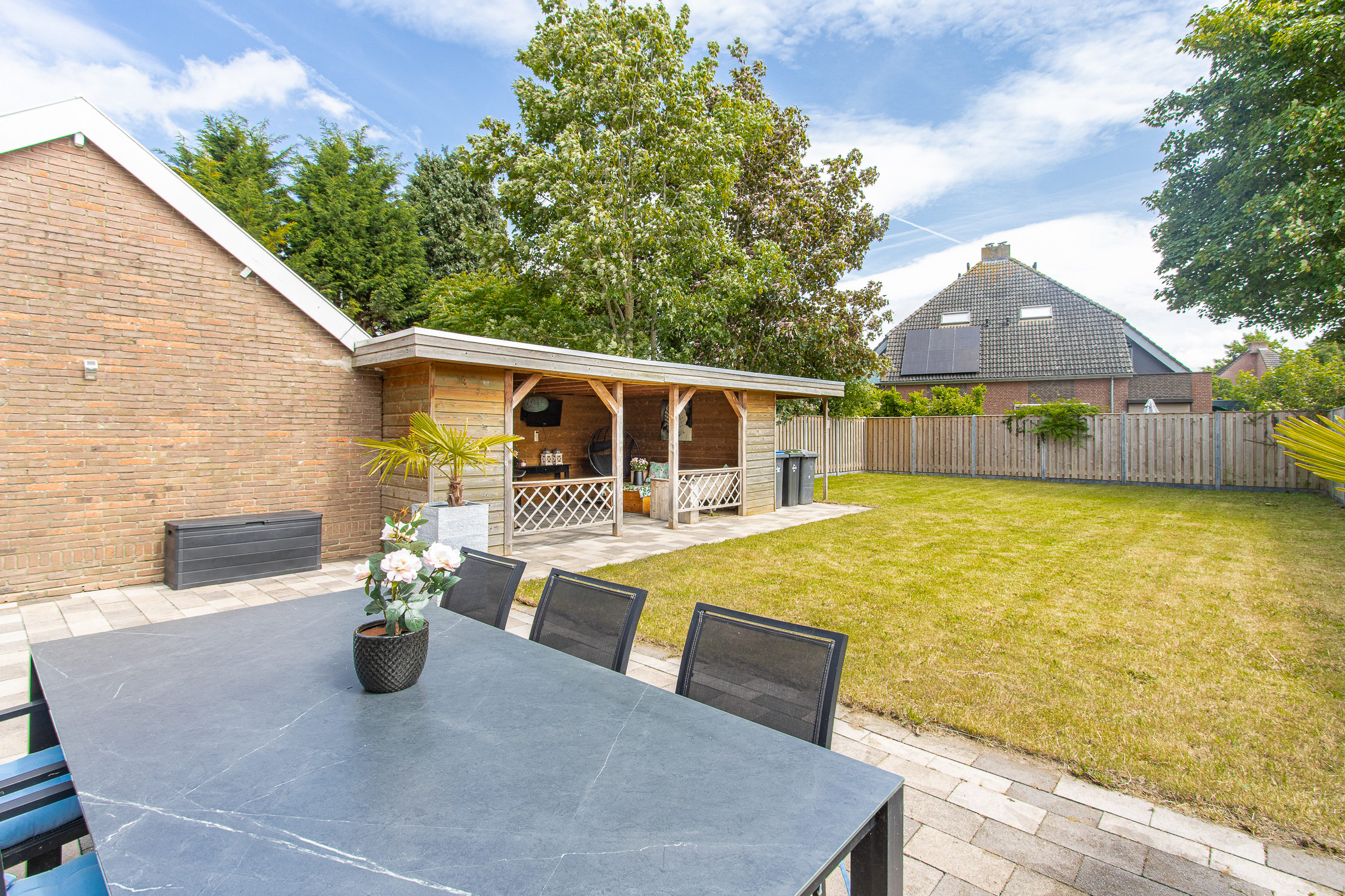 Buiten is het minstens zo genieten als binnen. De zonnige achtertuin op het zuidoosten biedt volop rust en privacy – een fijne plek om te ontspannen onder de fraaie houten overkapping. Dankzij de eigen oprit parkeer je altijd voor de deur, en de praktische stenen schuur en achterom maken het plaatje compleet. Alles is tot in de puntjes verzorgd, ook buiten!