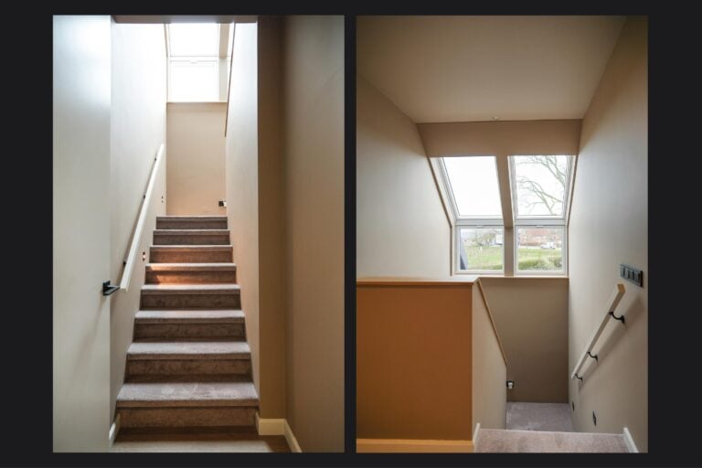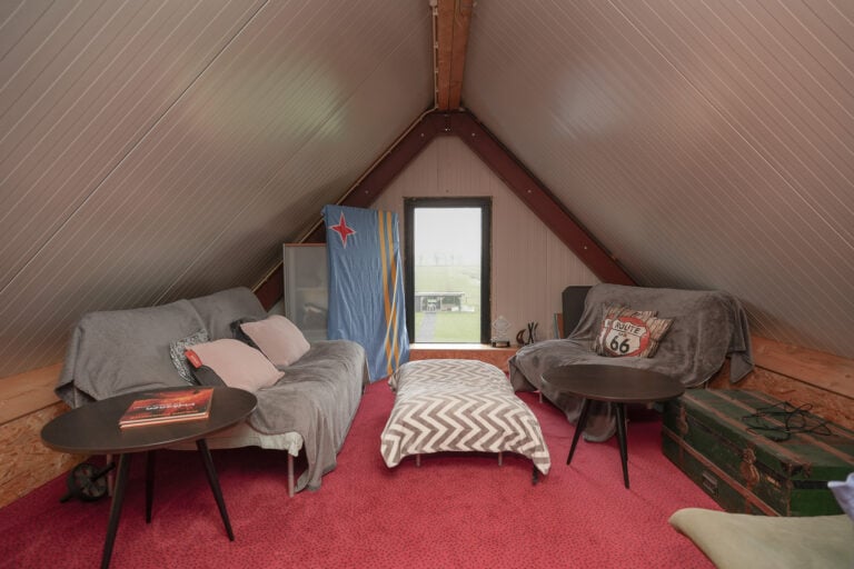 De open zolderverdieping voegt een extra dimensie toe aan het huis. Een sfeervolle ruimte die zich perfect leent als werkplek, atelier, lounge of praktische bergruimte — flexibel in te vullen naar jouw woonwensen.