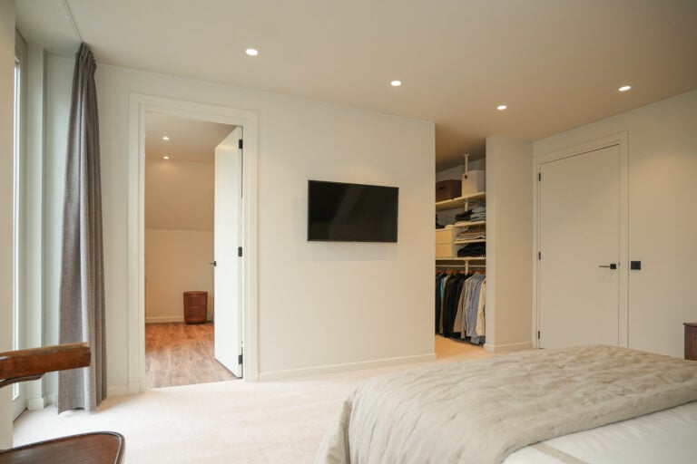 Op de verdieping bevindt zich de royale master bedroom met inloopkast en een luxe en-suite badkamer — een privéplek waar comfort en ontspanning centraal staan. Daarnaast zijn er twee volwaardige slaapkamers en een tweede badkamer, ideaal voor gezin of gasten.