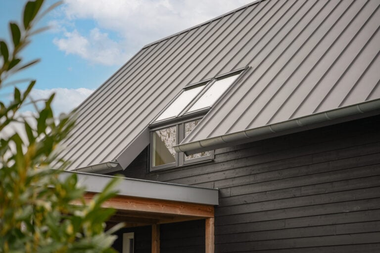 De architectuur is geïnspireerd op de klassieke schuurwoning, maar uitgevoerd in een moderne en stijlvolle vorm. Het hoge zadeldak, de donkere gevelbekleding en de royale glaspartijen geven de woning een krachtig en tijdloos karakter dat prachtig opgaat in het landschap.