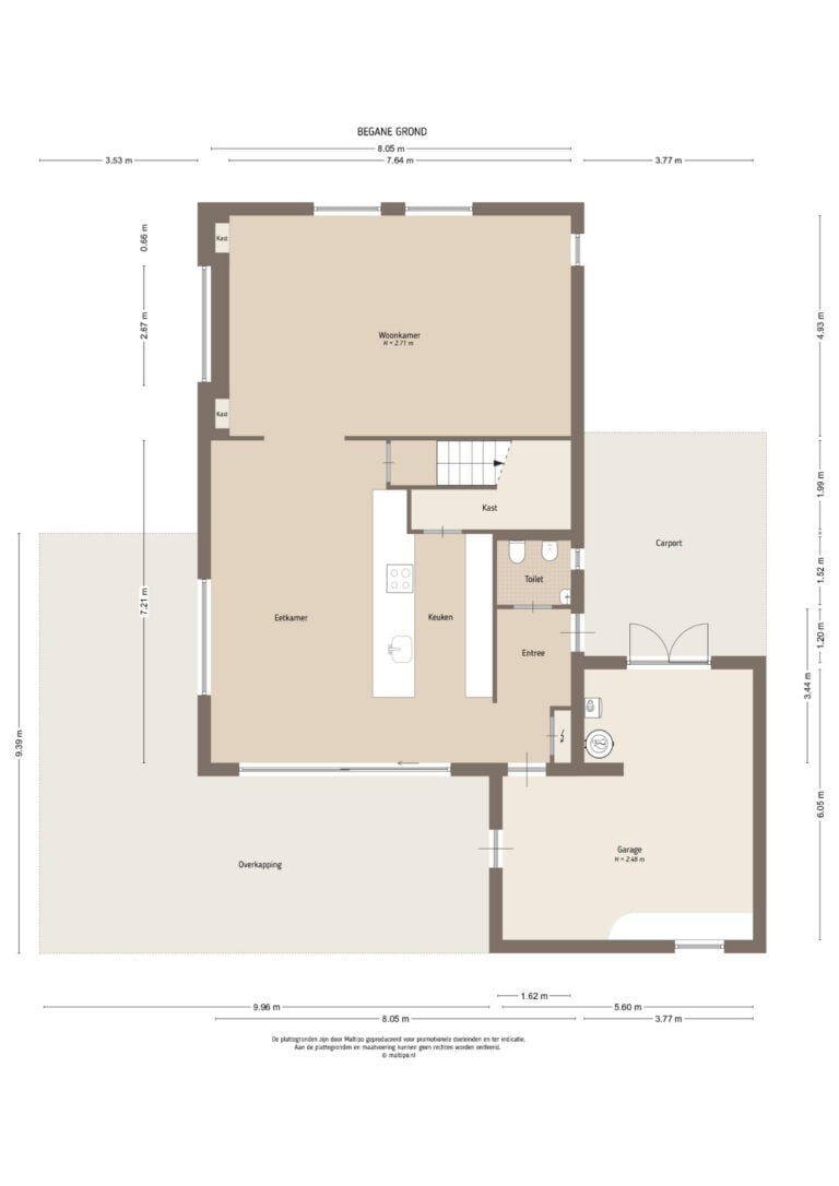 • inpandige garage en carport;