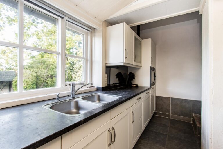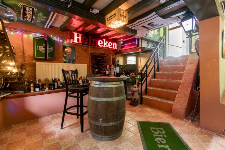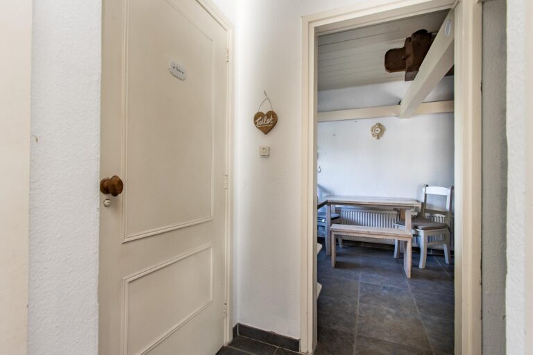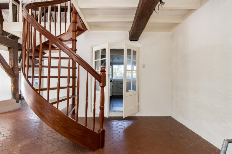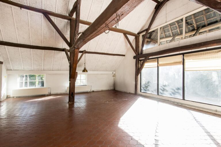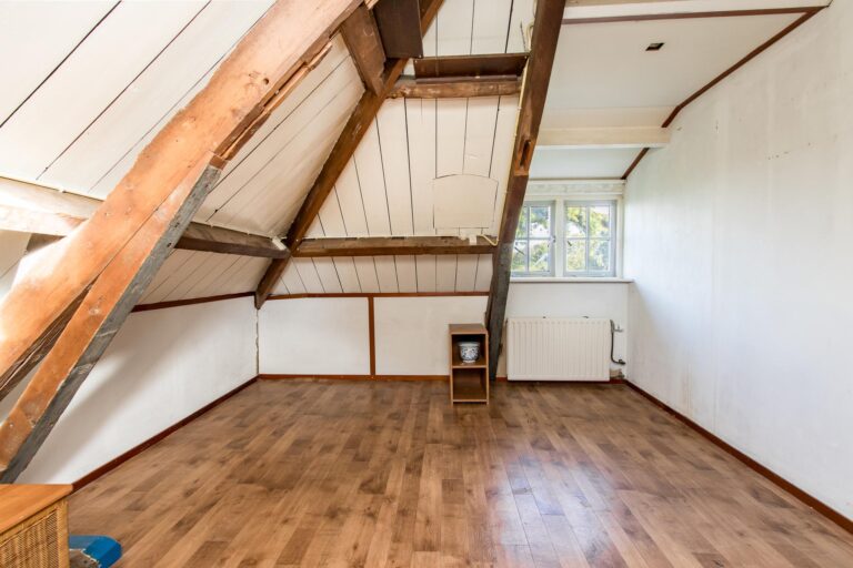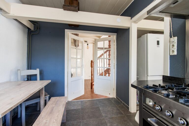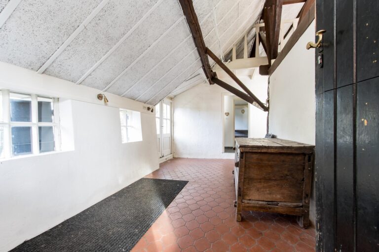 De ruime woonkeuken is de plek waar koken een plezier wordt. Daarnaast vind je op de begane grond het sfeervolle voorhuis, verdeeld in een moderne badkamer met ligbad en inloopdouche, een werkkamer en een slaapkamer, allemaal met de prachtige oude balken in het zicht. Vanuit de werkkamer stap je zo de tuin in. En dan is er nog de geweldige kelder: een echte ‘man-cave’ – of eigenlijk gewoon een ontspanningsruimte voor iedereen – compleet met bar en volop mogelijkheden om er je eigen draai aan te geven.