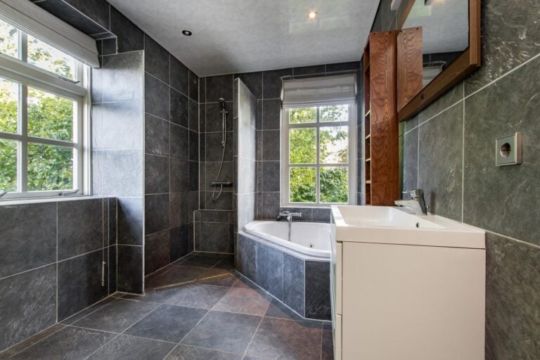 Op de eerste verdieping bevinden zich nog twee slaapkamers en een tweede badkamer. En voor wie droomt van nóg meer ruimte: de verdieping biedt mogelijkheden voor een flinke uitbreiding van het vloeroppervlak.