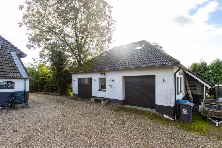 Zodra je het erf oprijdt, valt de charme van dit karakteristieke pand direct op. De woning is omgeven door een prachtige, lommerrijke tuin met terrassen, een gazon, bomen en kleurrijke borders: een waar paradijs op maar liefst 2255 m² grond. Naast het woonhuis staan de dubbele garage (68 m²) met grote zolder, een charmant tuinhuisje en een authentiek kippenhok, wat de landelijke sfeer compleet maakt.