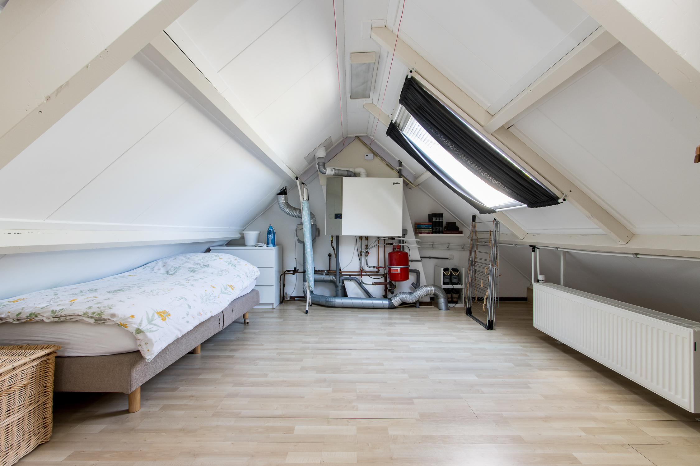 Zolder: via een vaste trap is de open zolder te bereiken. Deze ruimte is voorzien van gevel-en dakraam en biedt mogelijkheden voor het creëren van een vierde slaapkamer.