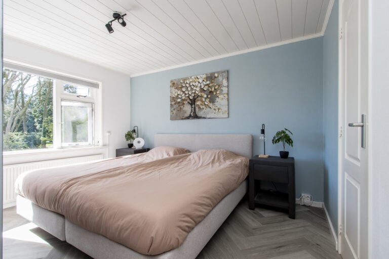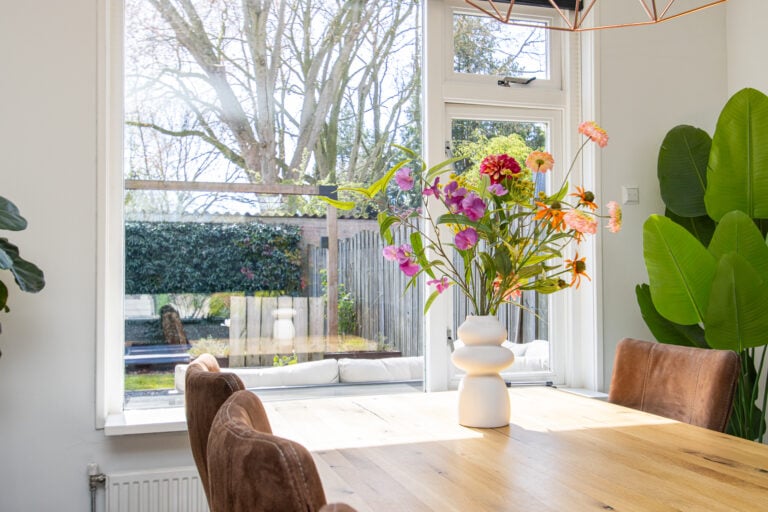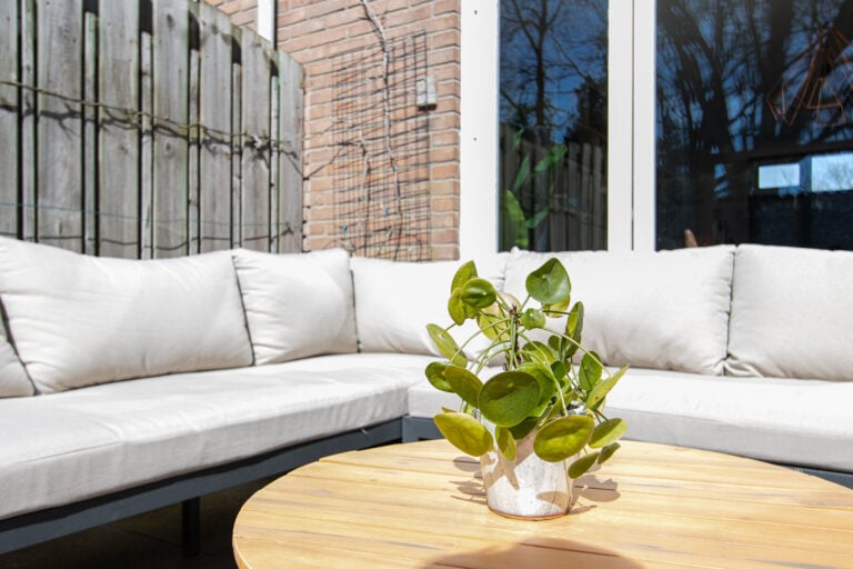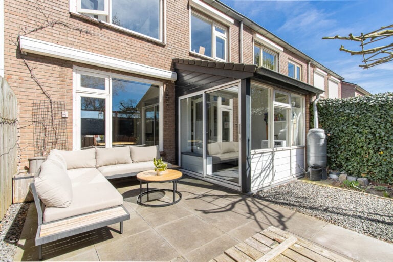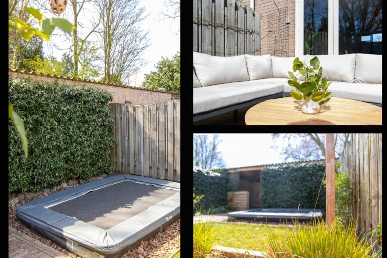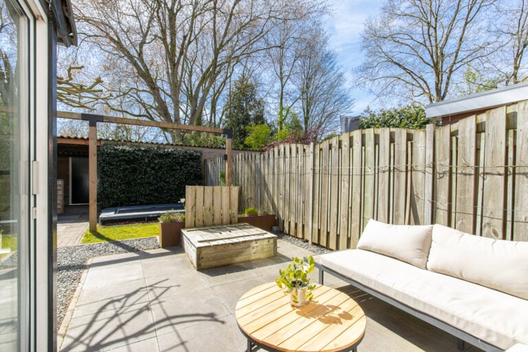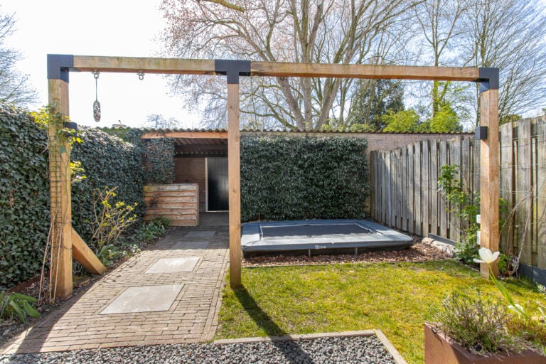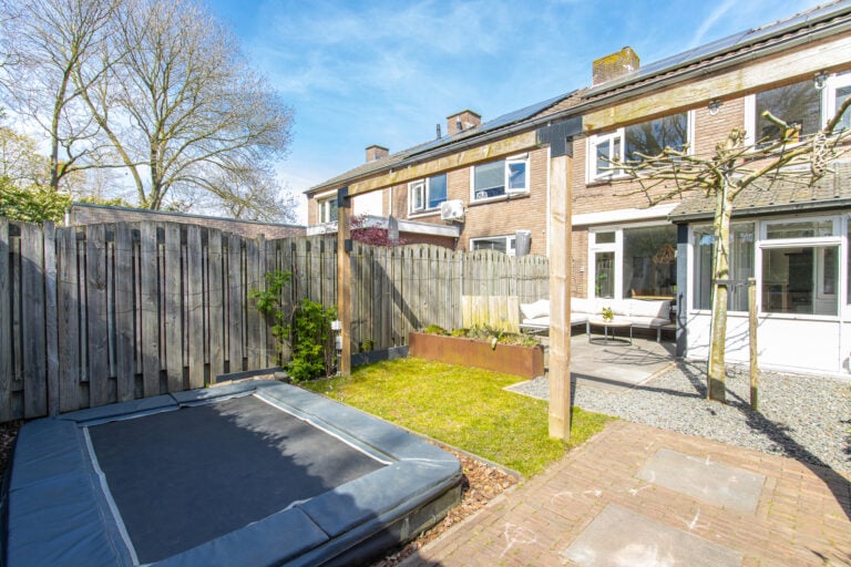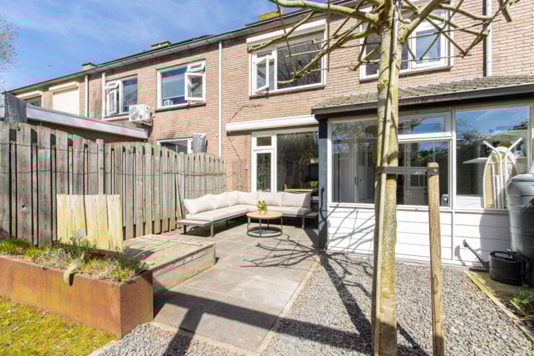De tuin is stijlvol aangelegd met moderne terrastegels, siergrind, sierbestrating en diverse beplantingen, omheind door een houten schutting. Extra opslagruimte? De stenen berging met overkapping maakt het plaatje compleet. Een woning om zo in te trekken!