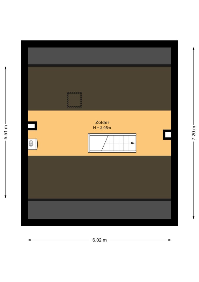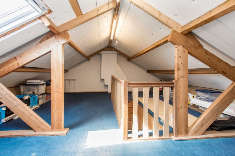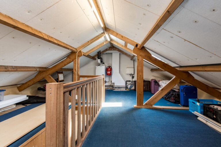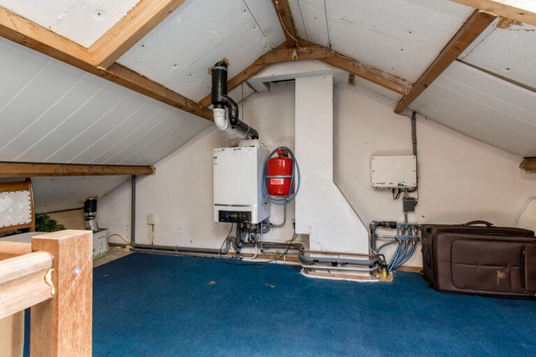 Zolder: via een vaste trap is de open zolder bereikbaar. Hier bevindt zich de CV-installatie.