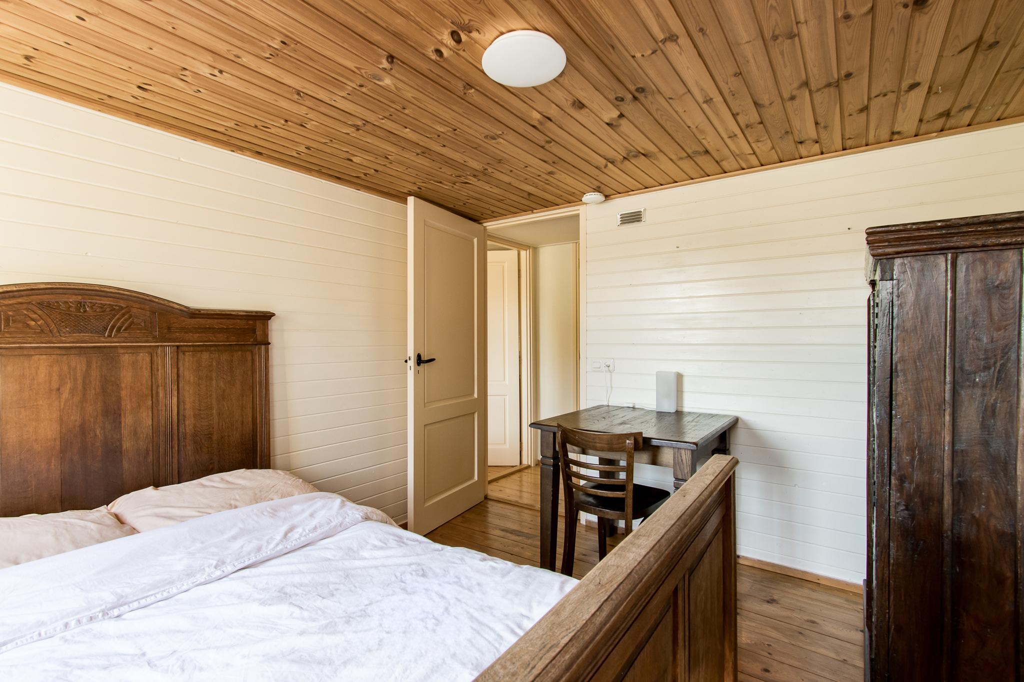 Indeling bijgebouw 1: het knusse bijgebouw bevindt zich aan de rechterzijde van de woning en is voorzien van open ruimte met klein keukenblok en zitkamer met pelletkachel. Aan de achterzijde is er een badkamer met douche, toilet en wastafel. Op de verdieping zijn er twee slaapruimtes gecreëerd. Buiten maakt de sfeervolle overkapping het plaatje compleet.