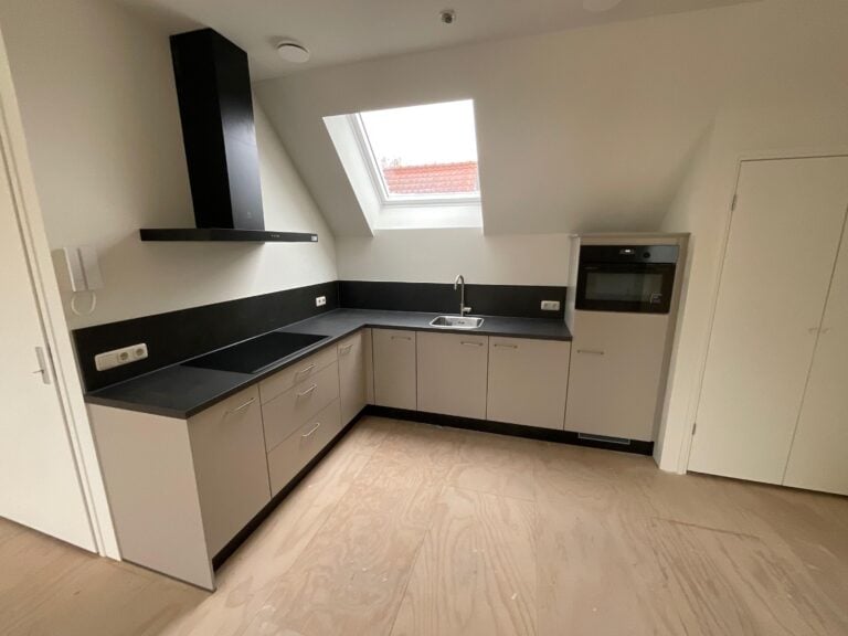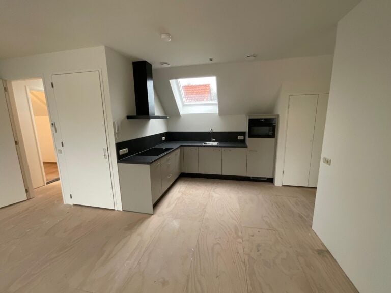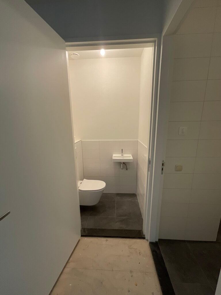 Ook dit appartement wordt opgeleverd zonder vloerafwerking in woonkamer/keuken, hal en slaapkamer. De huurder dient zelf vloeren te leggen in deze ruimtes.