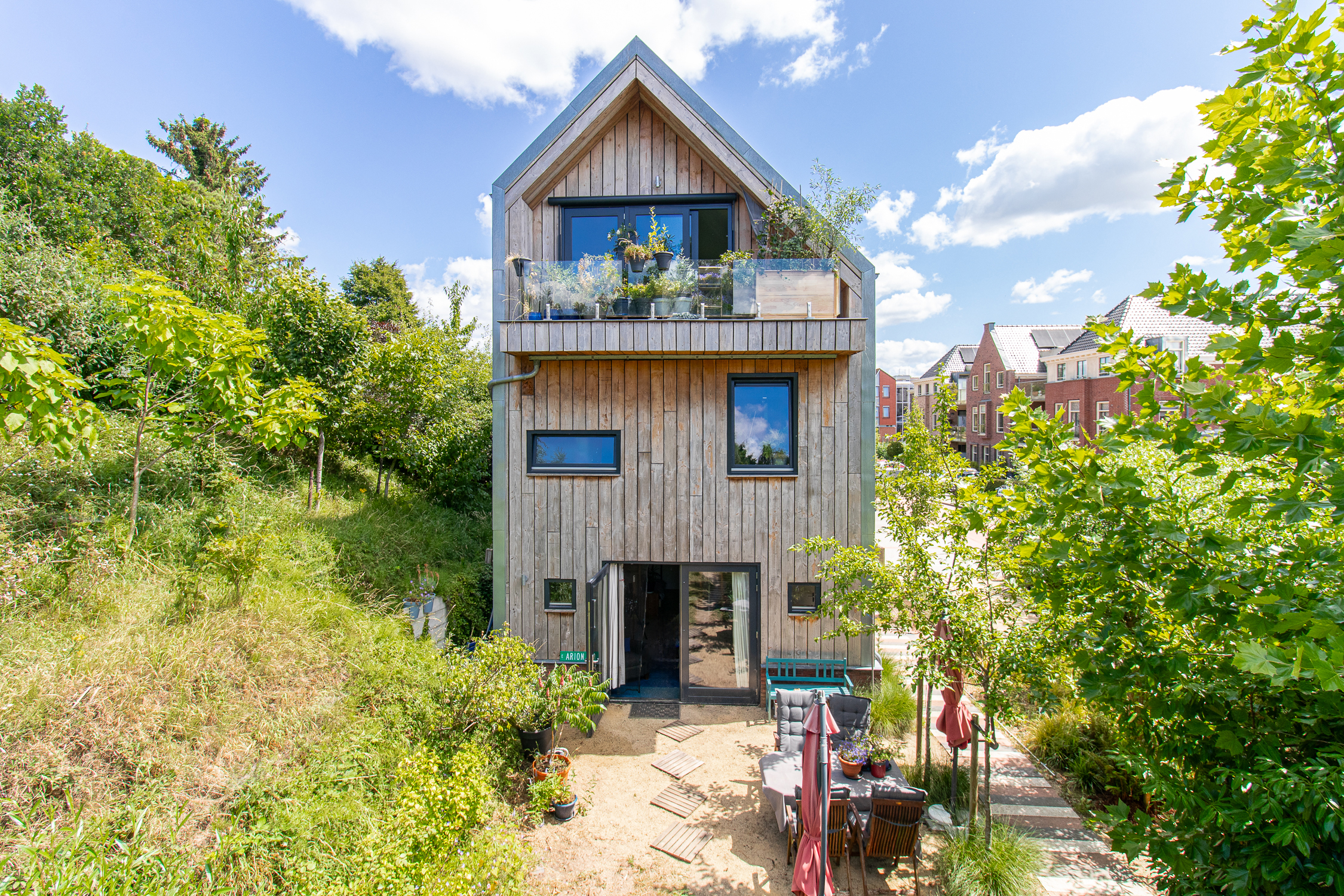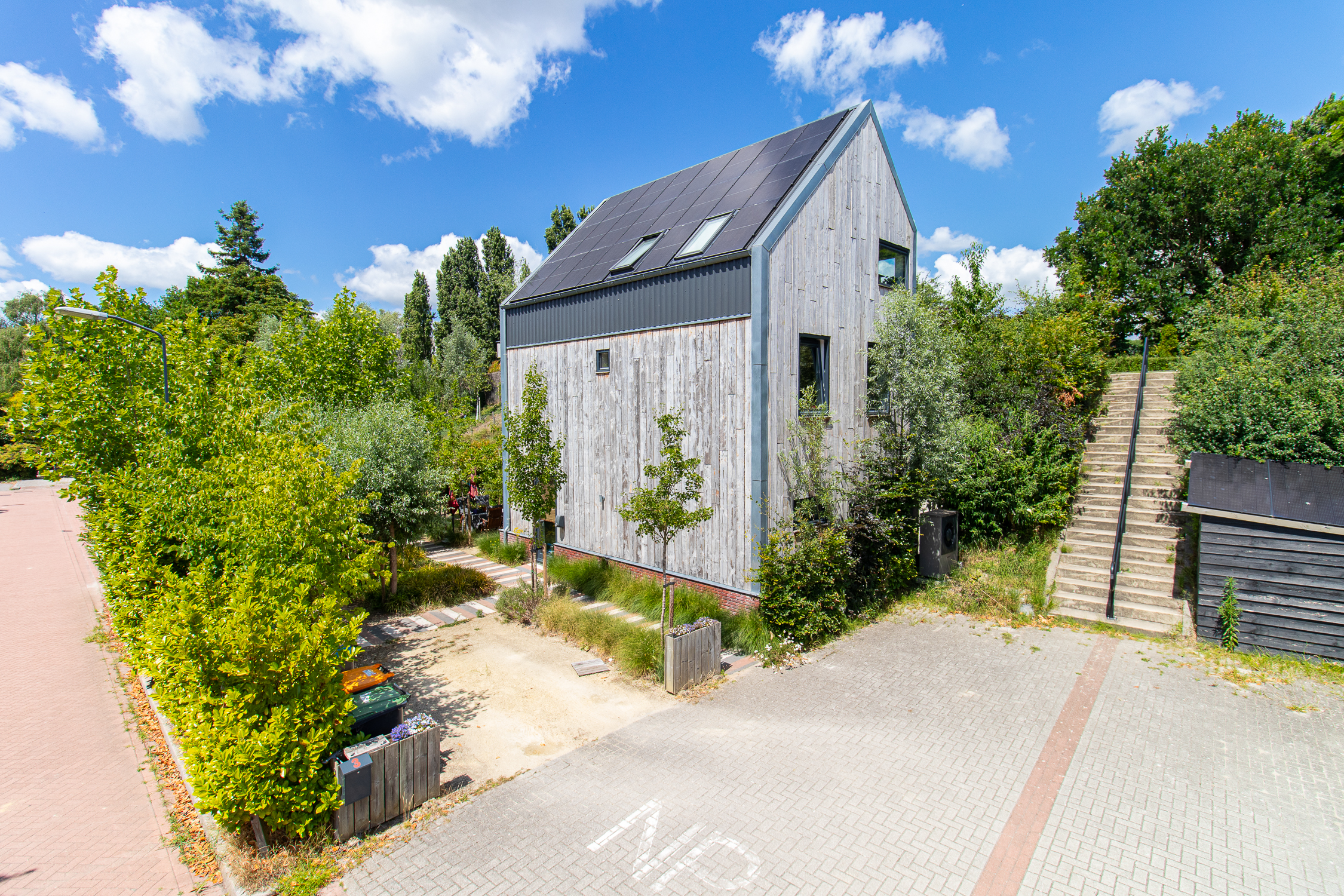 gebouwde woning is slim gebruik gemaakt van de ruimte en innovatieve technologie. De woning is in 2018 gebouwd en bestaat uit 3 woonlagen. De woning is binnendijks gelegen en heeft een opvallend uiterlijk: het geheel is bekleed met