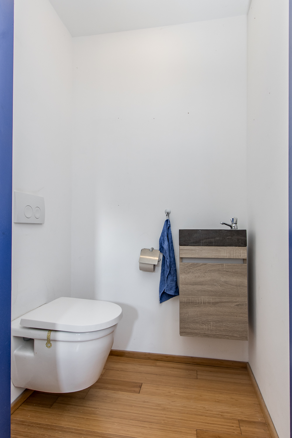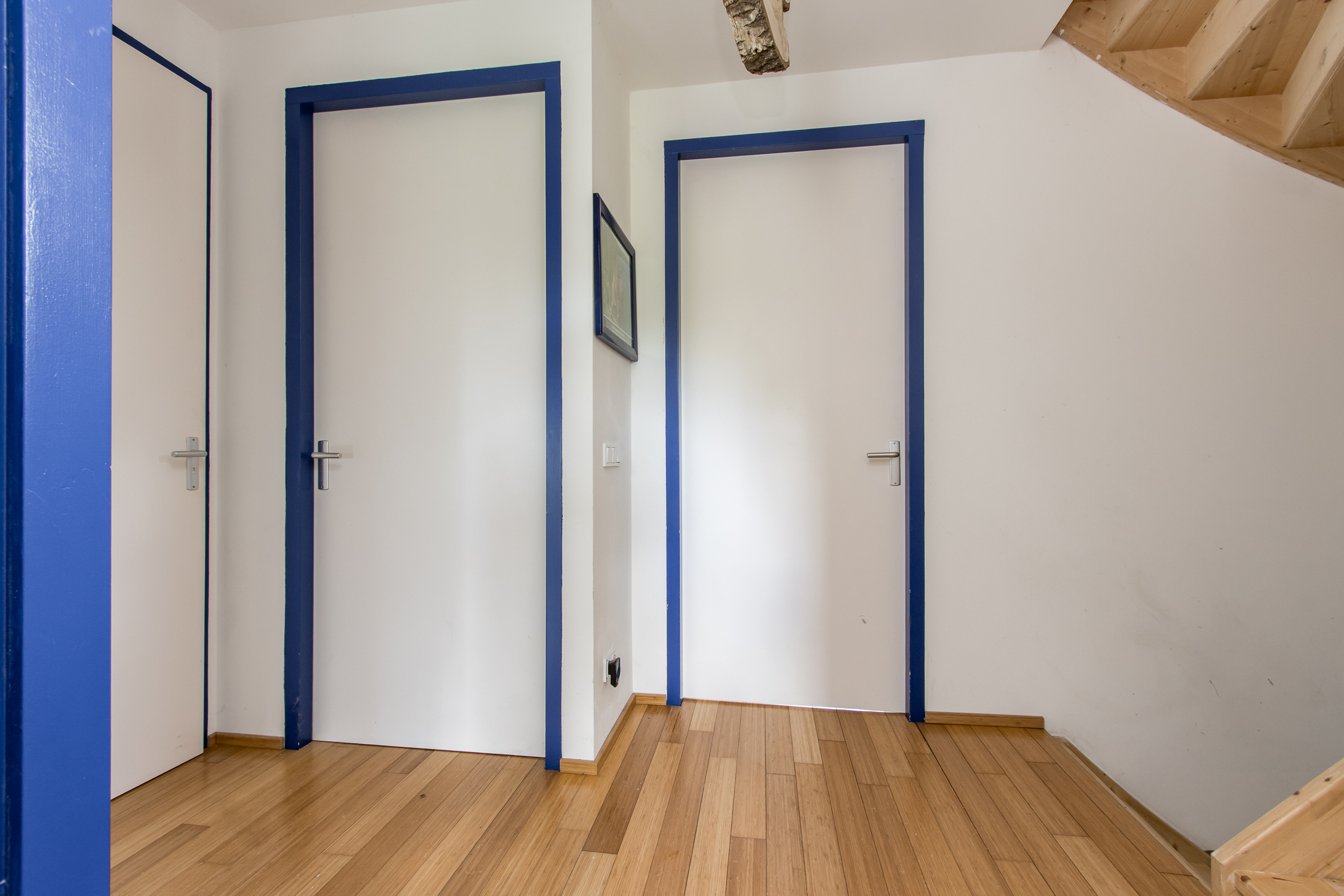De openslaande deuren geven toegang tot de entree van de woning. Hier bevindt zich de bijkeuken met praktisch keukenblok en multifunctionele ruimte voor bijvoorbeeld een kantoor- of praktijkruimte. Wonen en werken aan huis behoort zeker tot de mogelijkheden! Op de begane grond bevindt zich tevens de wasruimte, toiletruimte en installatieruimte.