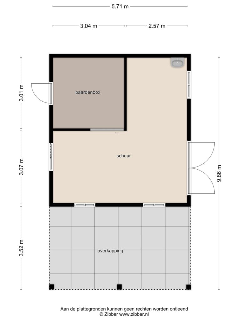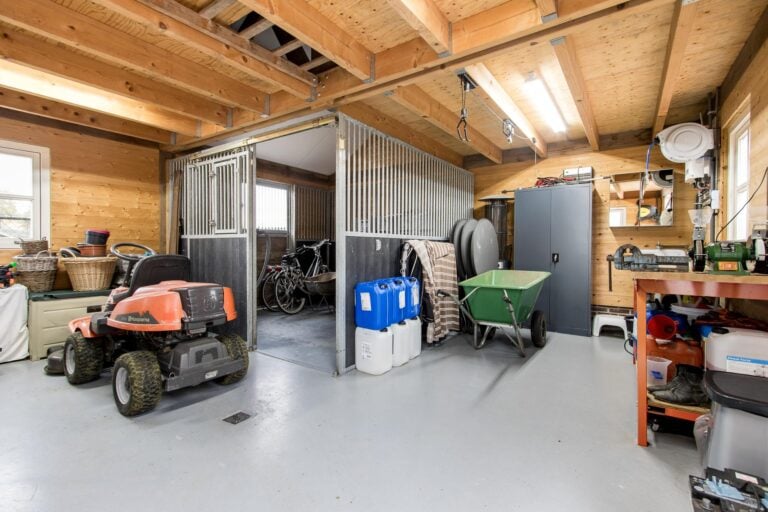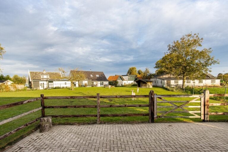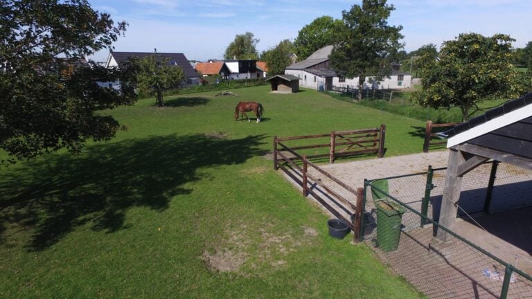 • kapschuur met paardenbox, paddock en wei;
