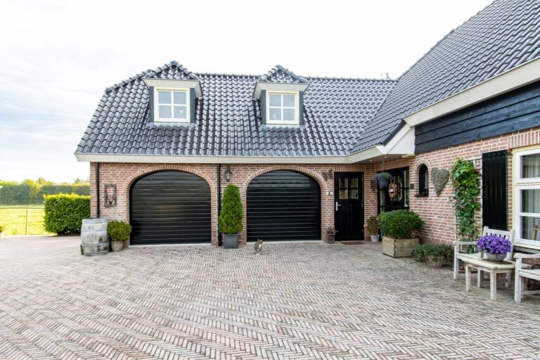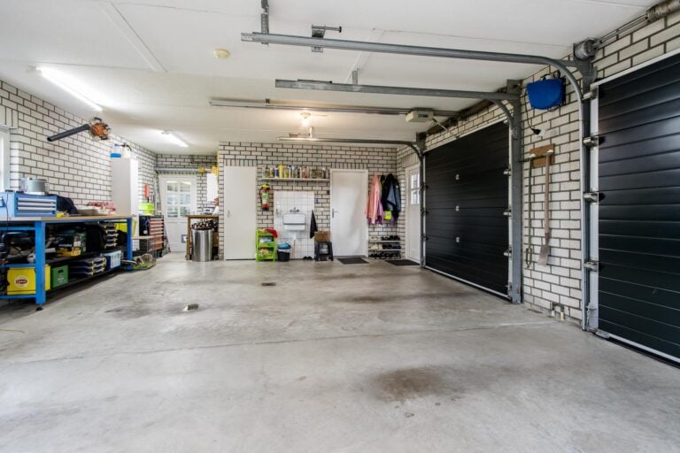 • aangebouwde dubbele garage met elektrische garagedeuren, elektra, water en vloerverwarming;