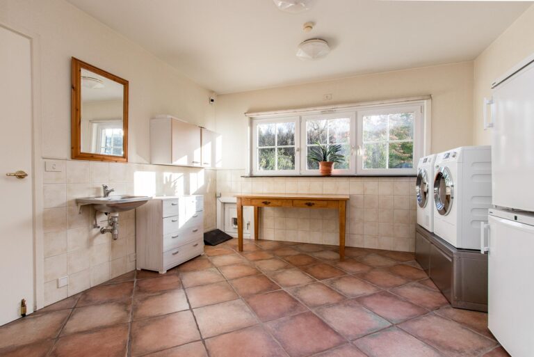 Stap vanuit de keuken in een uitzonderlijk ruime inloop provisiekast met directe toegang tot de garage. Aangrenzend is er een ruime bijkeuken met aansluitingen voor het witgoed. Vanuit de bijkeuken zijn de kelder en garage te bereiken. Voor ultiem gemak is er zelfs een personenlift die u naar de kelder en overige verdiepingen brengt. Deze kelder biedt niet alleen extra ruimte, maar kan ook dienen als een prachtige wijnopslag.