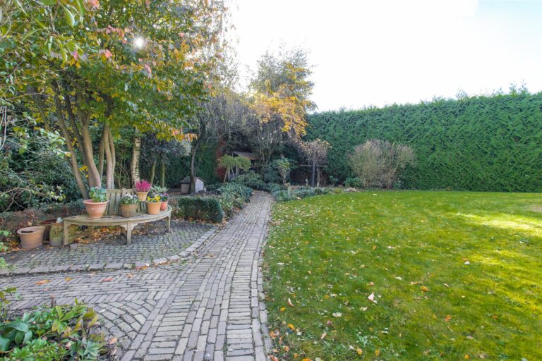 De achtertuin is aangelegd onder architectuur met oog voor detail en is een waar pronkstuk. De zonnige ligging op het zuiden zorgt voor een aangename sfeer. Langs de oprijlaan staan rijen leibomen, terwijl zorgvuldig geselecteerde heesters en bloemen de borders en het ronde perk in de keerlus sieren. Bewandel de kronkelende wandelpaden, ontspan onder de romantische pergola of geniet van de natuurlijke schoonheid onder de druivenranken. Zodra de avond valt, zorgt sfeervolle verlichting voor een betoverende ambiance. Voor de beregening van de gehele tuin is er een tuinsproei-installatie met grondwaterpomp.