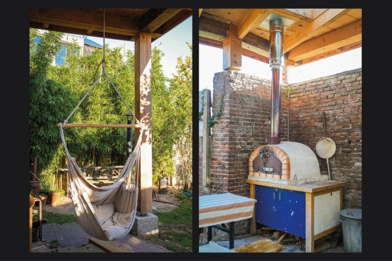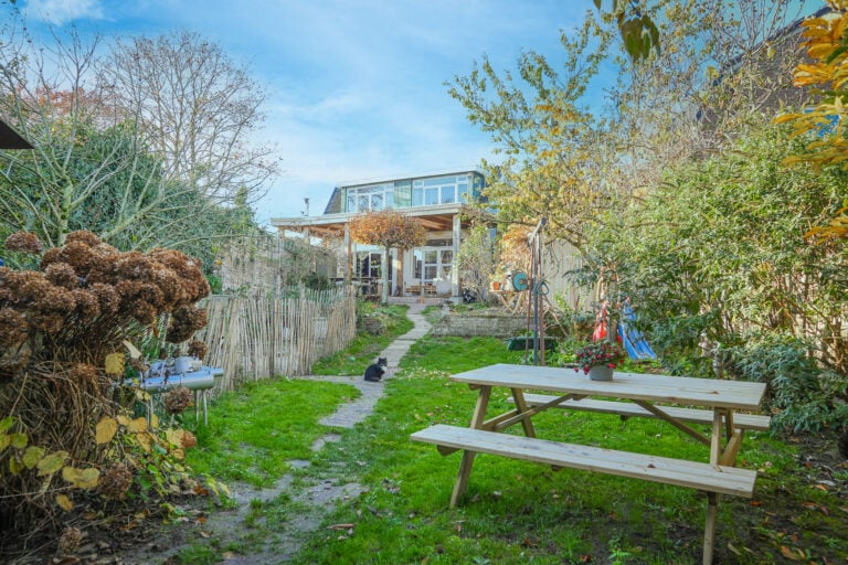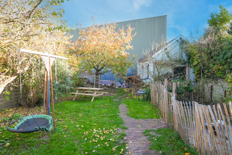 • sfeervolle overkapping en diepe achtertuin met twee vrijstaande bergingen;