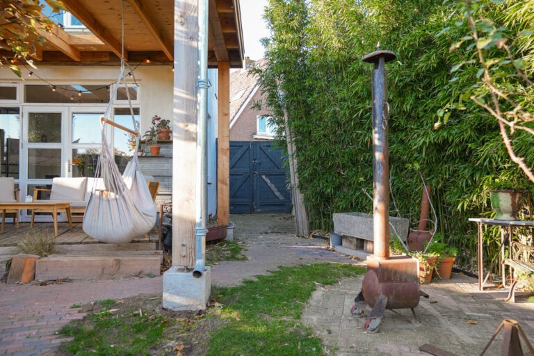 Stap binnen en laat je verrassen door de lichte, royale woonkamer met open keuken. Twee paar openslaande deuren aan de achterzijde brengen de tuin en sfeervolle overkapping letterlijk bij je binnen – ideaal voor een zonnige lunch, een ontspannen avond met vrienden of gewoon lekker binnen-buiten leven. Via de hal bereik je een extra ruimte aan de voorzijde, momenteel in gebruik als praktijkruimte, maar ook perfect als hobbyruimte, speelkamer, kantoor of atelier. Op de verdieping liggen drie goed bemeten slaapkamers en een grote, moderne badkamer met ligbad, inloopdouche en toilet. Extra praktisch: een kelder voor extra opslagruimte.