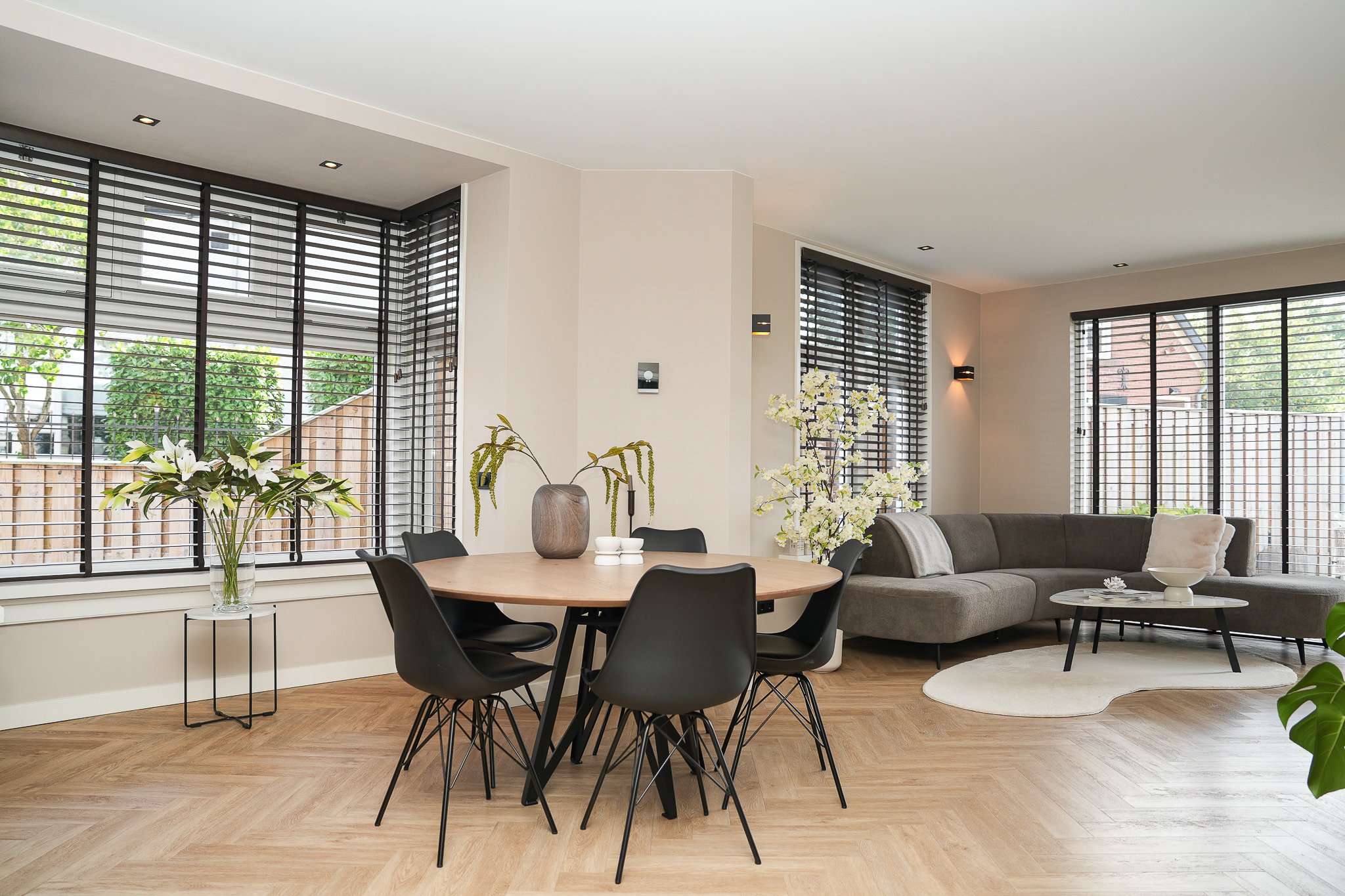 • sfeervolle living met erker en visgraatvloer;