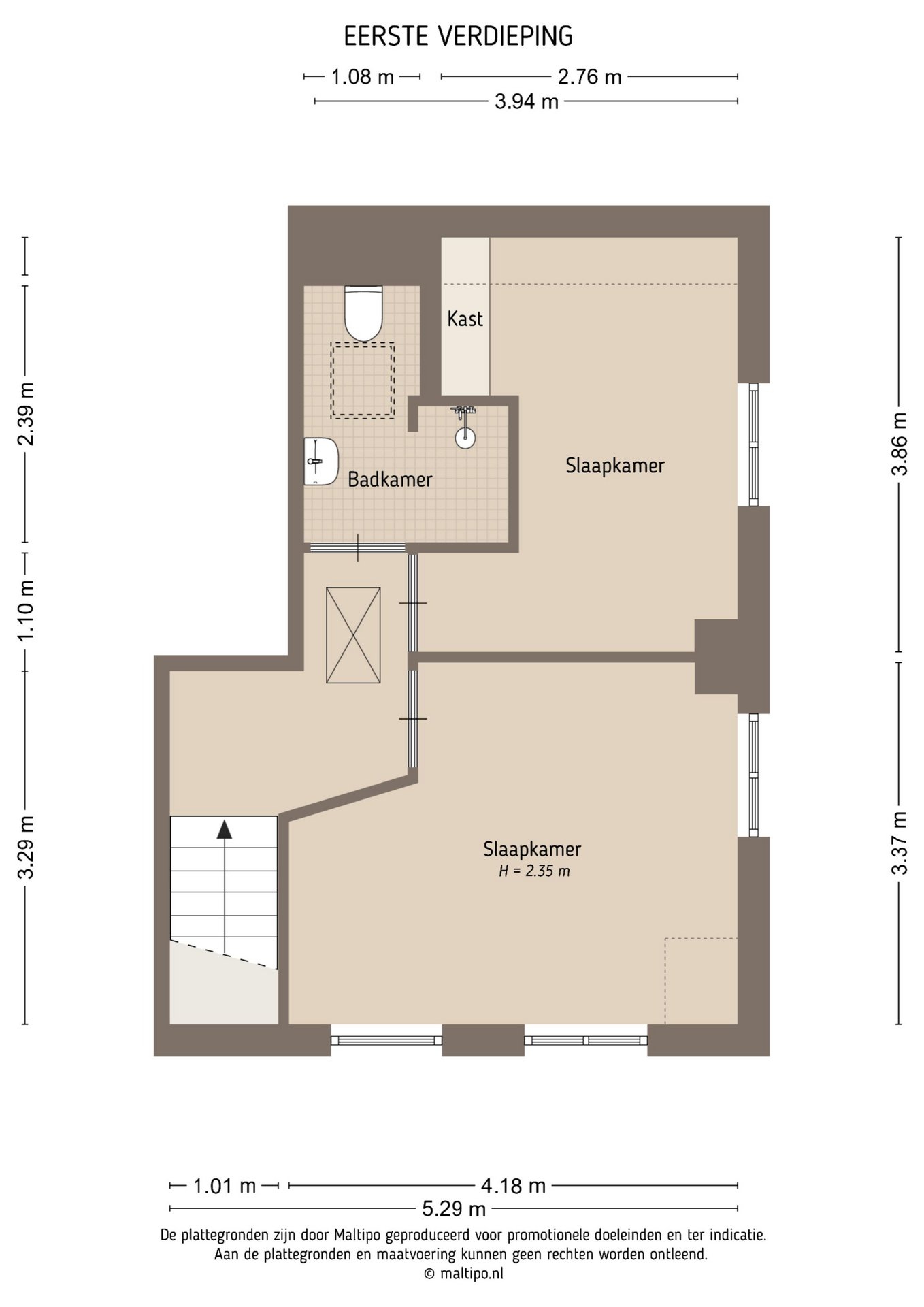 • vliering én kelder met stahoogte (1,96 m);