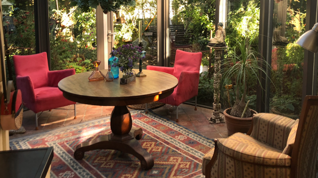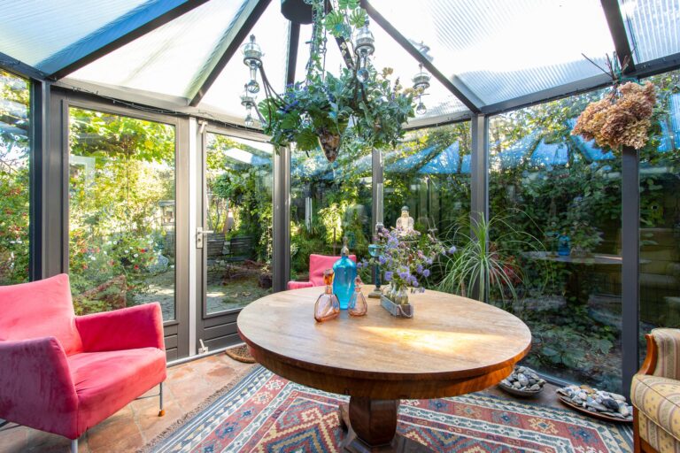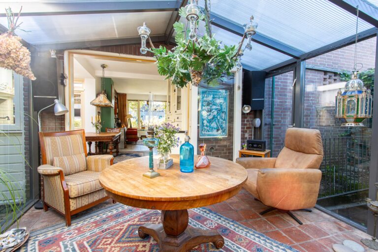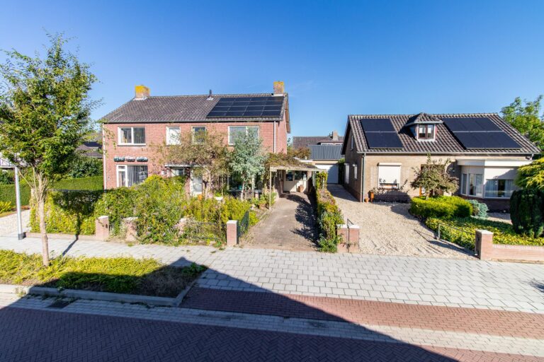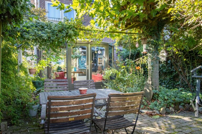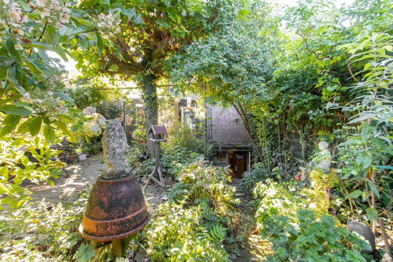 De achtertuin van deze woning is een waar paradijs voor natuurliefhebbers. Weelderig groen, fraaie bebossing en zorgvuldig aangelegde plantenborders zorgen voor een serene en sfeervolle omgeving waarin u helemaal tot rust kunt komen. Vanuit de lichte serre stapt u direct de tuin in, waar het binnen- en buitenleven naadloos in elkaar overlopen. De serre vormt de perfecte verbinding tussen het huis en deze groene oase, waardoor u ieder seizoen kunt genieten van de tuin. De kavel loopt door tot aan de zijkant van de woning en biedt via de Achterstraat toegang tot een tweede parkeergelegenheid. De ligging op het noordoosten zorgt ervoor dat u de hele dag door kunt genieten van zowel zon als schaduw, met de zonneterrassen als ideale plek om te ontspannen.