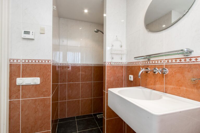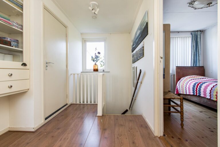 Eerste verdieping: de ruime overloop geeft toegang tot 3 slaapkamers en nette badkamer met douche, toilet en wastafel. De slaapkamer aan de achterzijde is voorzien van balkon met fraai zicht op de achtertuin.