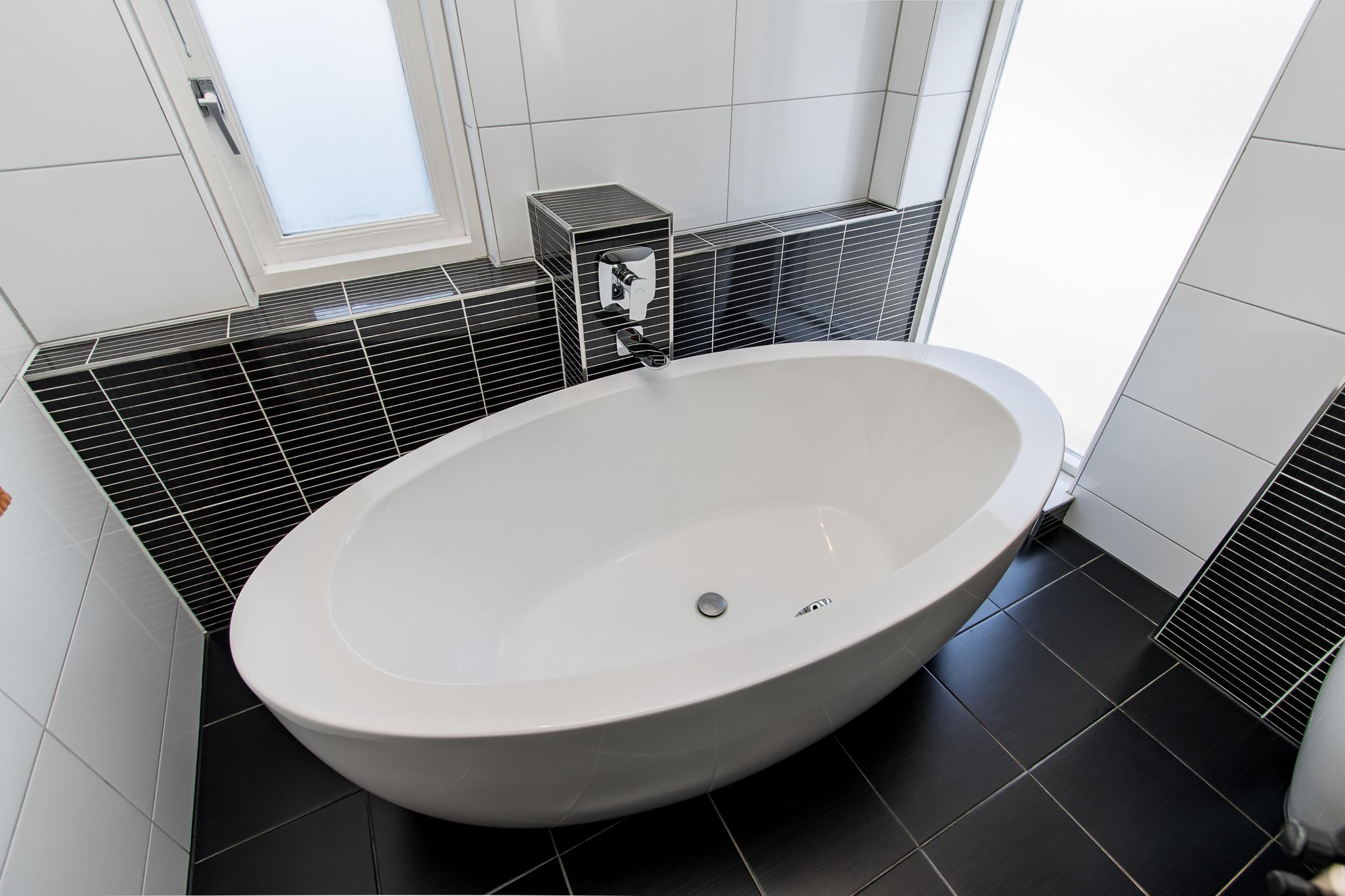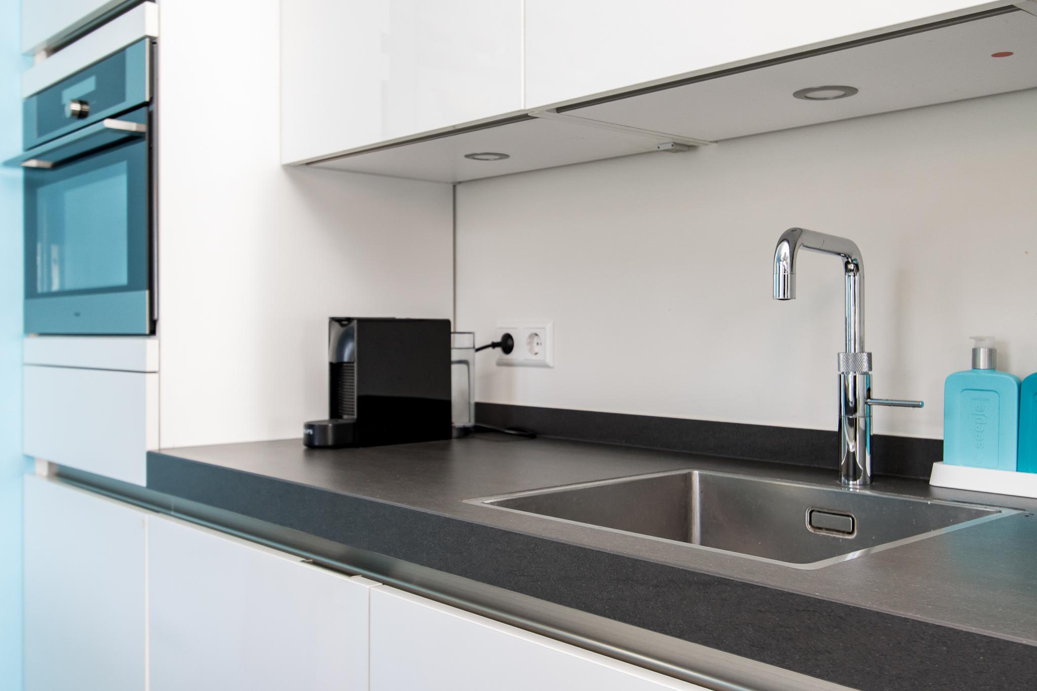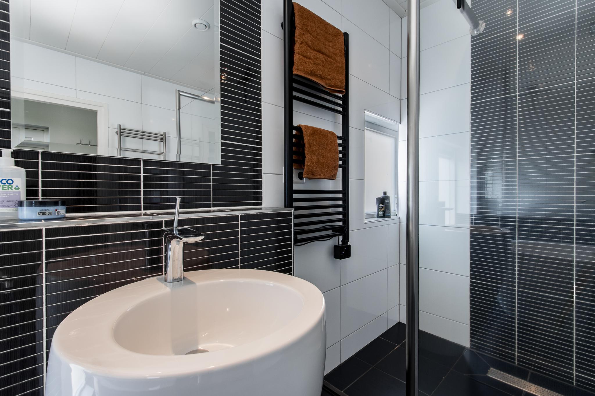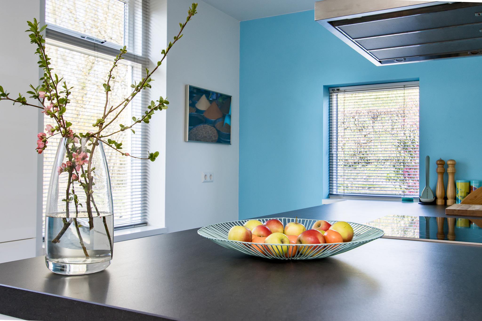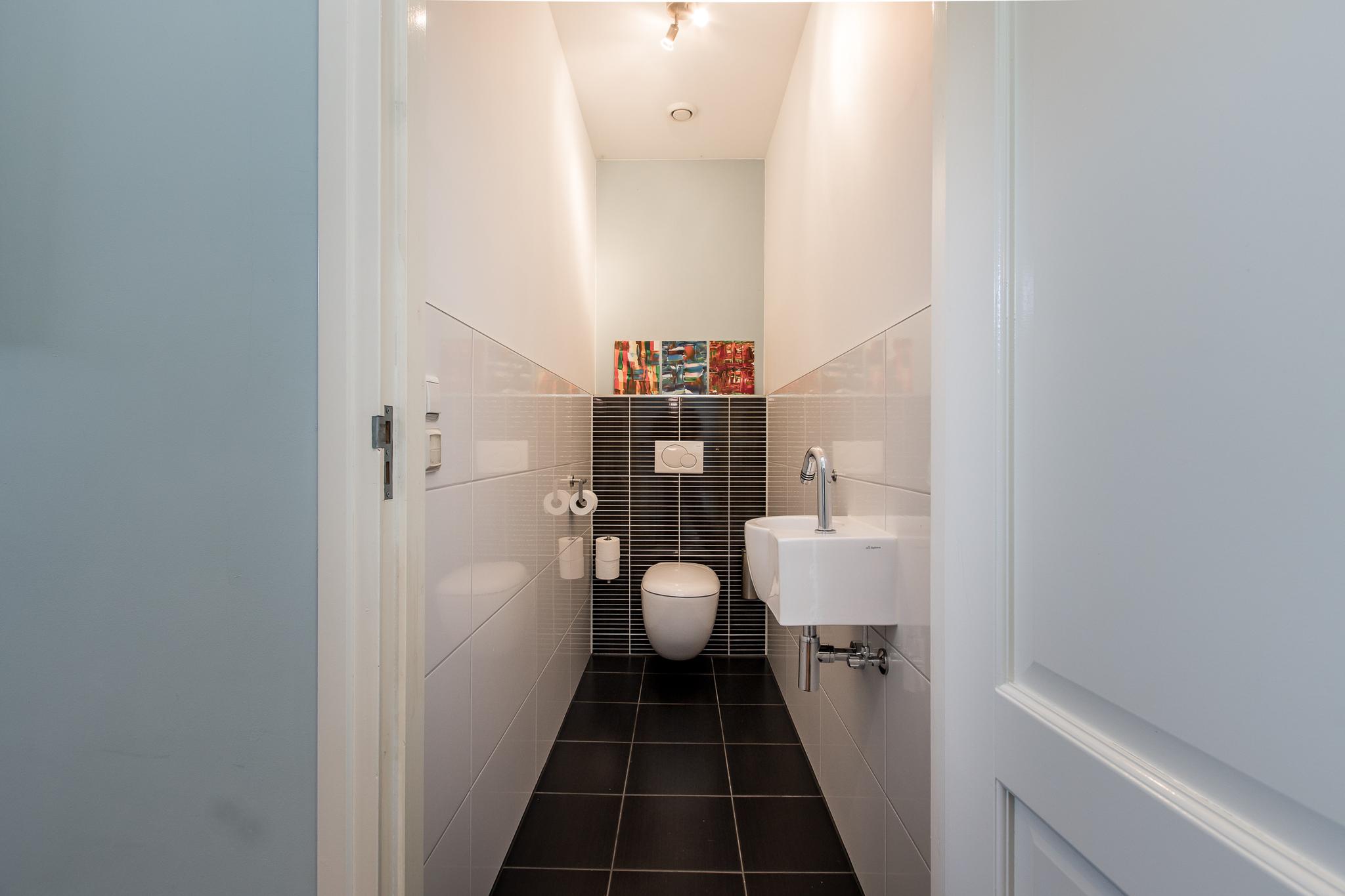 De eigentijdse badkamer is stijlvol ingericht en uitgerust met een inloopdouche, een strak vormgegeven bad en een wastafel. Via de hal stapt u de ruime en lichte woonkamer binnen, waar openslaande deuren niet alleen toegang geven tot het zonnige terras, maar ook een prachtig weids uitzicht over de tuin bieden. De open haard voegt extra sfeer en warmte toe. Aangrenzend bevindt zich de royale woonkeuken, die is voorzien van een moderne keukenunit met kookeiland. Ook deze ruimte heeft een eigen entree, wat zorgt voor extra gemak en toegankelijkheid.