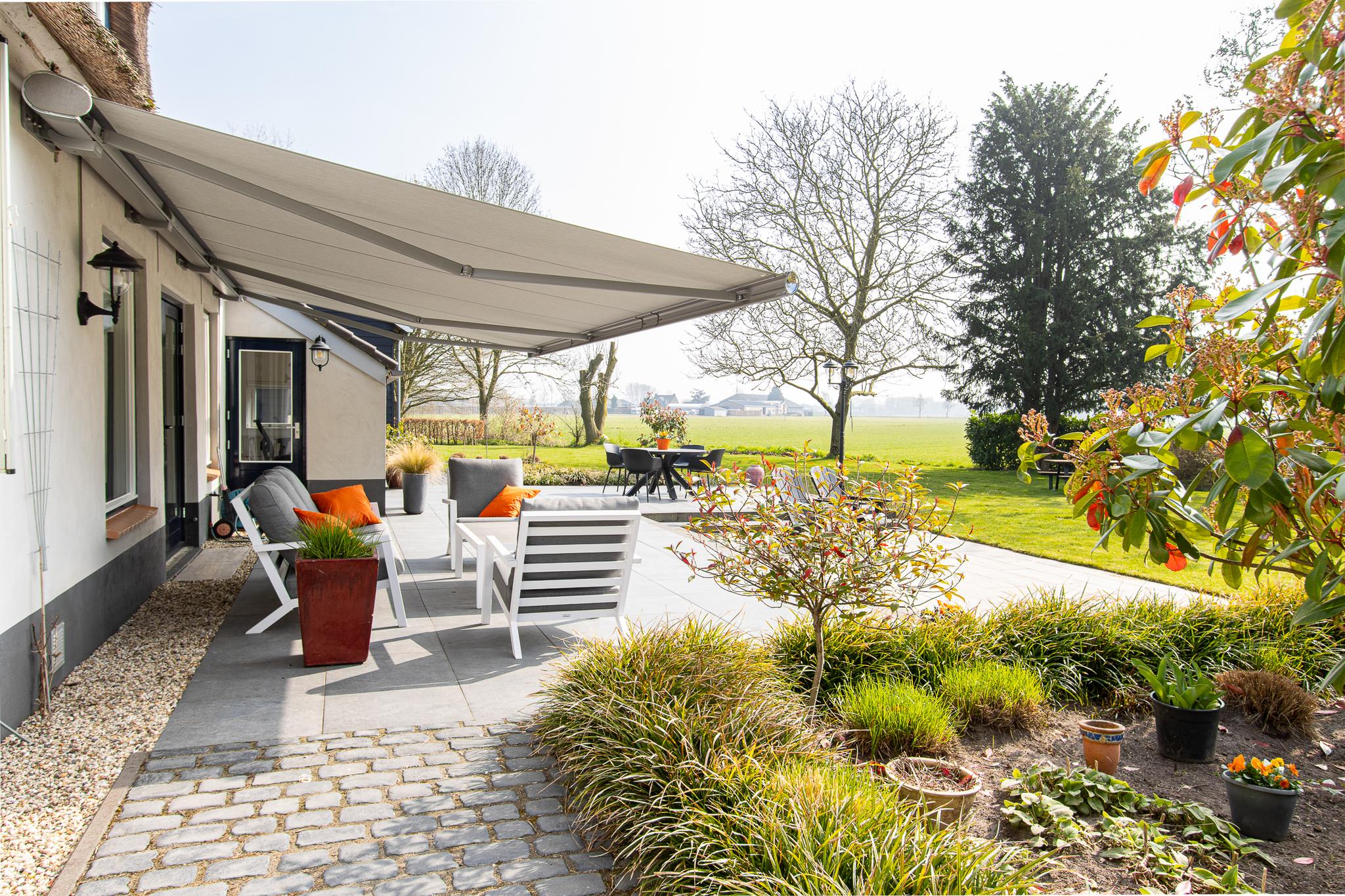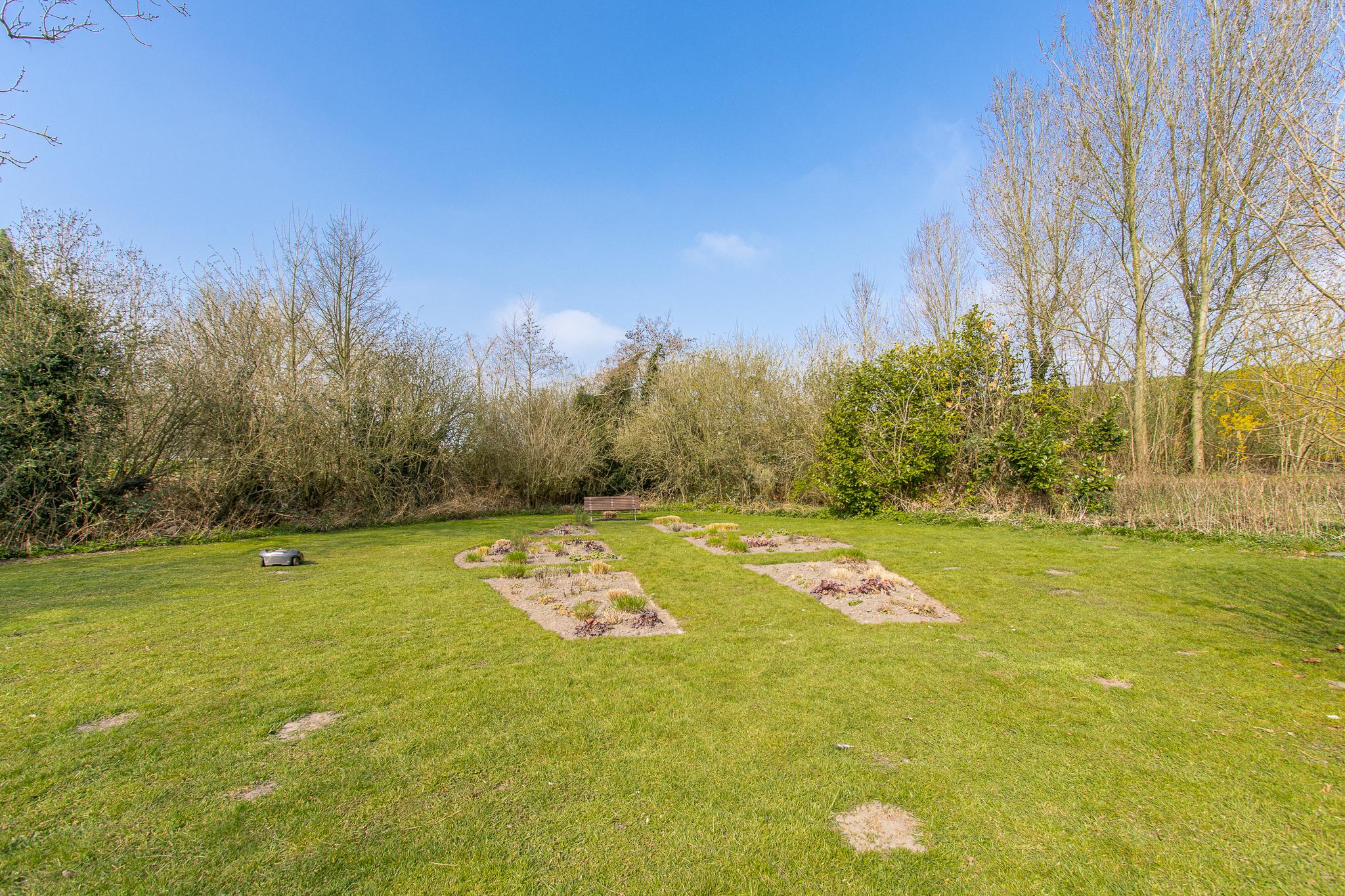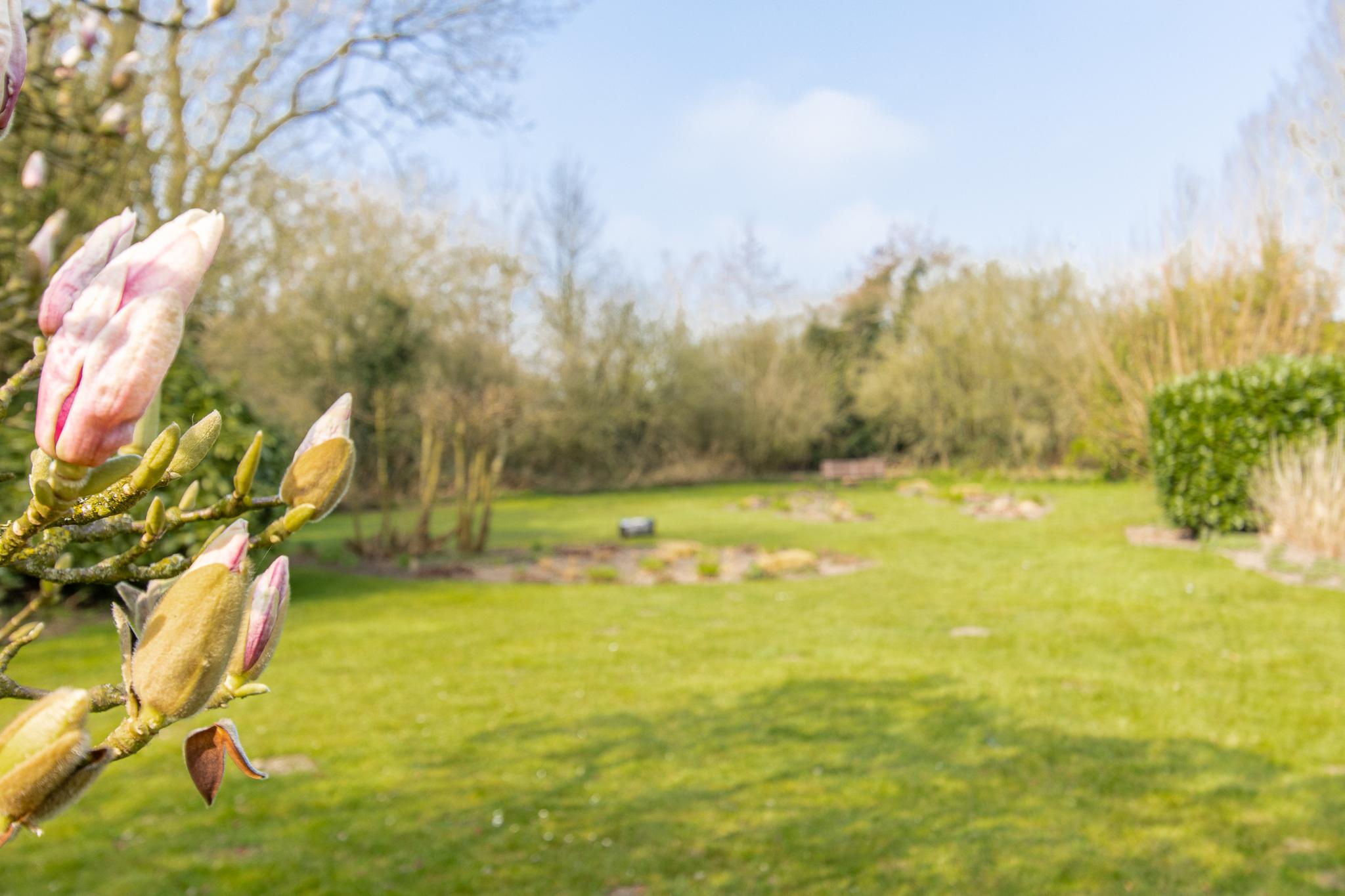Met een royaal perceel van 2.335 m² geniet u hier van volledige privacy, een tuin rondom met zonnige terrassen, een groot gazon, sierlijke borders en diverse (fruit)bomen. De aangrenzende landerijen zorgen voor een vrij en schilderachtig uitzicht, elk seizoen opnieuw een ansichtkaart.