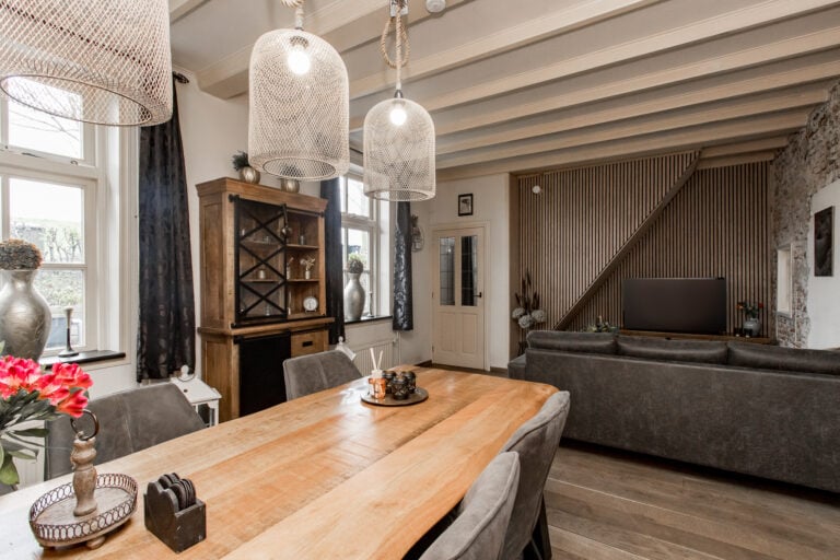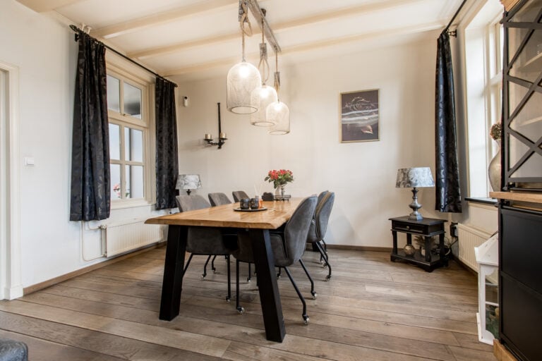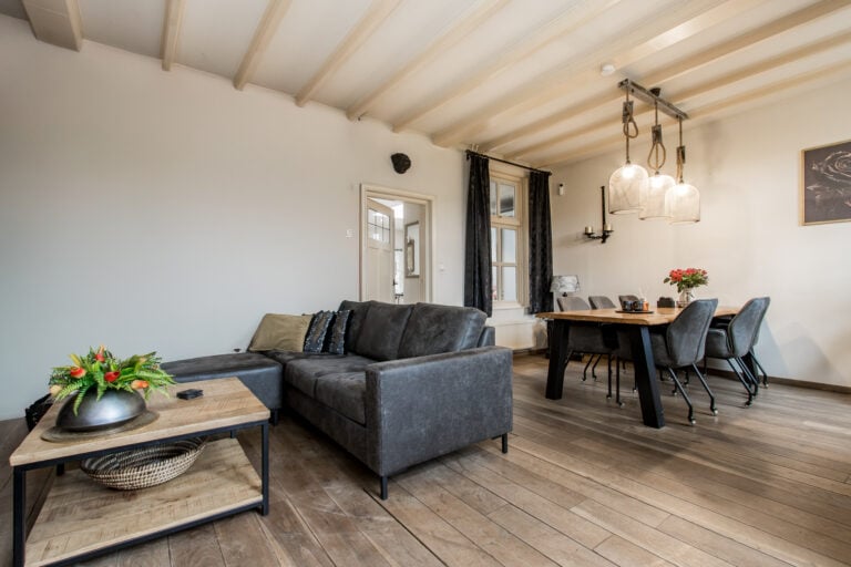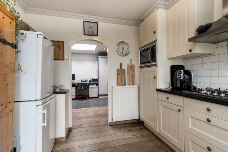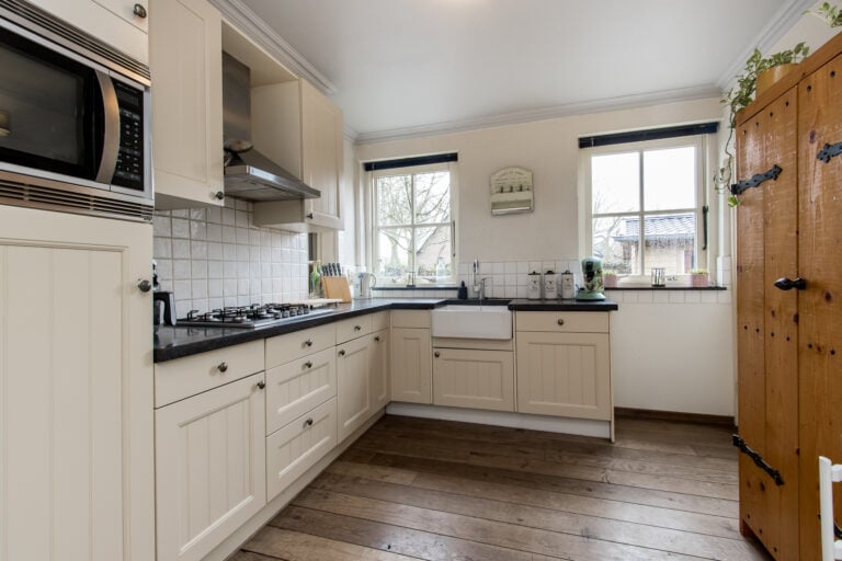 De woning combineert karakter met comfort. Dankzij de uitbouw aan de achterzijde is er extra leefruimte ontstaan op de begane grond, wat zorgt voor een prettige, open sfeer. De woonkamer is sfeervol en uitnodigend, een fijne plek om thuis te komen na een wandeling over de dijk. De aparte keuken is functioneel ingericht en biedt volop mogelijkheden voor wie graag kookt en geniet van gezellig tafelen.