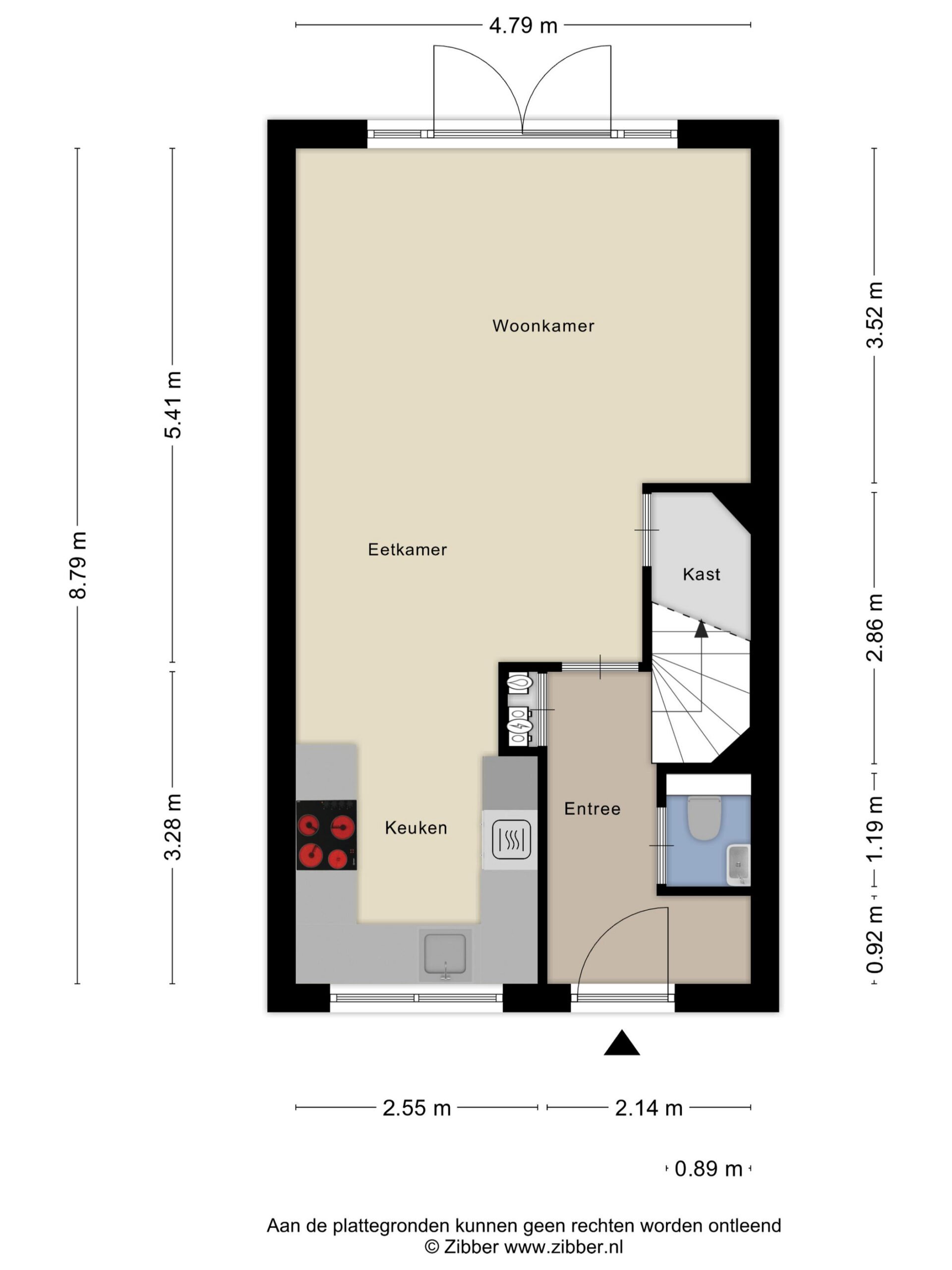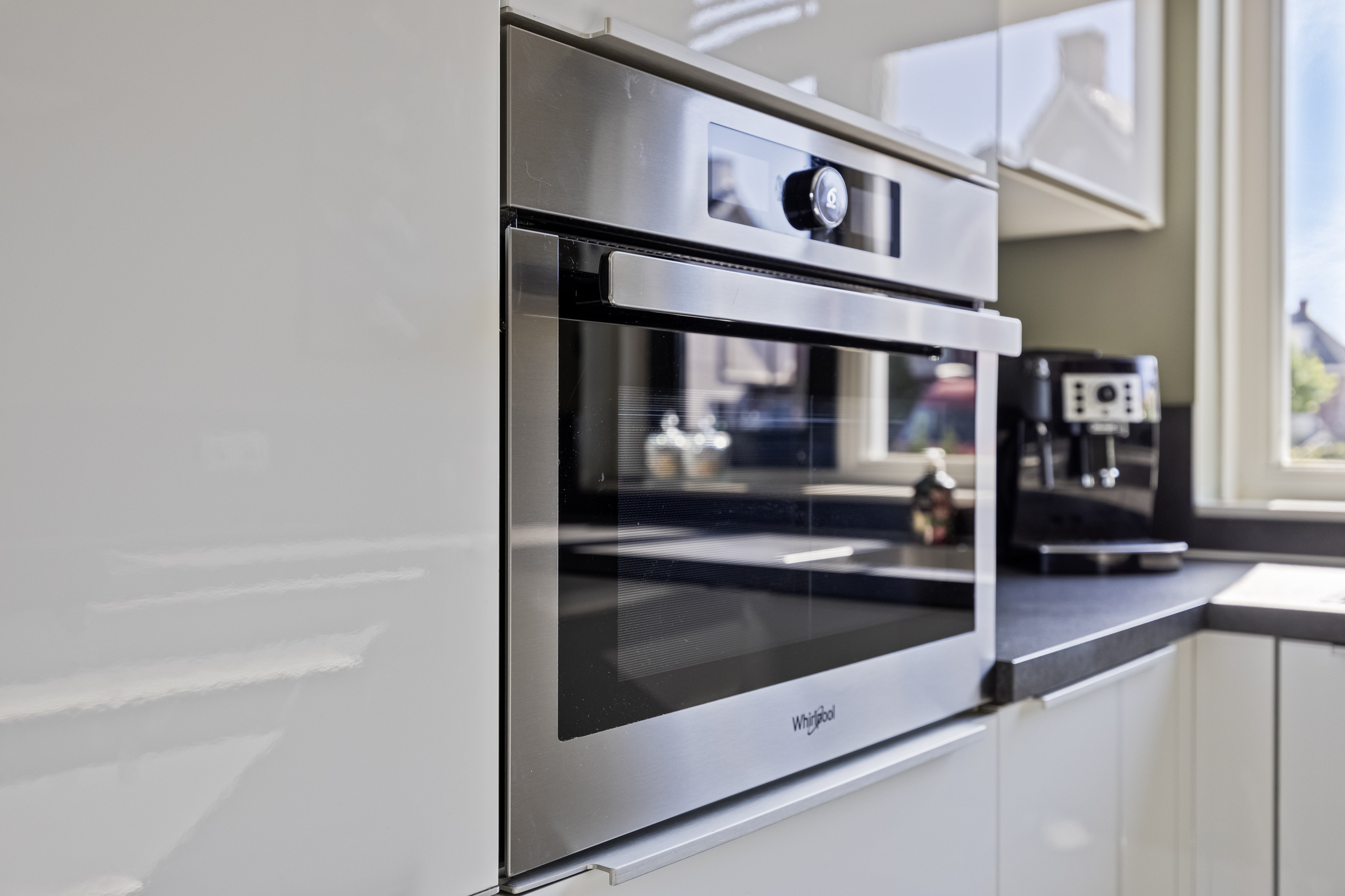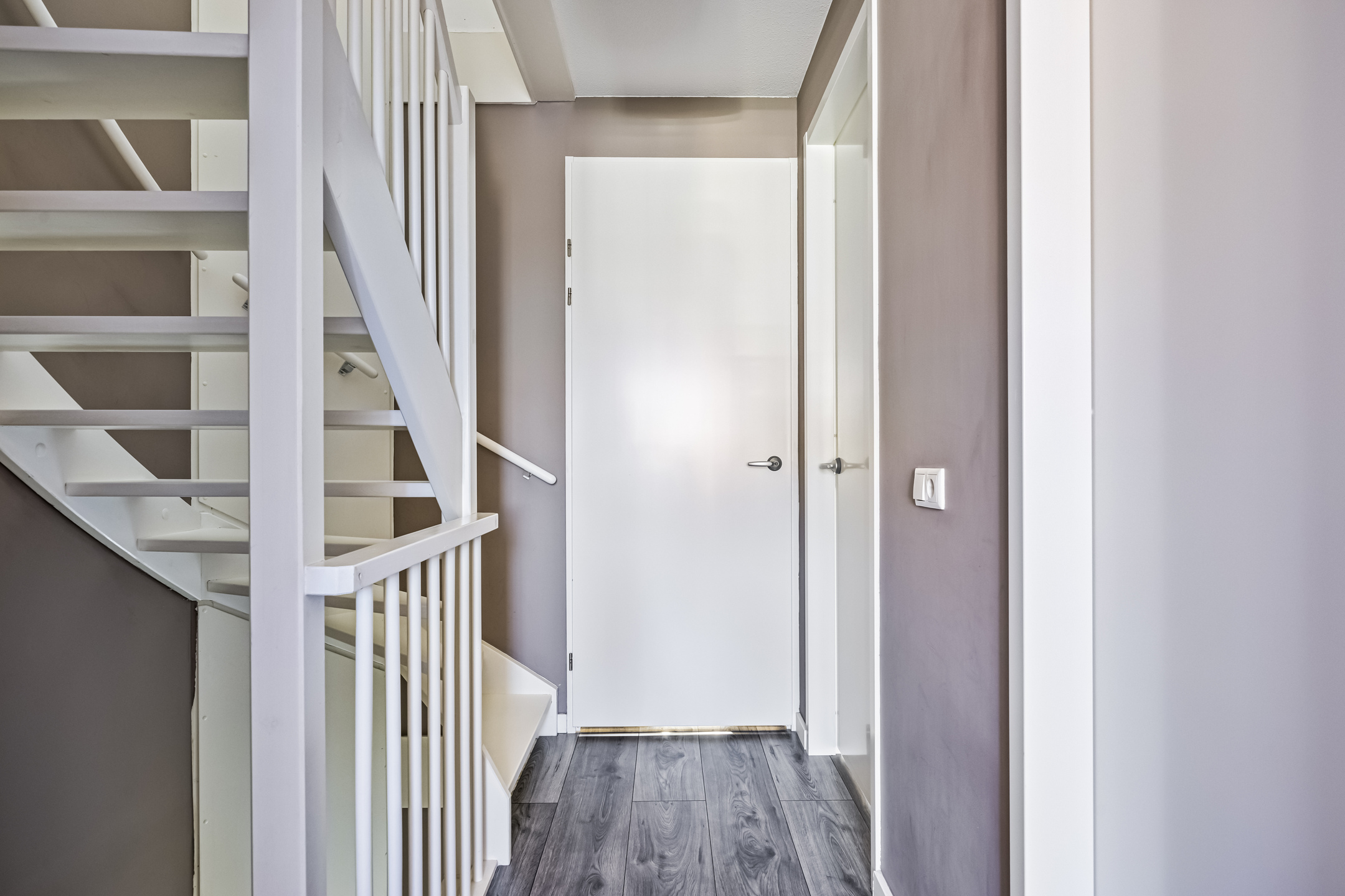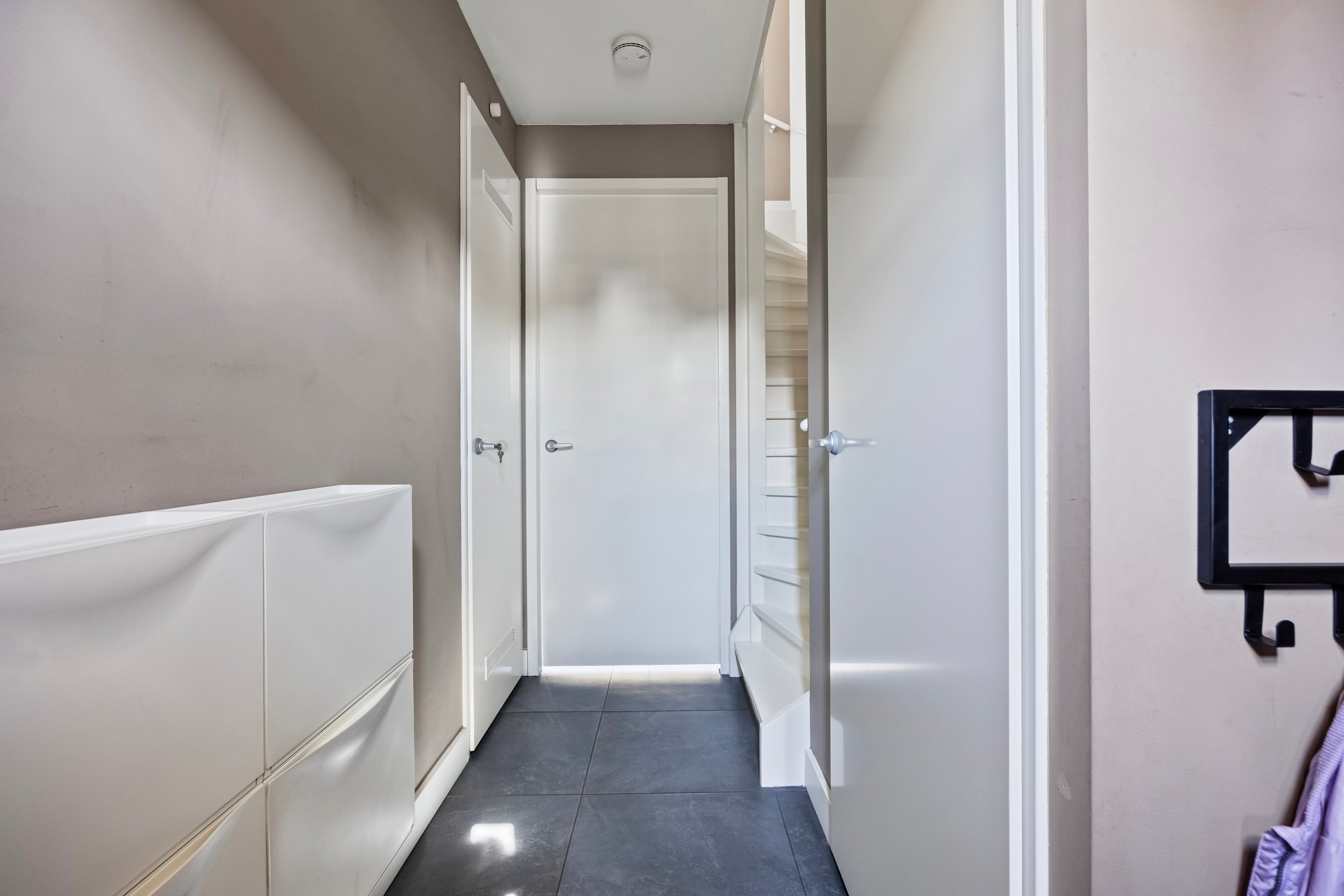 Indeling: via de entree kom je in de hal met garderobehoek, toilet, meterkast en trapopgang. De tuingerichte woonkamer is voorzien van een handige trapkast en openslaande deuren naar de achtertuin. Aan de voorzijde vind je de moderne U-vormige keuken met complete inbouwapparatuur, waaronder een inductiekookplaat, combi-oven, koelkast met vriezer, vaatwasser en afzuigkap.