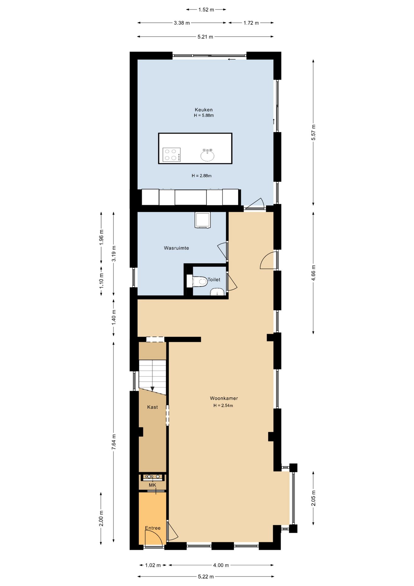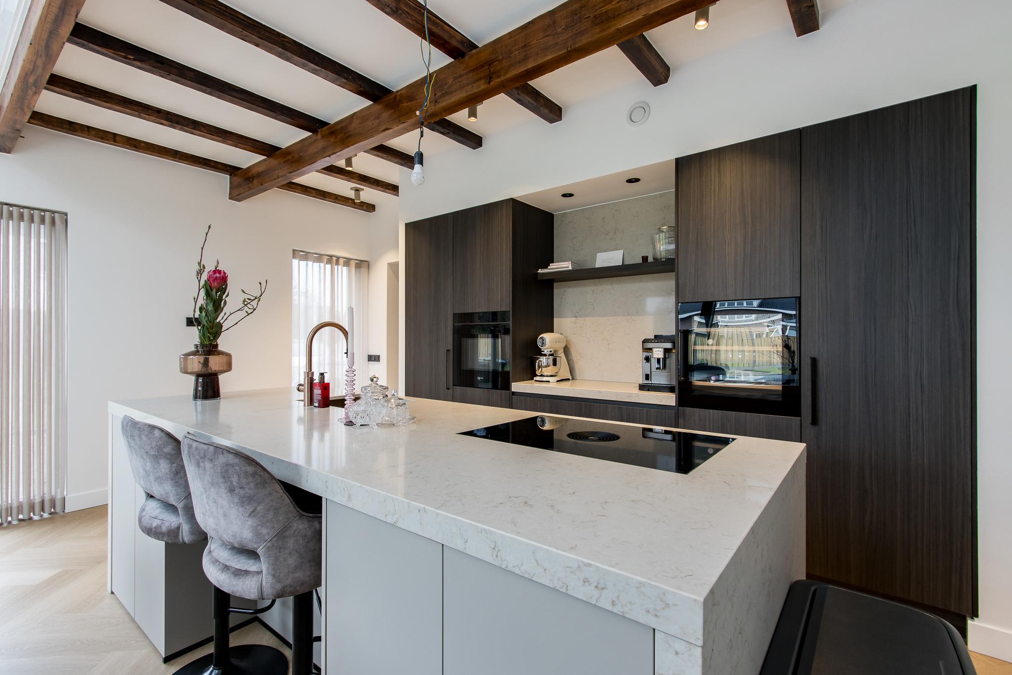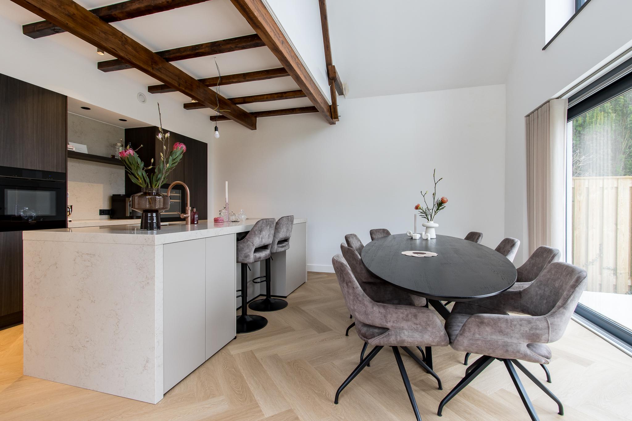 Indeling woning: bij binnenkomst via de entree aan de voorzijde word je verwelkomd in een knus halletje met de meterkast. Aan de voorzijde van de woning bevindt zich de royale en lichte woonkamer, waar de sfeervolle erker zorgt voor extra charme en veel daglicht. Praktisch gemak vind je in de trapkast, terwijl de dichte trapopgang subtiel de toegang tot de bovenverdieping markeert. In het gedeelte waar vroeger de keuken was, vind je nu een moderne toiletruimte en een bijkeuken met aansluitingen voor witgoed. Achterin de woning, in het voormalige achterhuis, is een royale woonkeuken gerealiseerd. Deze prachtige ruimte is uitgerust met een strakke kastenwand en een kook- en spoeleiland dat uitnodigt tot koken en gezellig samenzijn. Dankzij de schuifpui is er een directe verbinding met het terras en de achtertuin, waar binnen en buiten naadloos in elkaar overlopen.