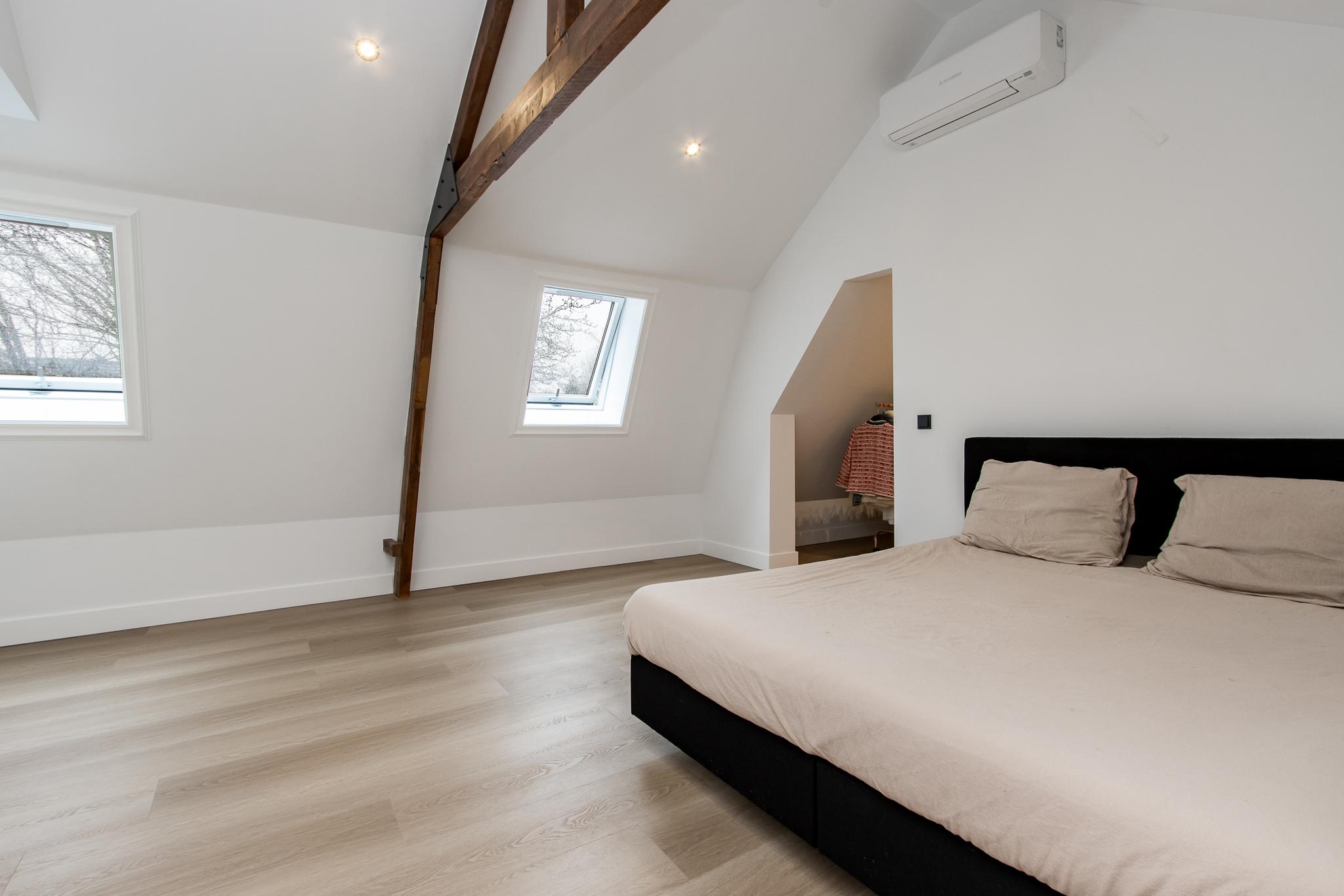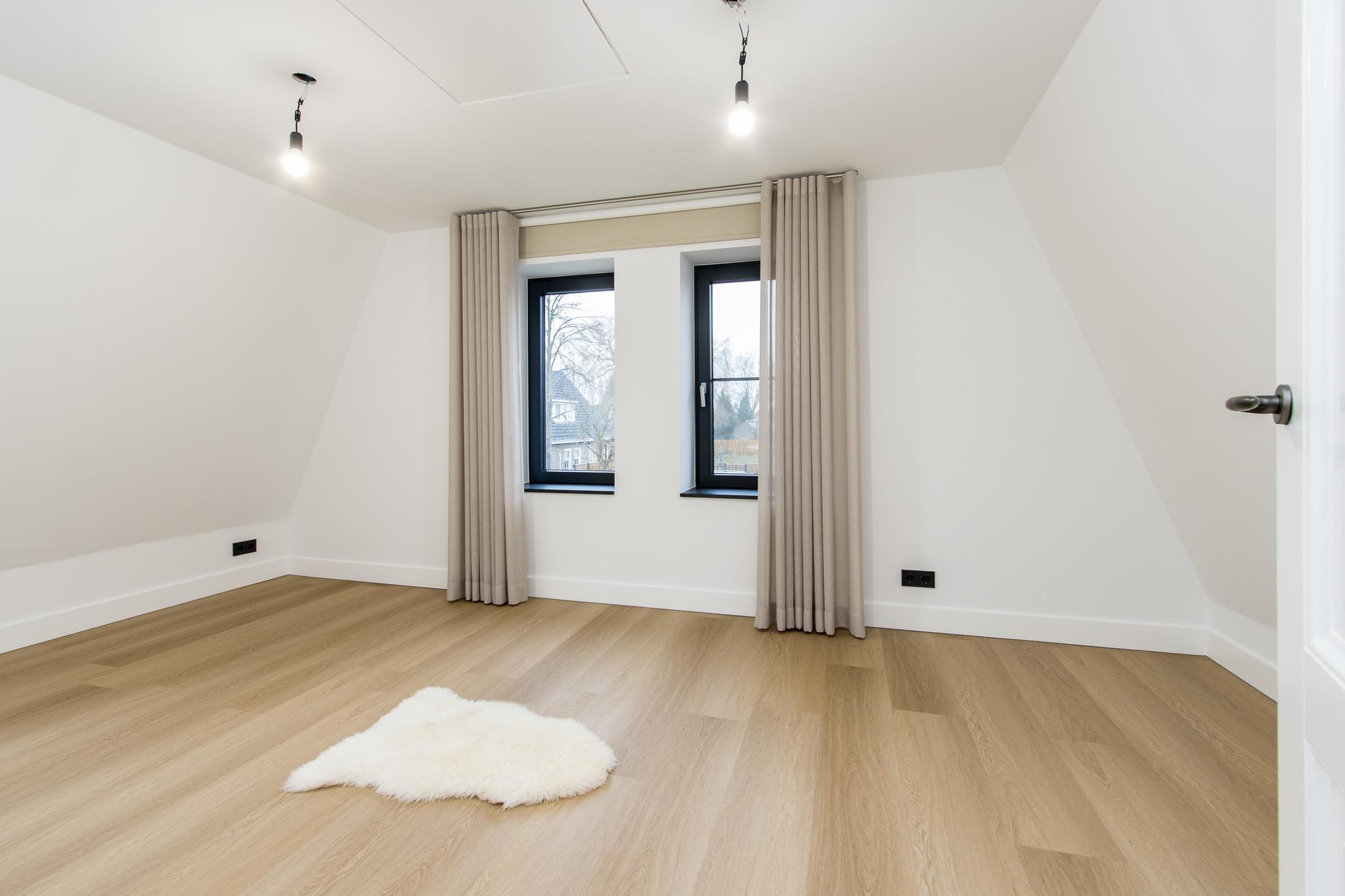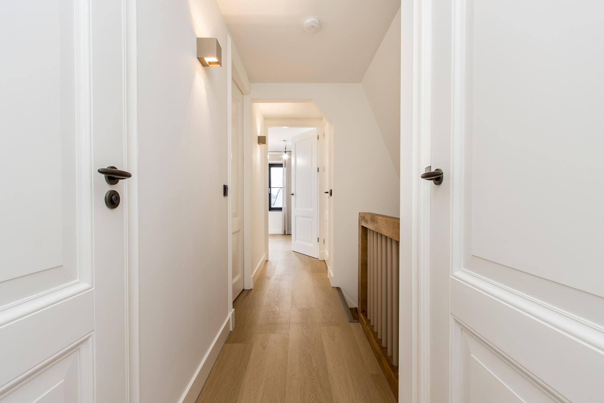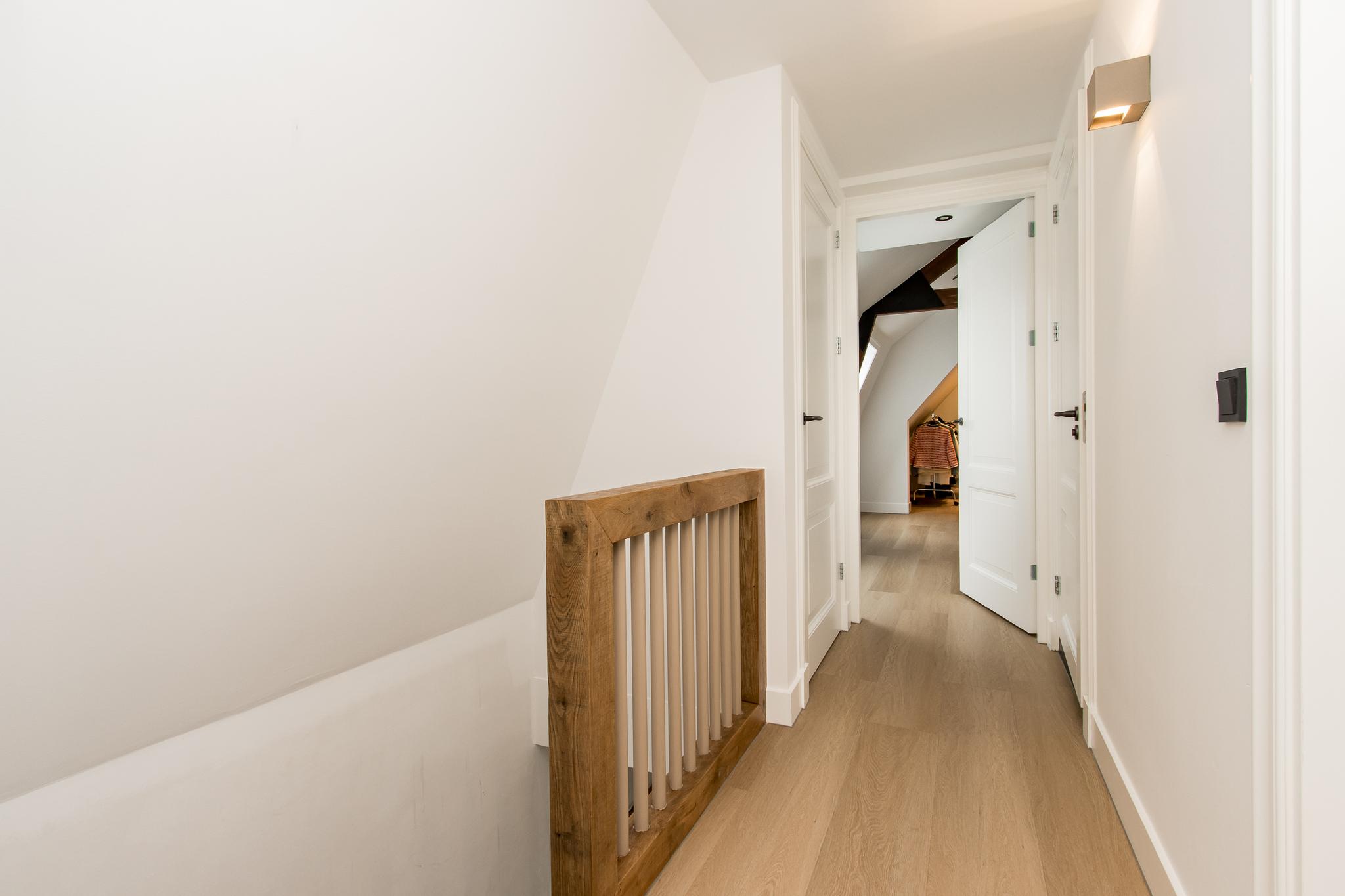 Eerste verdieping: de overloop met vaste kast en een aparte toiletruimte biedt toegang naar drie goed bemeten slaapkamers en een luxe badkamer. De badkamer is een waar pronkstuk en straalt pure elegantie uit met een vrijstaand ligbad en een stijlvolle mengkraan, een ruime inloopdouche met regendouche en een fraai badmeubel met dubbele waskommen en inbouwkranen. De masterbedroom is bijzonder royaal en voorzien van een luxe inloopkast, die ruimte biedt aan al je kleding en accessoires. Een droom van een slaapkamer waar rust en comfort samenkomen!