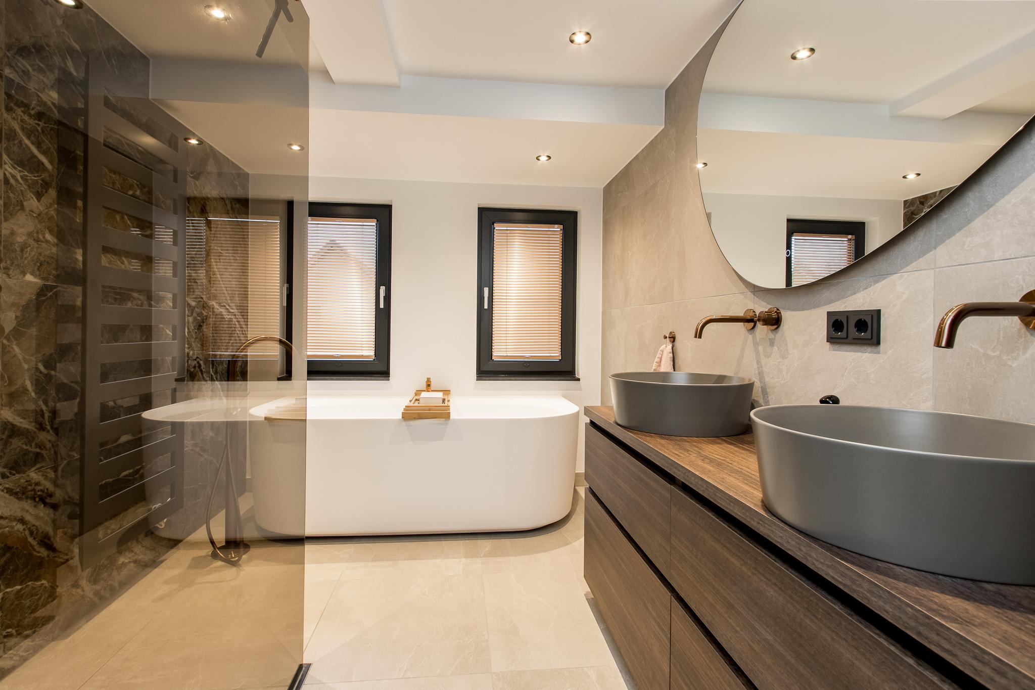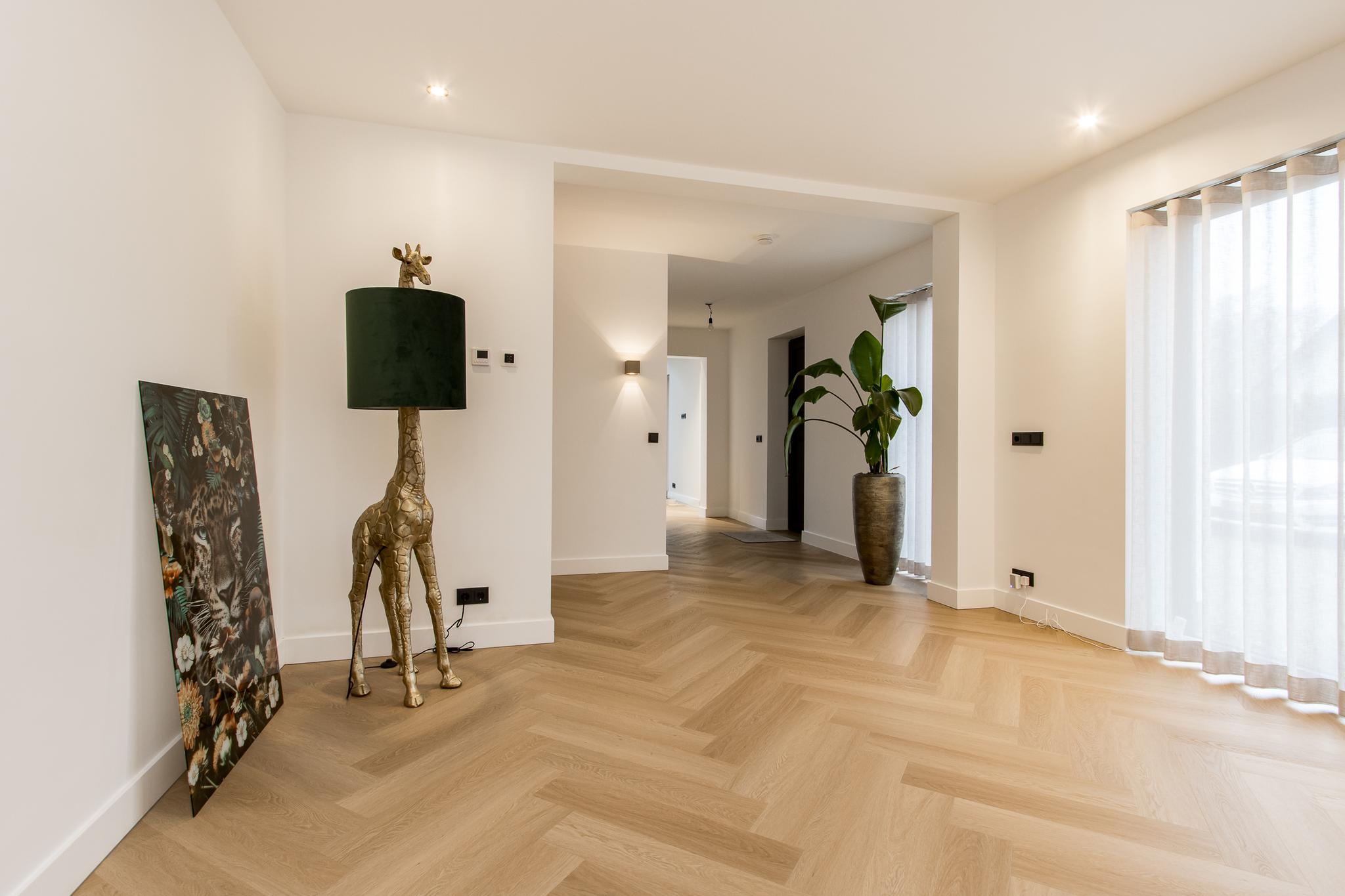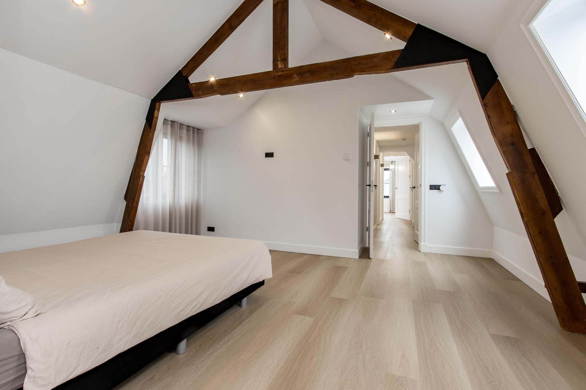 Eerste verdieping: de overloop met vaste kast en een aparte toiletruimte biedt toegang naar drie goed bemeten slaapkamers en een luxe badkamer. De badkamer is een waar pronkstuk en straalt pure elegantie uit met een vrijstaand ligbad en een stijlvolle mengkraan, een ruime inloopdouche met regendouche en een fraai badmeubel met dubbele waskommen en inbouwkranen. De masterbedroom is bijzonder royaal en voorzien van een luxe inloopkast, die ruimte biedt aan al je kleding en accessoires. Een droom van een slaapkamer waar rust en comfort samenkomen!