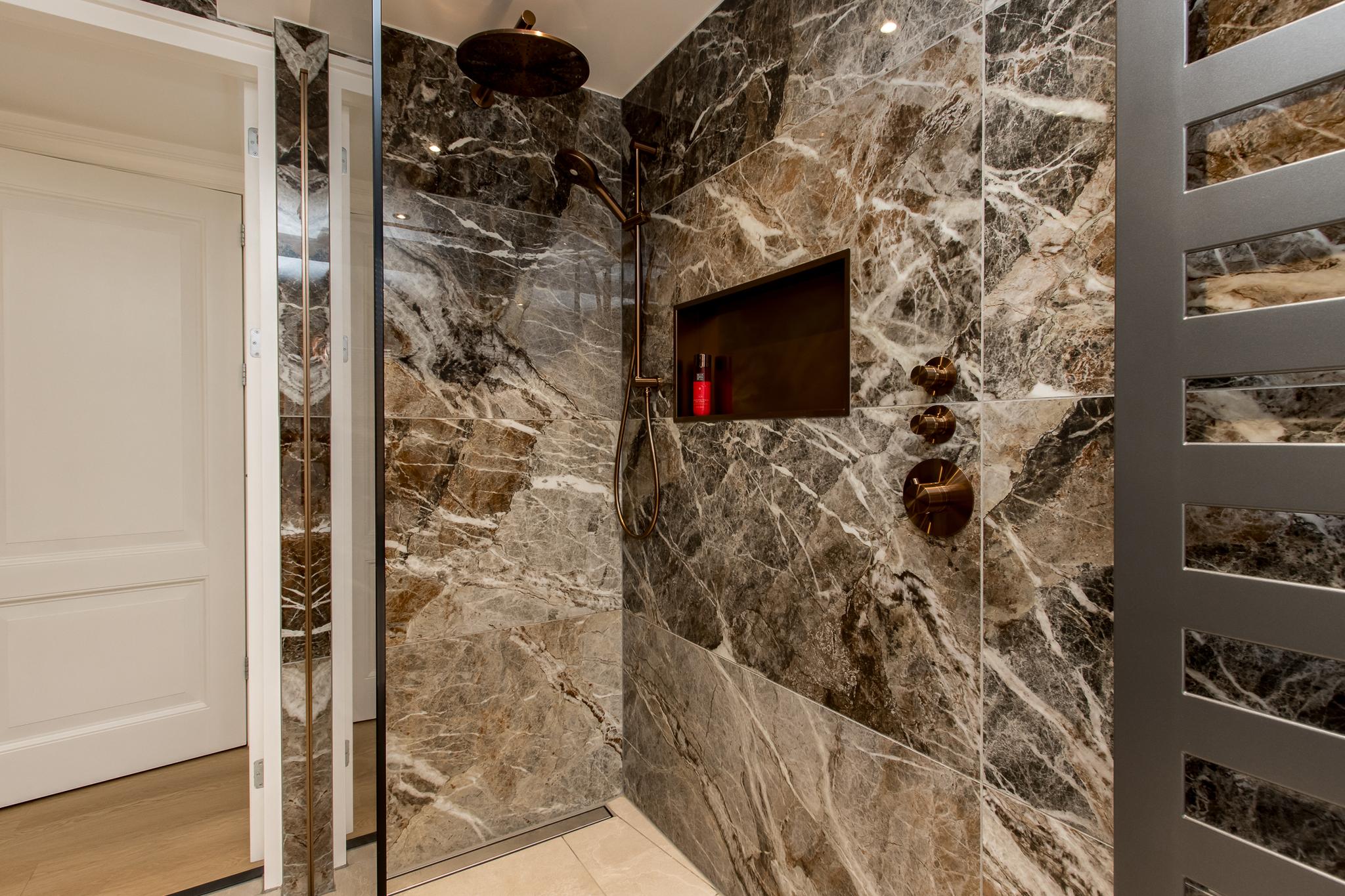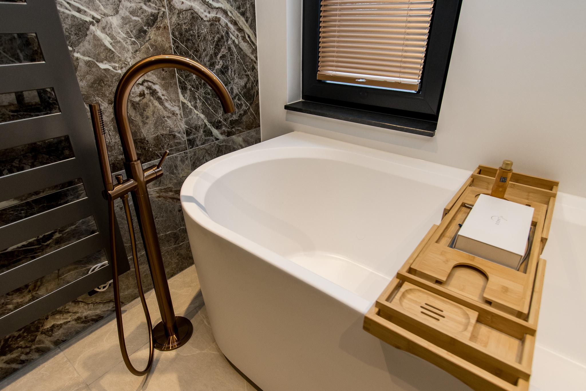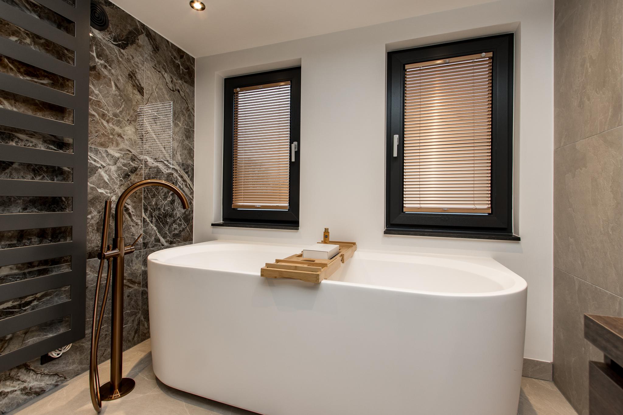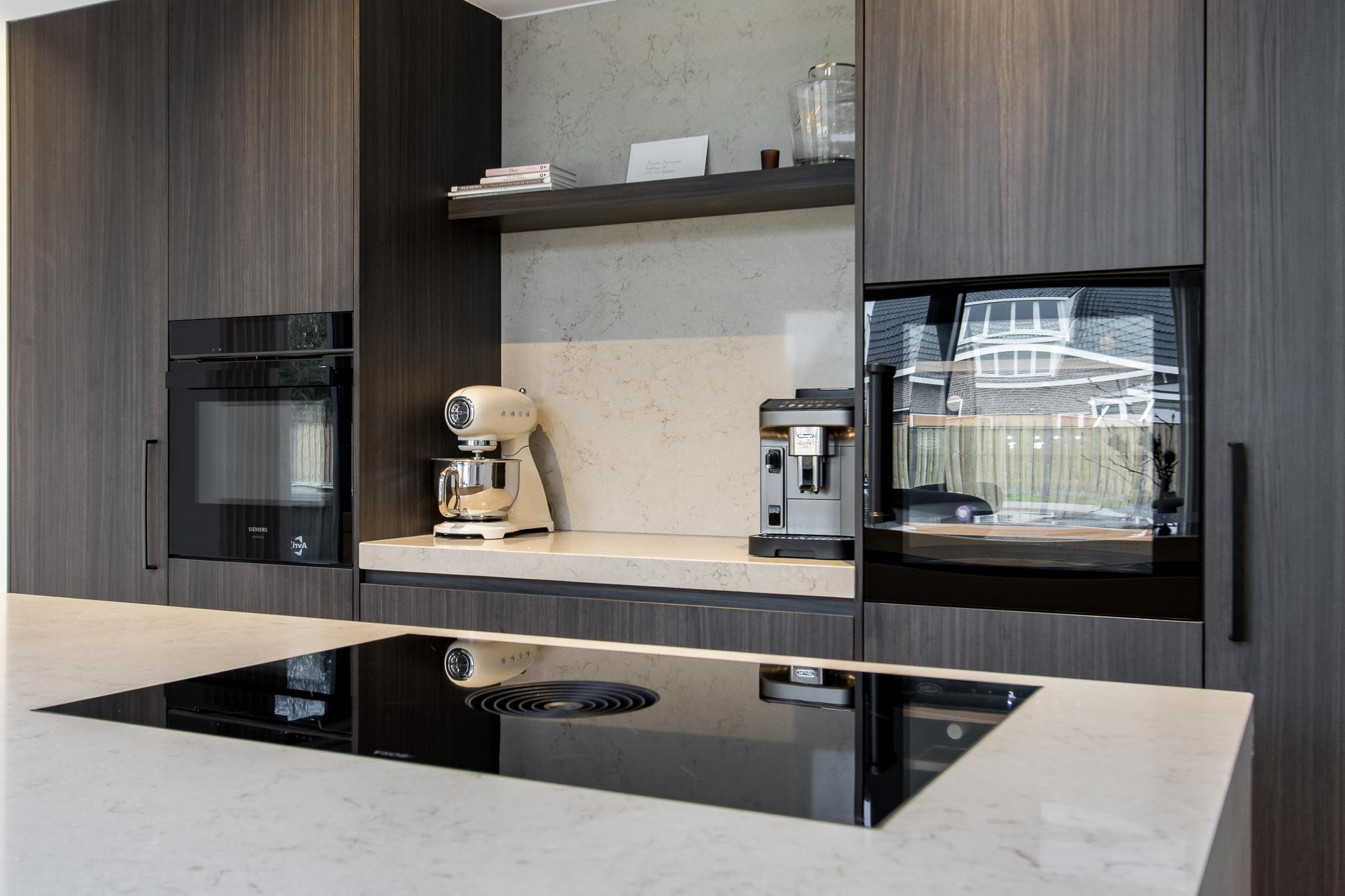 Eerste verdieping: de overloop met vaste kast en een aparte toiletruimte biedt toegang naar drie goed bemeten slaapkamers en een luxe badkamer. De badkamer is een waar pronkstuk en straalt pure elegantie uit met een vrijstaand ligbad en een stijlvolle mengkraan, een ruime inloopdouche met regendouche en een fraai badmeubel met dubbele waskommen en inbouwkranen. De masterbedroom is bijzonder royaal en voorzien van een luxe inloopkast, die ruimte biedt aan al je kleding en accessoires. Een droom van een slaapkamer waar rust en comfort samenkomen!