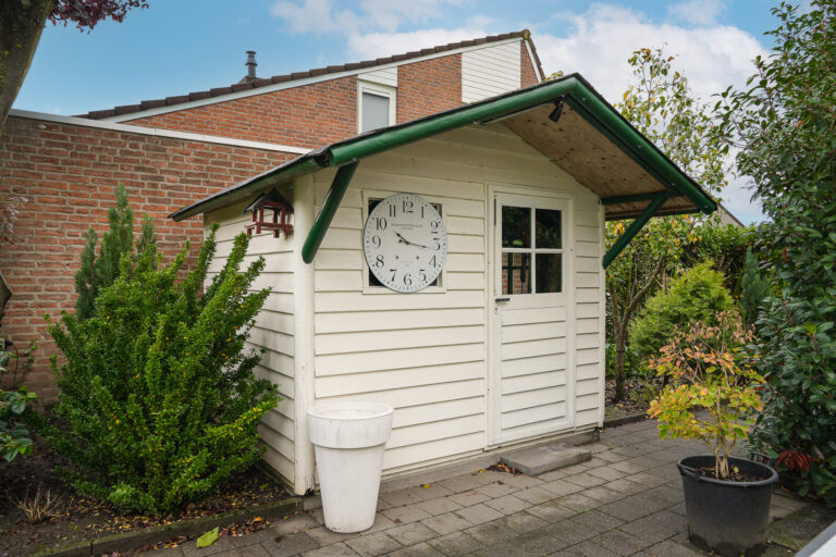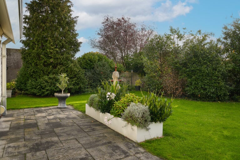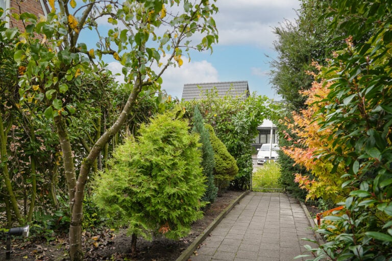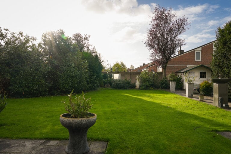 De achtertuin is groot en zonnig, met aansluitingen voor buitenverlichting en heaters, ideaal voor lange avonden buiten. De dubbele poort aan de achterzijde maakt tuinonderhoud eenvoudig, en op de oprit is ruimte voor meerdere auto’s of zelfs een camper. Er is een laadpunt voor elektrische voertuigen met dubbel stopcontact aanwezig.