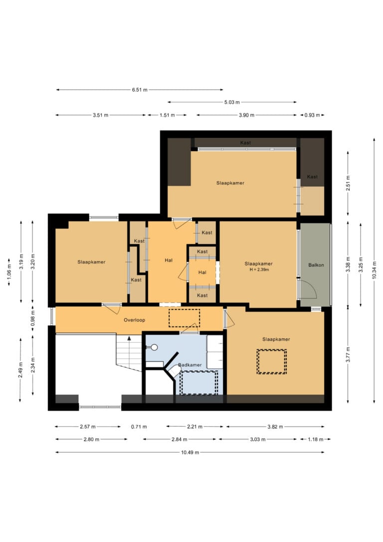 Vliering: via een vlizotrap is de vliering bereikbaar.