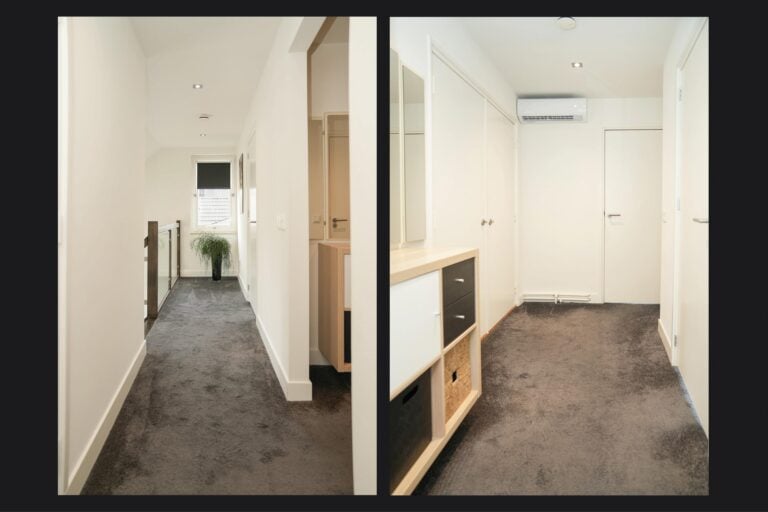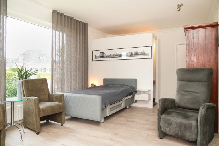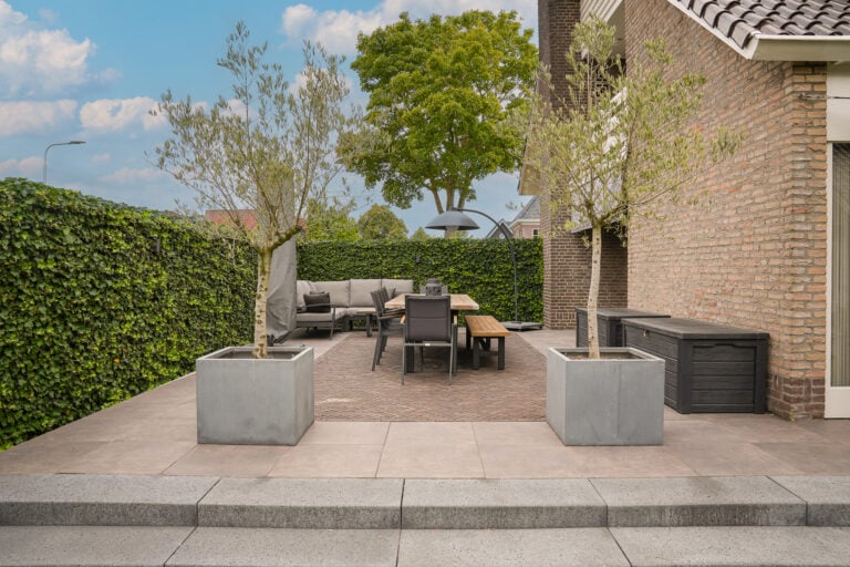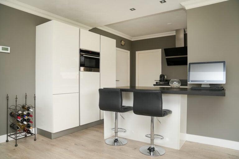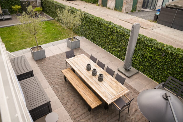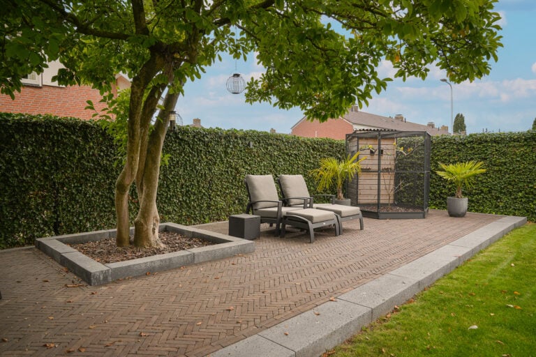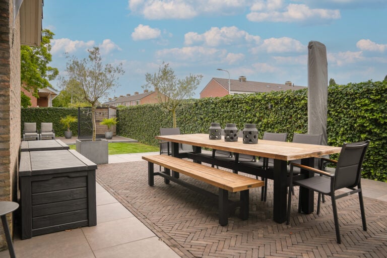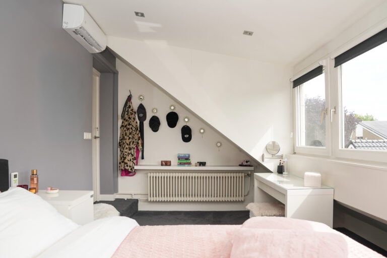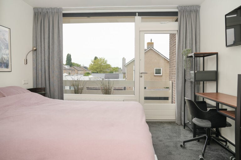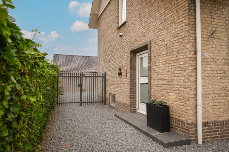Naast de bestaande foto’s zijn er ook enkele visualisaties toegevoegd om de mogelijkheden van deze woning extra goed in beeld te brengen. Zo zijn er impressies van de woonkamer én van de achtergevel te zien. Op deze gevelvisualisaties kunt u zien hoe de woning eruit kan zien wanneer de gevel wit wordt uitgevoerd – een kleine aanpassing die de woning een frisse, moderne uitstraling geeft. Zo krijgt u niet alleen een goed beeld van de huidige indeling en sfeer, maar ook van het potentieel dat deze villa biedt.