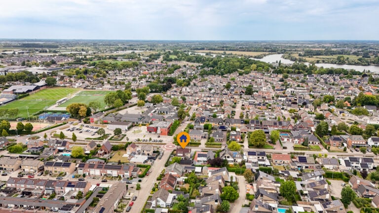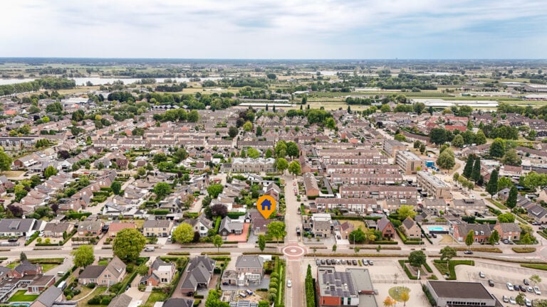 De woning is gelegen op een centrale locatie in de dorpskern van Kerkdriel, op korte afstand van het gezellige Mgr. Zwijsenplein en winkelcentrum ‘Delkant’. In de direct omgeving bevindt zich o.a. een speeltuin, scholen, openbaar vervoer, overdekt zwembad, winkels, terrassen, restaurants, jachthaven en golfbaan. Het prachtige recreatiegebied ‘de Zandmeren’ is nabij gelegen en biedt een diversiteit aan watersport en evenementen. Het gemoedelijke dorp is voorzien van een compleet winkelaanbod in winkelcentrum ‘Delkant’ met o.a. 2 grote supermarkten, warme bakker, horecavoorzieningen, slagerijen, cafetaria en op loopafstand 2 basisscholen. Uitvalswegen maken de steden Den Bosch en Utrecht goed bereikbaar. Middelbare scholen bevinden zich in Den Bosch en Zaltbommel, beide plaatsen goed te bereiken per fiets en/of per bus.
