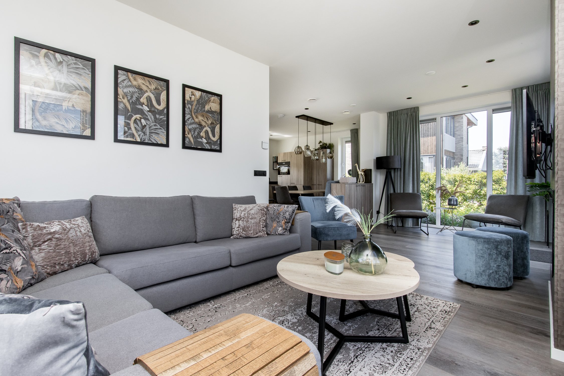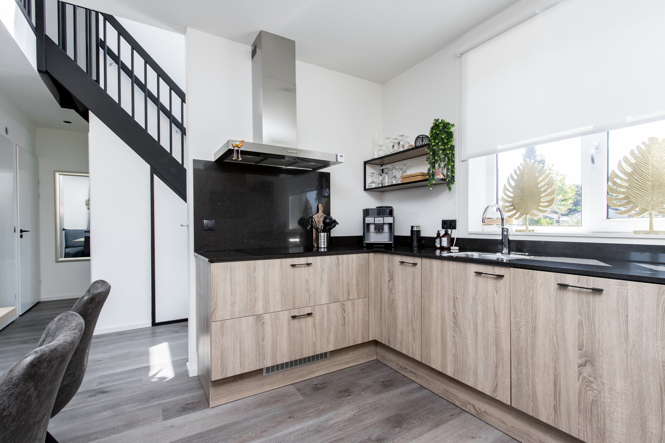 • Woonruimte: luxe royale open keuken met composiet aanrechtblad en aansluitend woonkamer met openslaande
