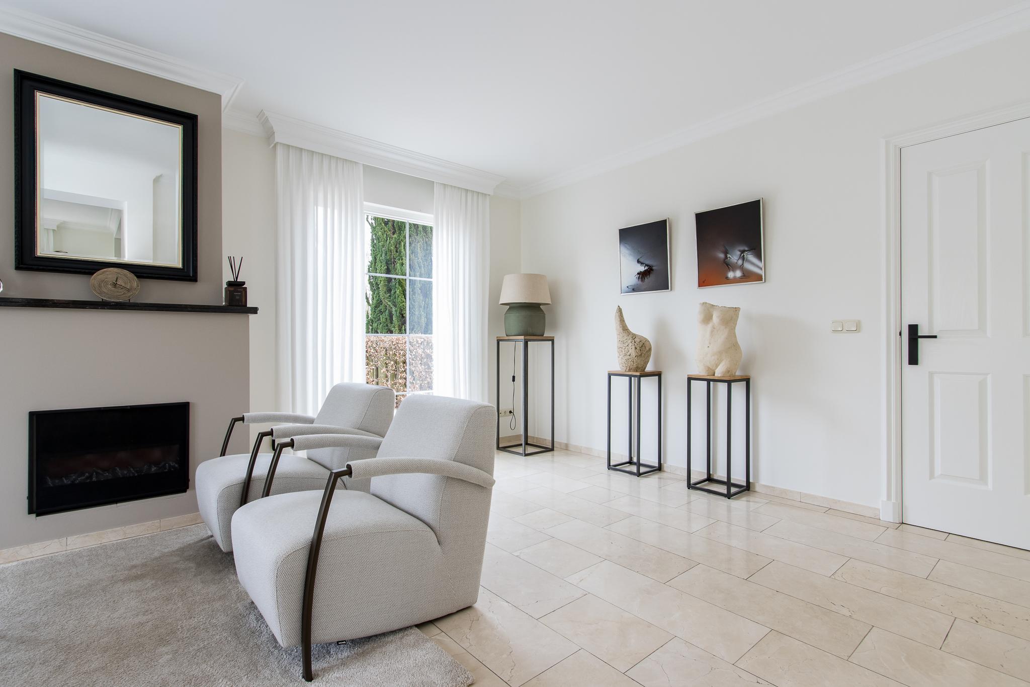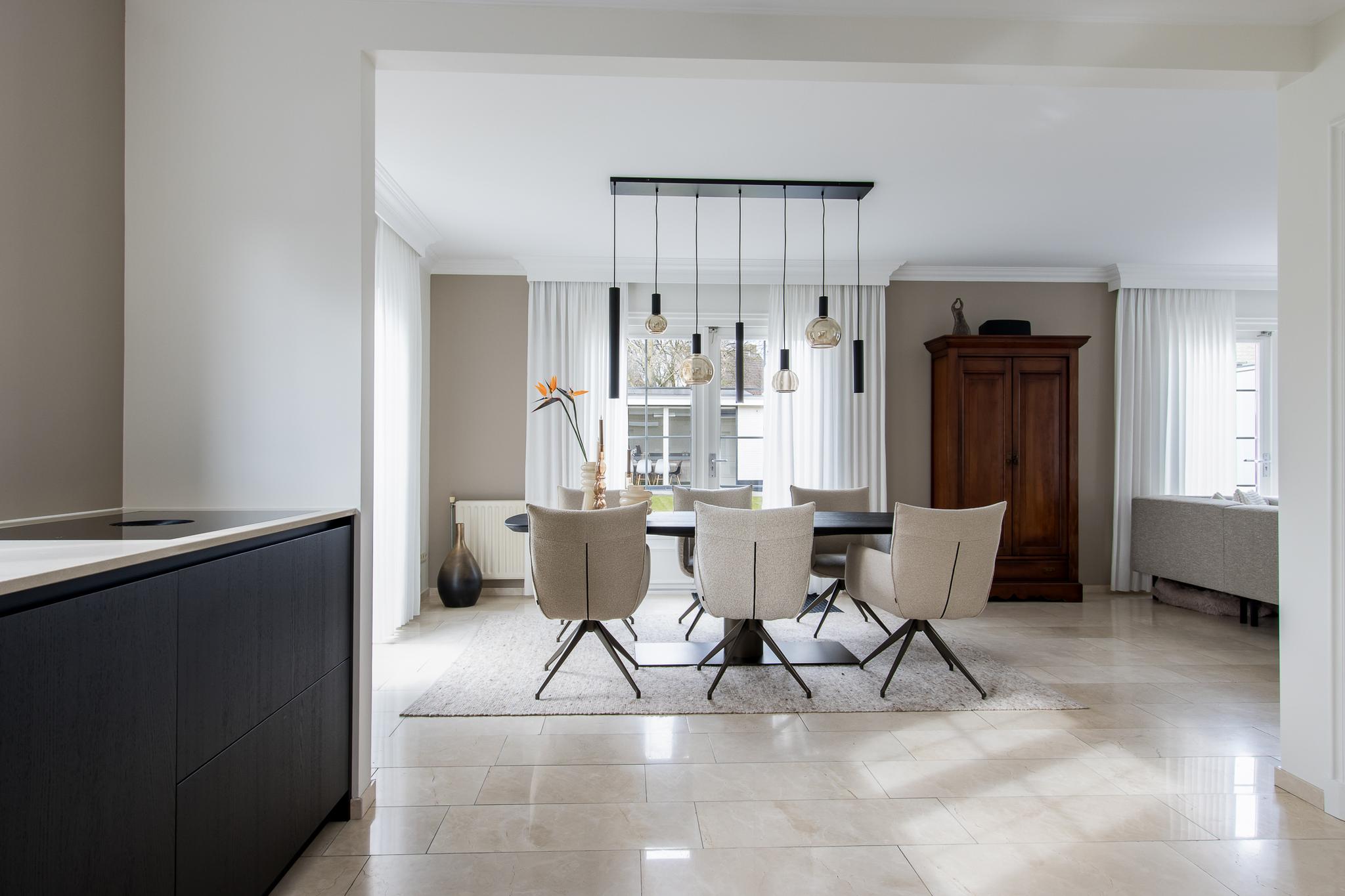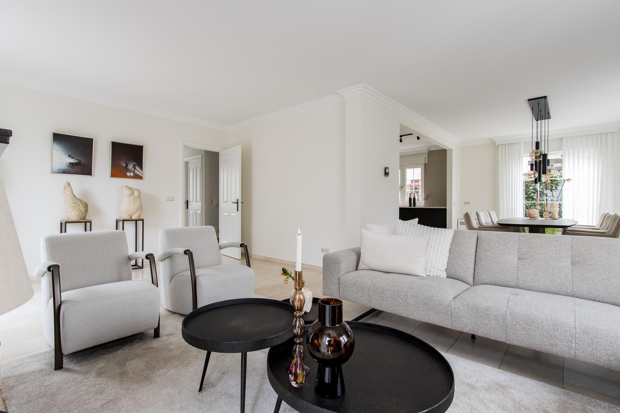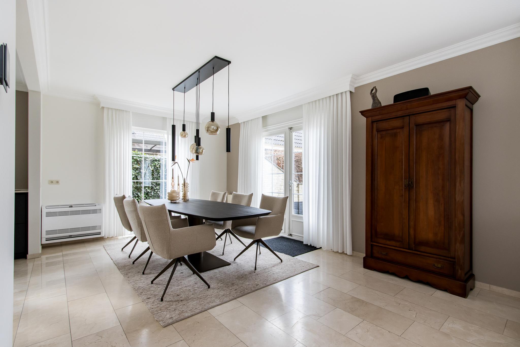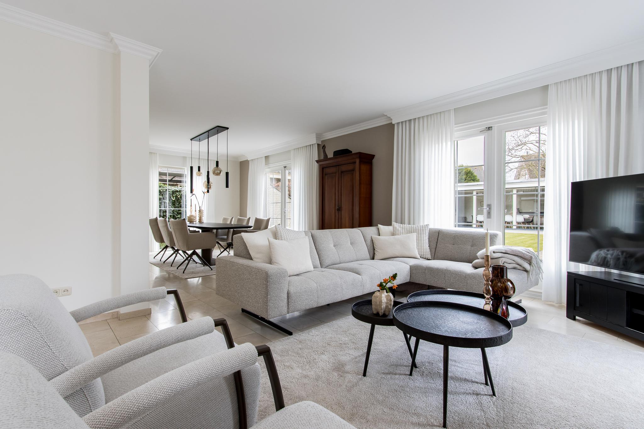 Binnen treft u een lichte en sfeervolle living met openslaande deuren, grote raampartijen met fraaie roedeverdeling. De luxe open keuken vloeit naadloos over in de eetkamer en living en verbindt dankzij de dubbele openslaande tuindeuren het binnenleven met het terras en de achtertuin. De begane grond biedt extra mogelijkheden dankzij een praktische werk-/hobbyruimte, ideaal als thuiskantoor, praktijkruimte of speelkamer.