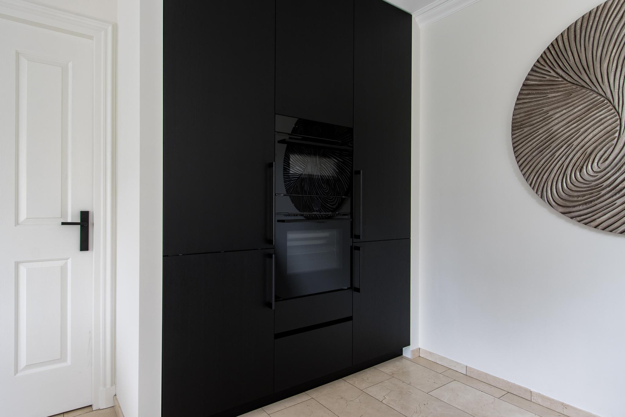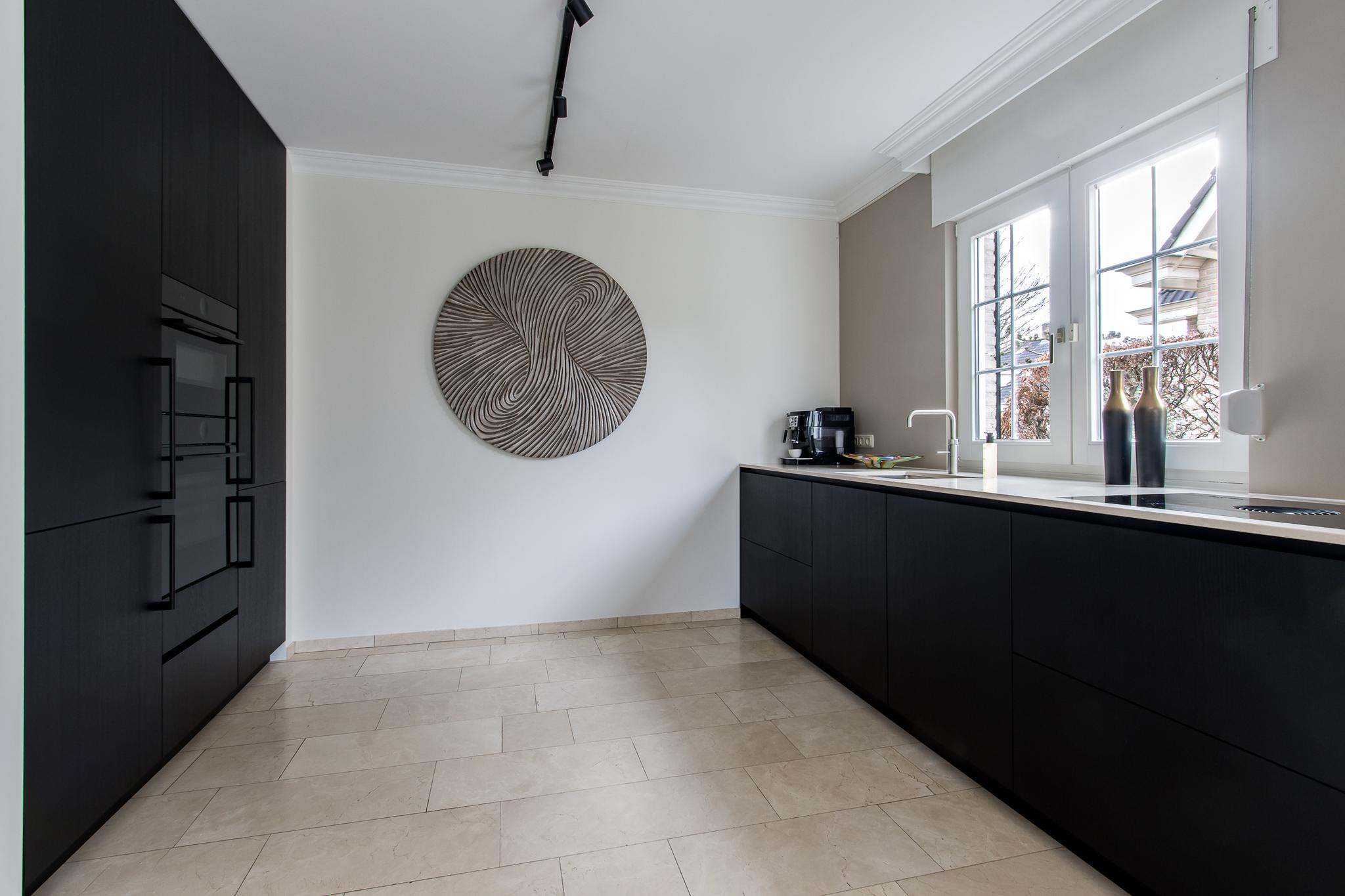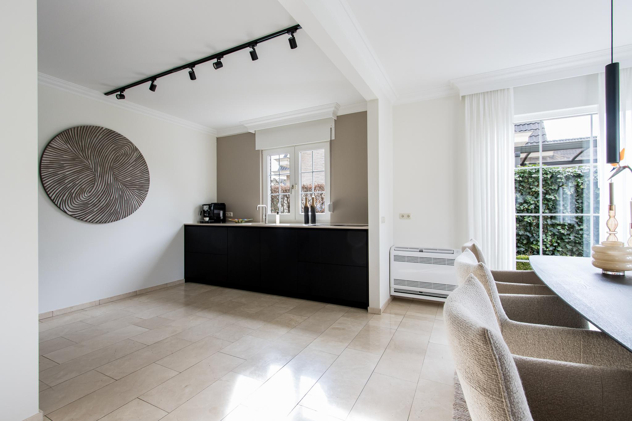 Indeling woonhuis: de lichte, ruime hal biedt toegang tot de garderobe, een uitgebreide meterkast en de trap naar de verdieping. Aan de voorzijde van de woning bevindt zich de praktijkruimte, voorzien van een handige kast met aansluitingen voor het witgoed. Vanuit de hal stapt u de woonkamer binnen, die door de grote raampartijen volop lichtinval heeft. De living staat in open verbinding met de moderne keuken (geplaatst in december 2024), uitgerust met een stijlvol keukenblok en kastenwand. De keuken is voorzien van diverse inbouwapparatuur, waaronder een inductiekookplaat met geïntegreerde afzuiging, Quooker, oven en wijnkoeler. Vanuit de keuken heeft u toegang tot de kelder, die zich uitstekend leent als extra berging of opslagruimte. Openslaande deuren geven toegang tot de achtertuin.