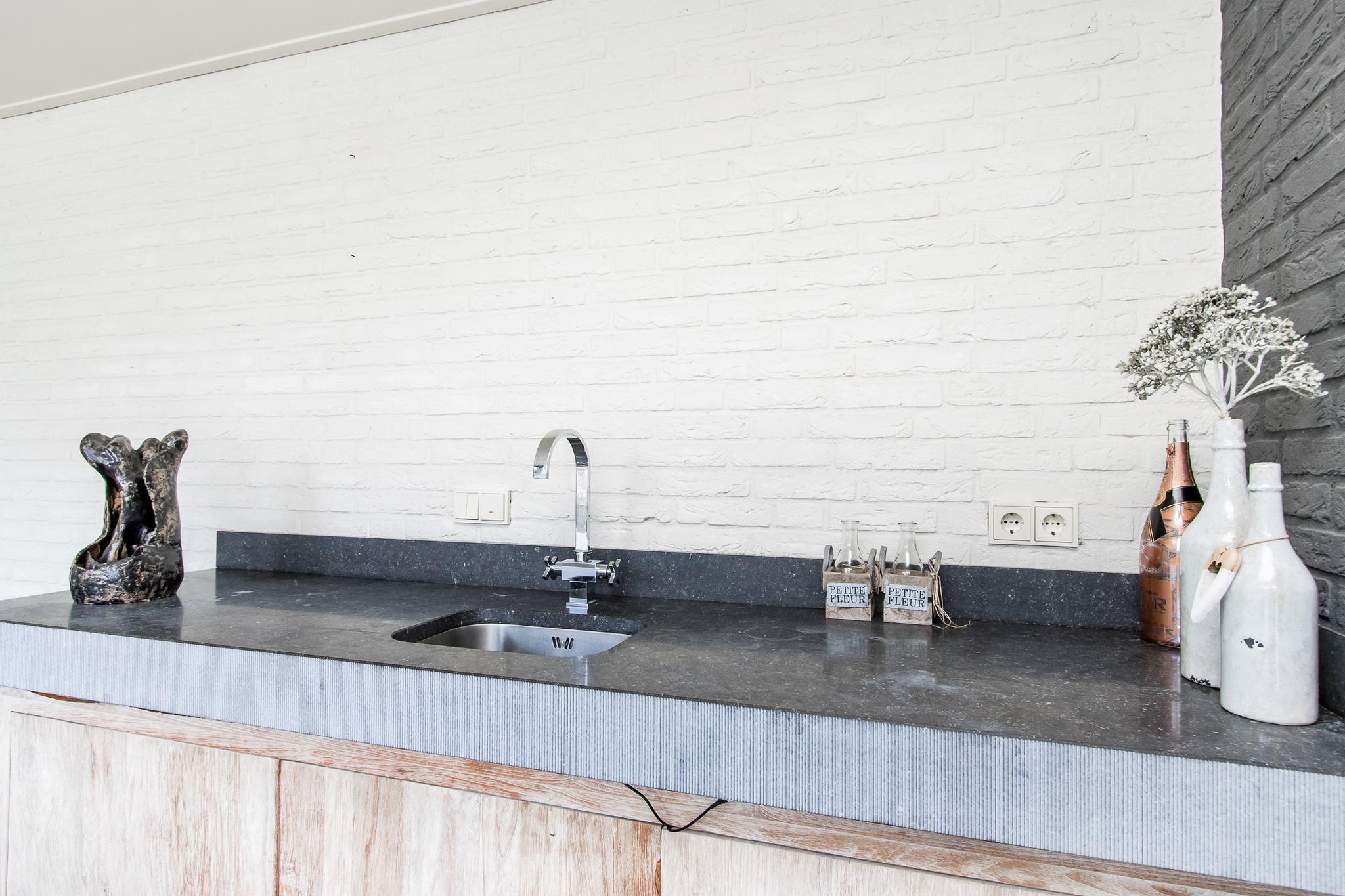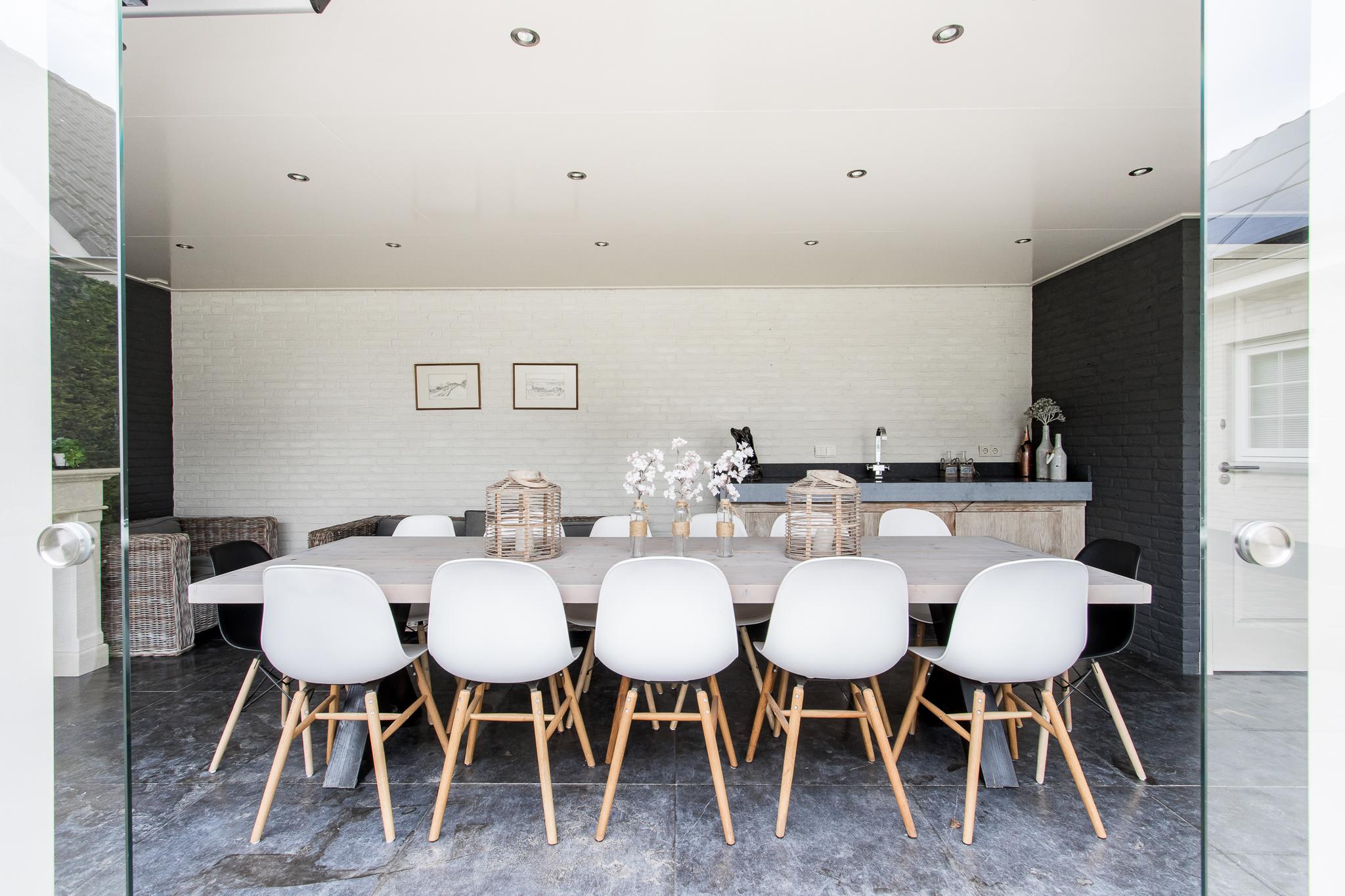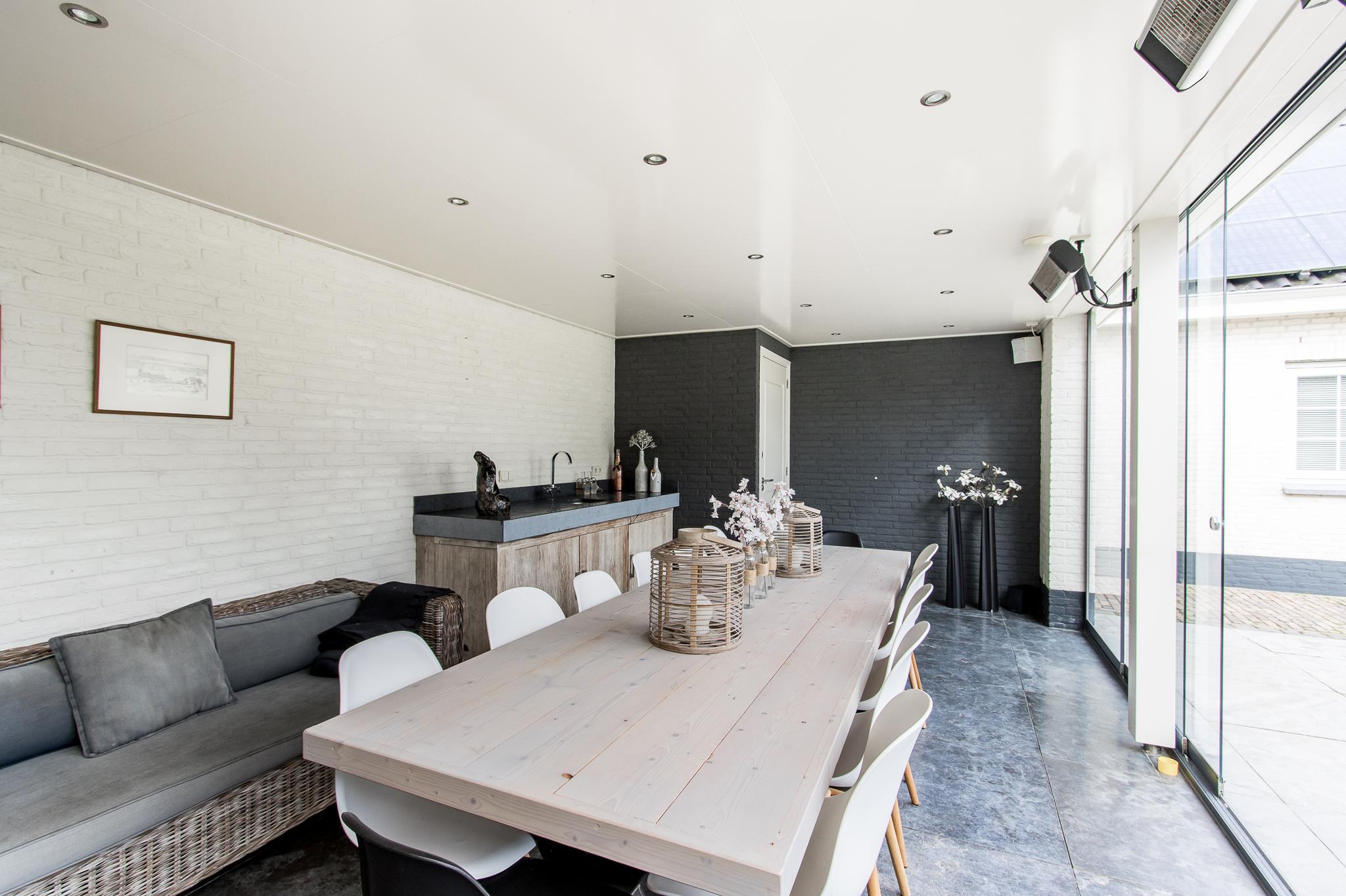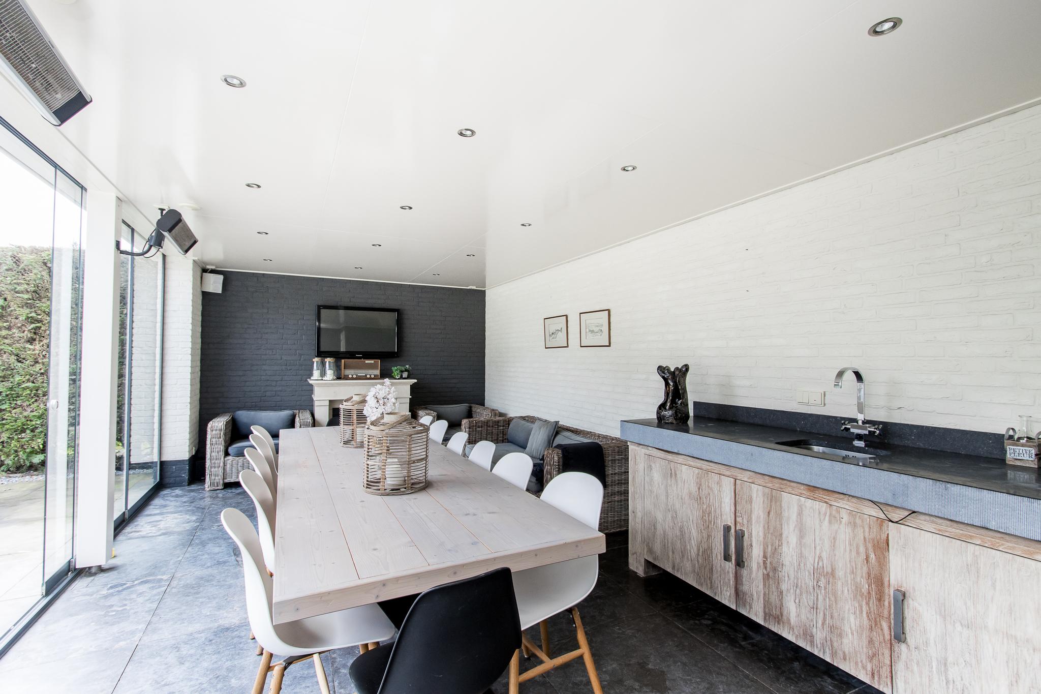 • luxe buitenverblijf/ veranda, afsluitbaar met glaspanelen en voorzien van buitenkeuken en toiletruimte