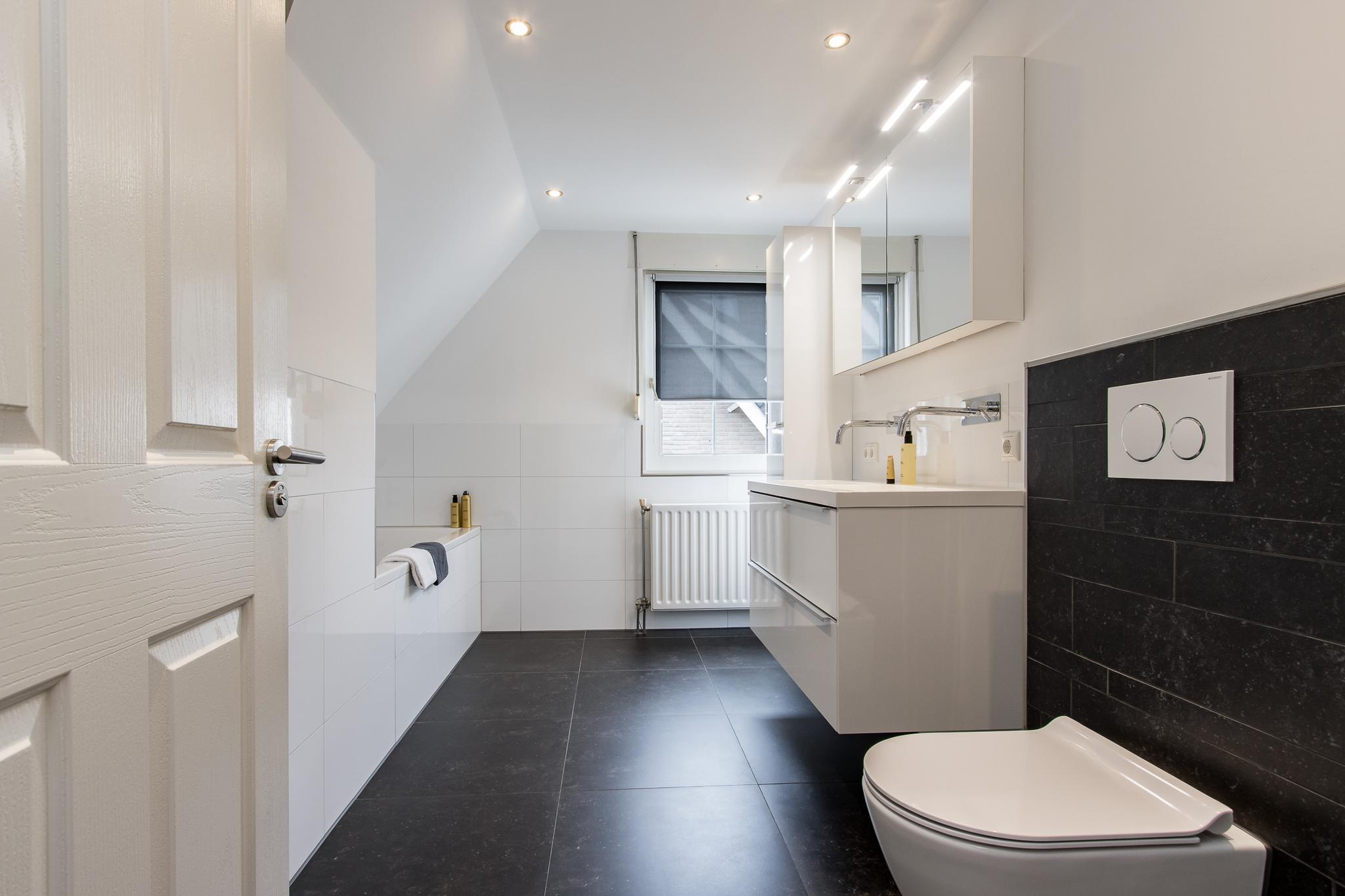 Op de verdieping bevinden zich drie ruim bemeten slaapkamers en een moderne badkamer met ligbad, inloopdouche, wandcloset en een wastafelmeubel met dubbele wasbak.
