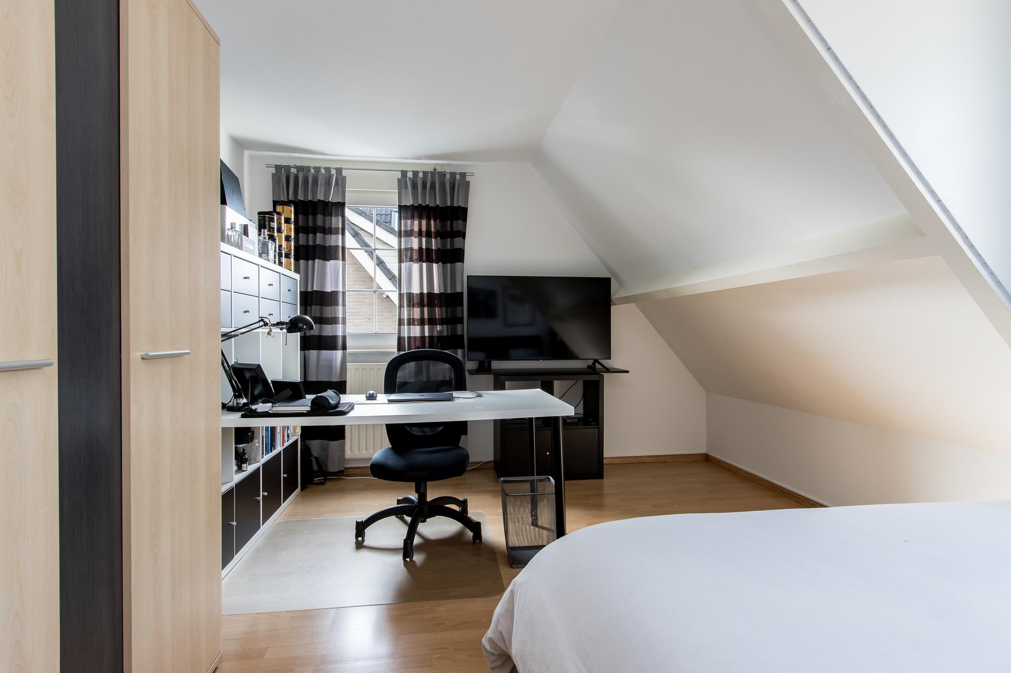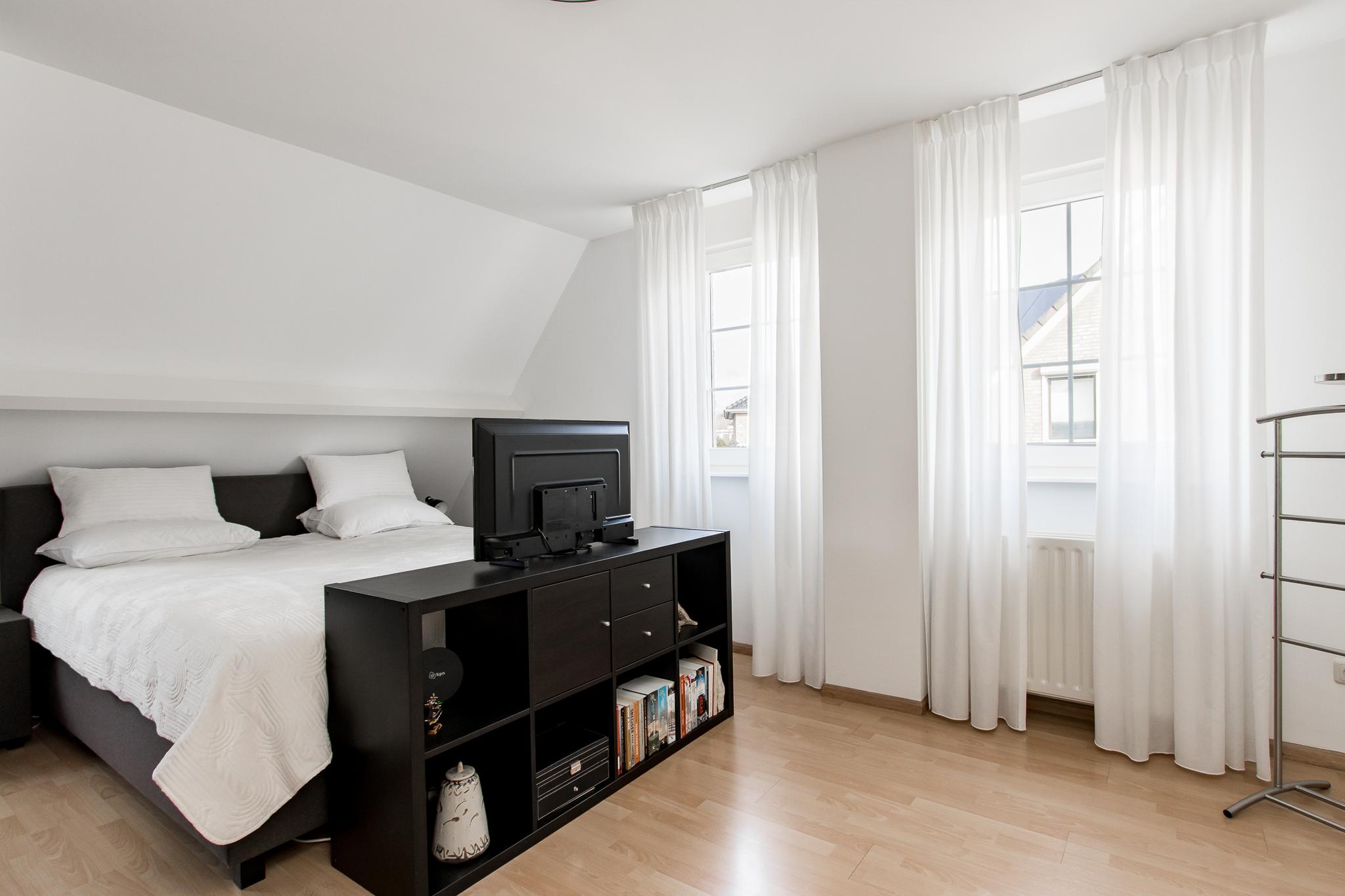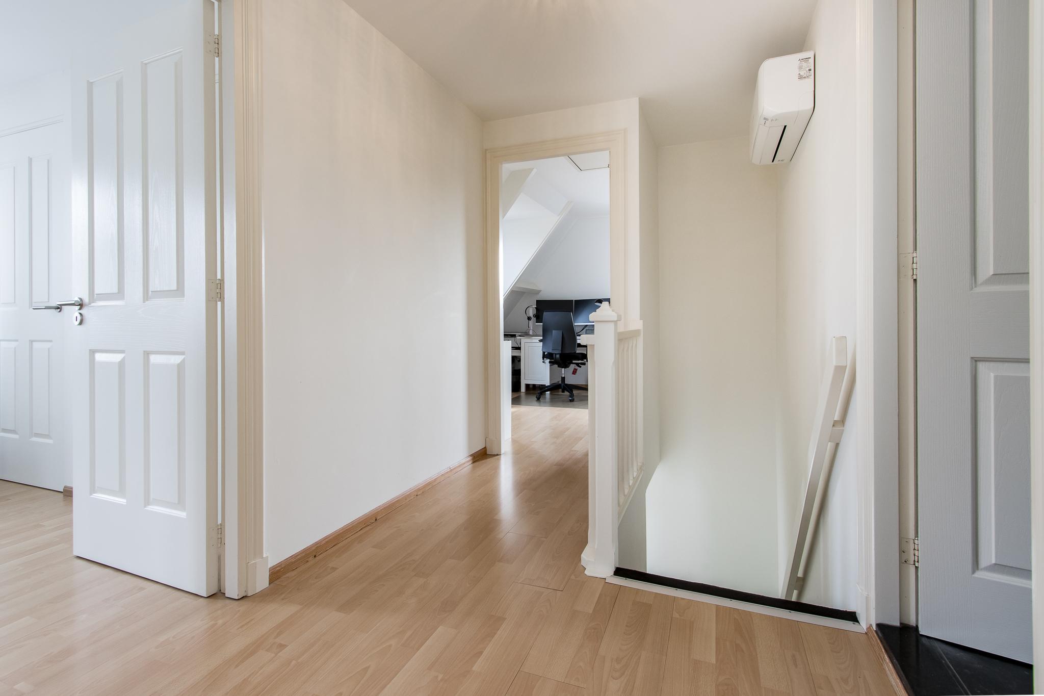 Eerste verdieping: de overloop geeft toegang tot 3 ruime slaapkamers. waarvan de masterbedroom en de slaapkamer aan de voorzijde zijn uitgerust met vaste kast. De badkamer is voorzien van ligbad, inloopdouche, wastafelmeubel met dubbele wasbak en vloerverwarming. Deze verdieping is voorzien van airco.