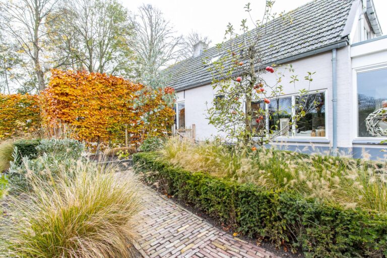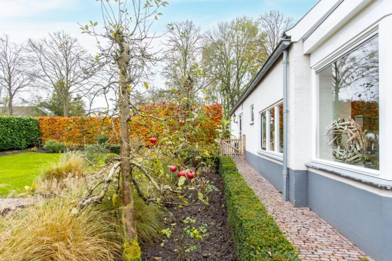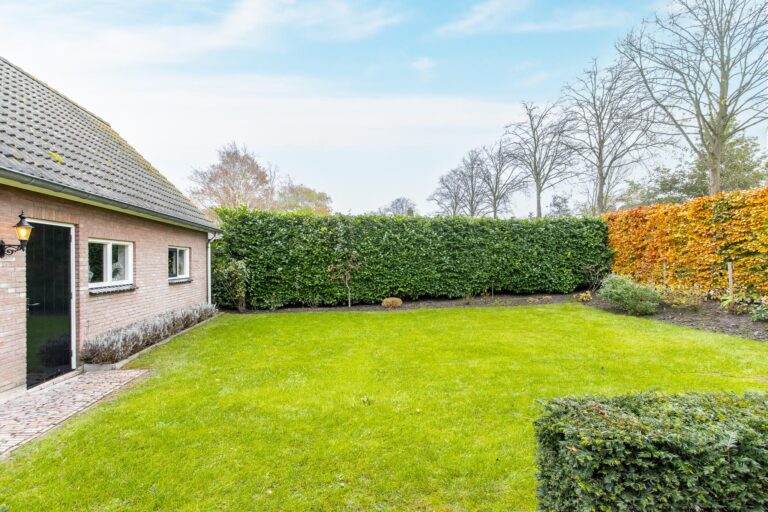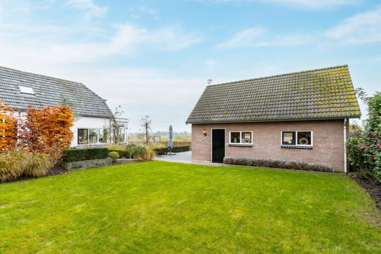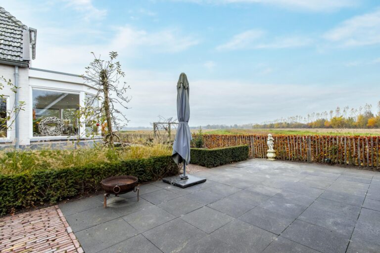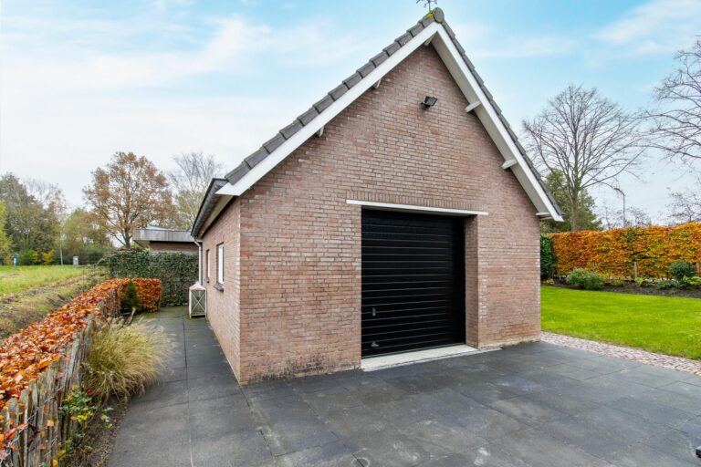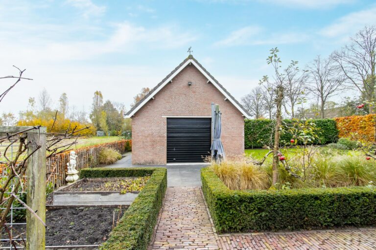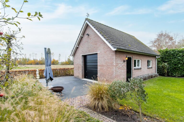 De rondom gelegen tuin is een oase van rust, waar privacy en natuur hand in hand gaan. De combinatie van sierbestrating en moderne terrastegels zorgt voor een eigentijdse uitstraling en een verzorgde sfeer. Het ruime terras biedt een fantastische plek om te ontspannen en te genieten van het weidse uitzicht over de omliggende landerijen. Hier ervaart u de rust van het buitenleven in volledige privacy. De tuin is met zorg aangelegd en biedt naast sierbeplanting, kleurrijke plantenborders en groene struikgewassen ook praktische voorzieningen. De oprit met siergrind leidt naar de ruime garage en biedt parkeergelegenheid voor meerdere auto’s. Daarnaast is er aan de rechtervoorzijde van de woning een aparte parkeerplaats met ruimte voor twee auto’s, ideaal voor gasten of extra voertuigen.