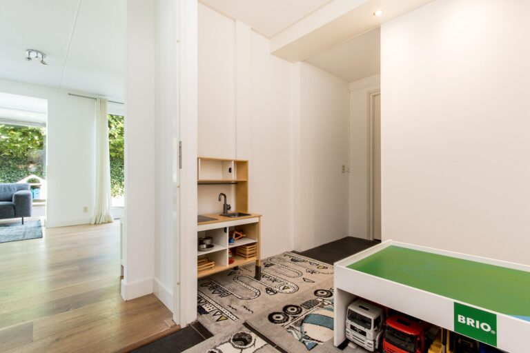 Bij binnenkomst ervaart u meteen de royale leefruimte met hoge plafonds en open zichtlijnen, wat een ruimtelijk en uitnodigend gevoel creëert. De lichte serre, die het hart van het huis vormt, is de ideale plek om te ontspannen en van het uitzicht op de tuin te genieten. De open keuken, voorzien van een fraai fornuis, sluit hier naadloos op aan en biedt een perfecte plek voor culinaire liefhebbers. Aangrenzend vindt u een praktische speelkamer, ideaal voor gezinnen met kinderen of als hobbyruimte of kantoor. Met 4 ruime slaapkamers en 2 praktische badkamers is er volop ruimte voor het hele gezin. De grote zolder met hoge nok biedt volop mogelijkheden voor extra opslag of als creatieve ruimte.
